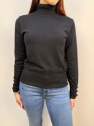 Elegante e raffinato, questo pullover Rinascimento con collo alto è proposto nelle calde tonalità autunnali di azzurro cielo, bordeaux e nero. Morbidissimo ed elasticizzato, presenta collo, polsini e fascione a costine elasticizzate per una vestibilità confortevole e definita. Il piccolo logo ricamato tono su tono aggiunge un dettaglio discreto che completa il design con sobrietà.