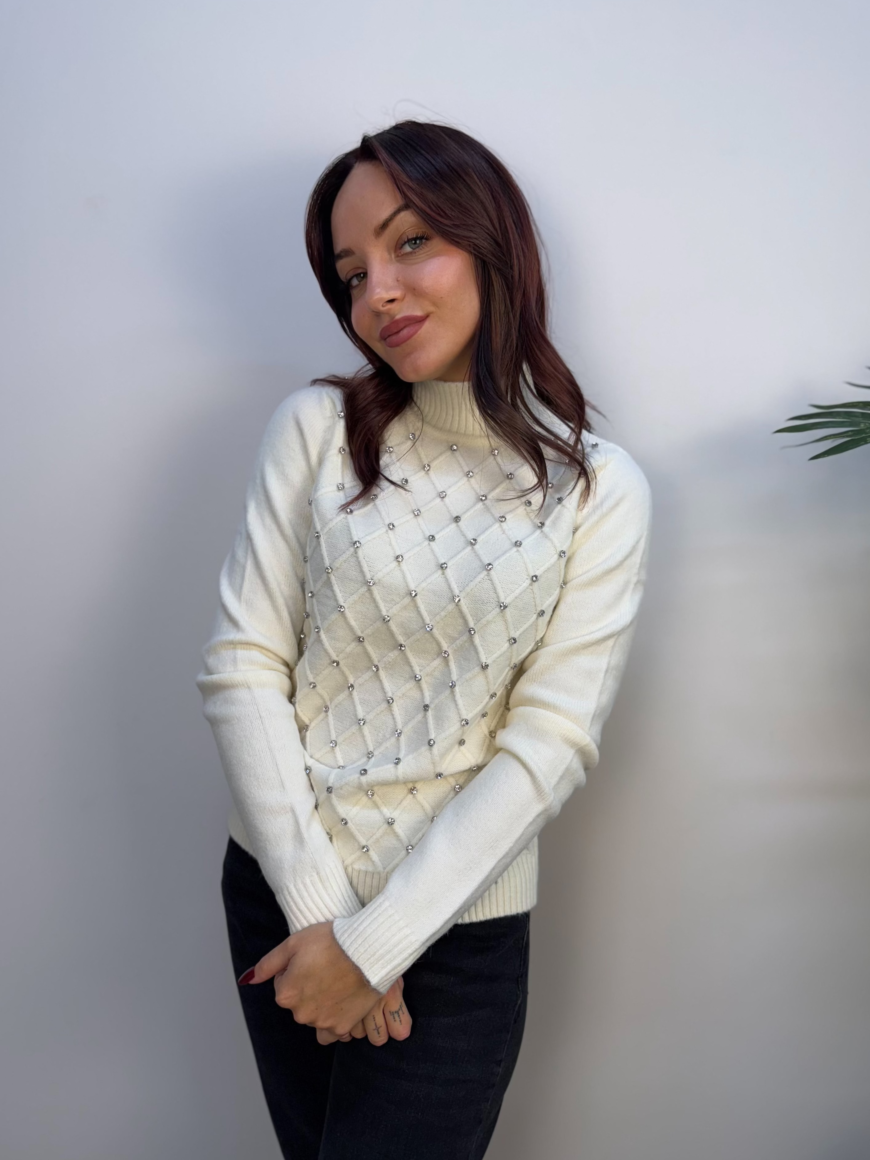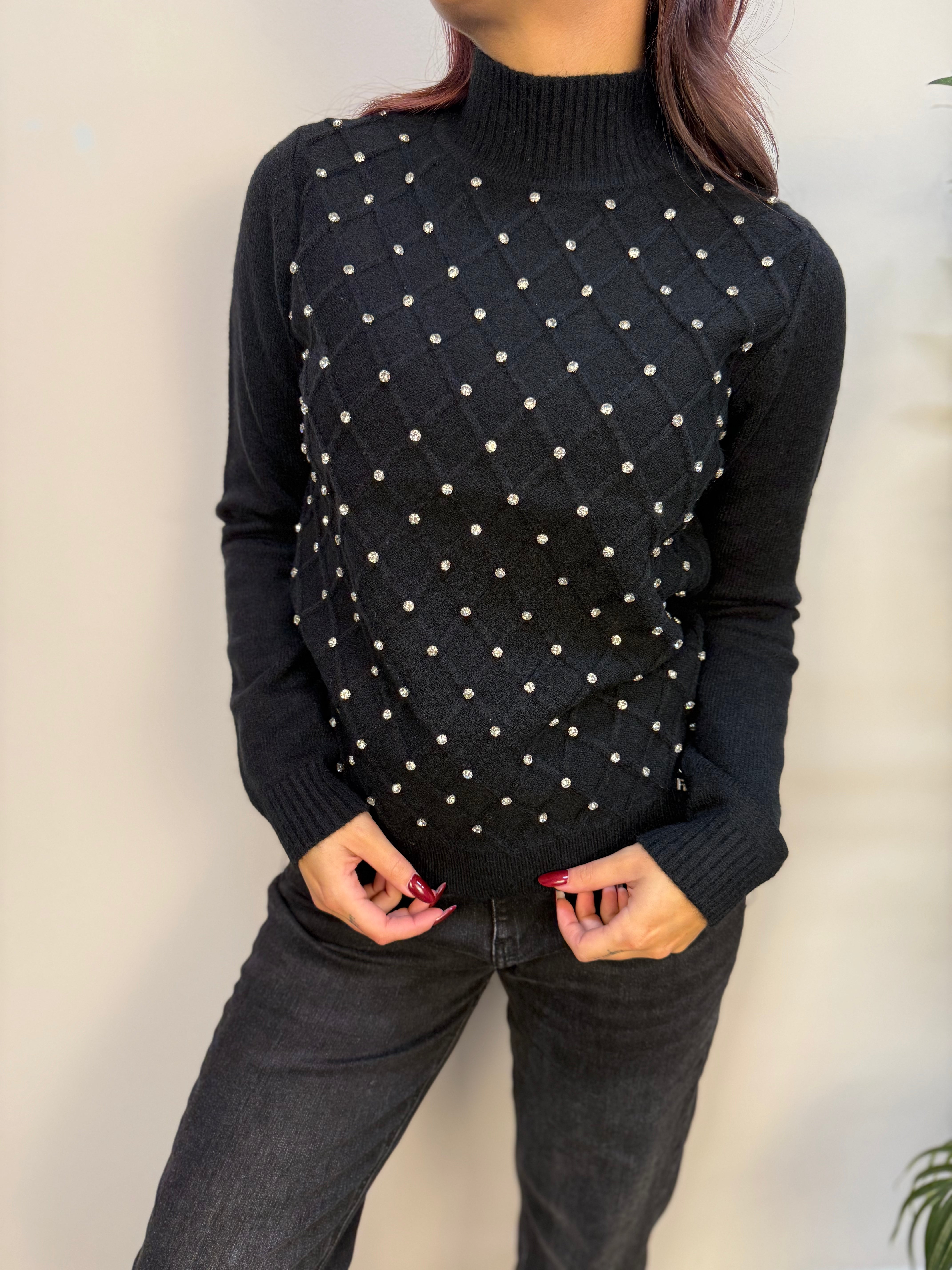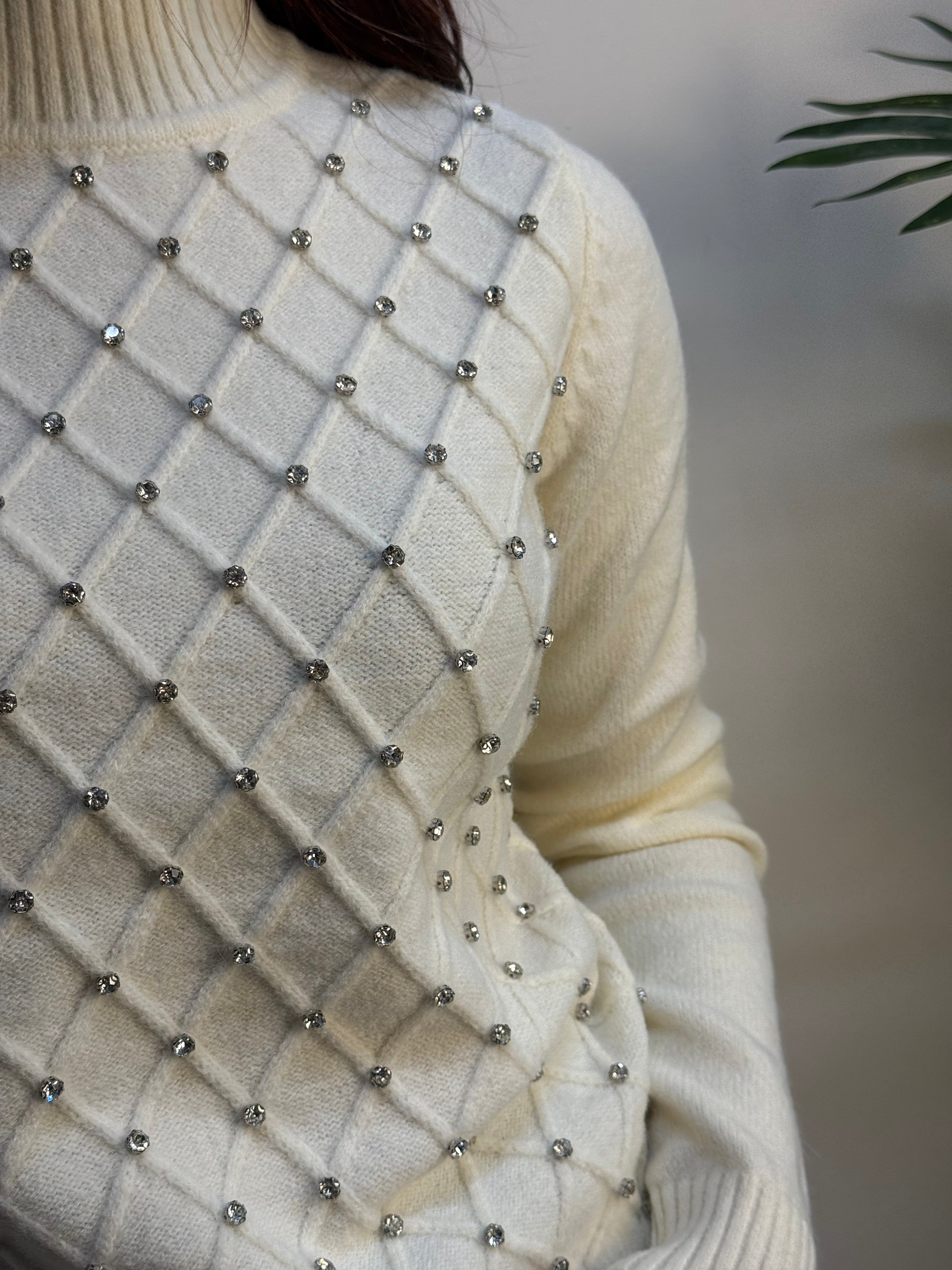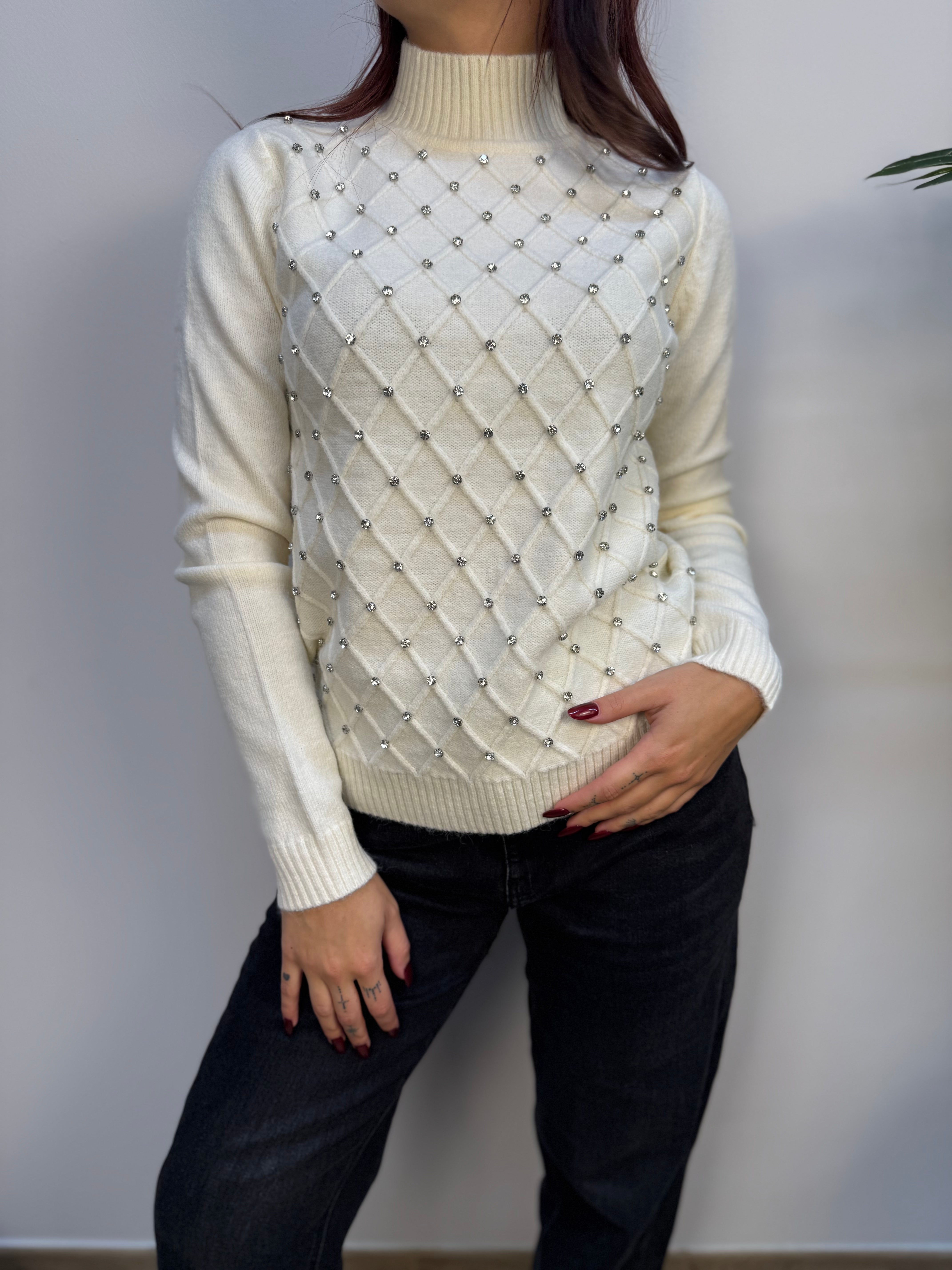 Dolcevita caldo con trama rombi e dettagli luminosi