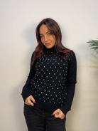 Maglia Artigli dolcevita dal design elegante e femminile, caratterizzata da una trama a rombi in rilievo che aggiunge movimento e texture al capo. È impreziosita da strass che donano un tocco di luce e raffinatezza, perfetta per illuminare i look invernali. Realizzata in un tessuto morbido, caldo ed elasticizzato, assicura comfort e vestibilità impeccabile. Un capo sofisticato e versatile, ideale da indossare sia con outfit casual chic sia in occasioni più eleganti.