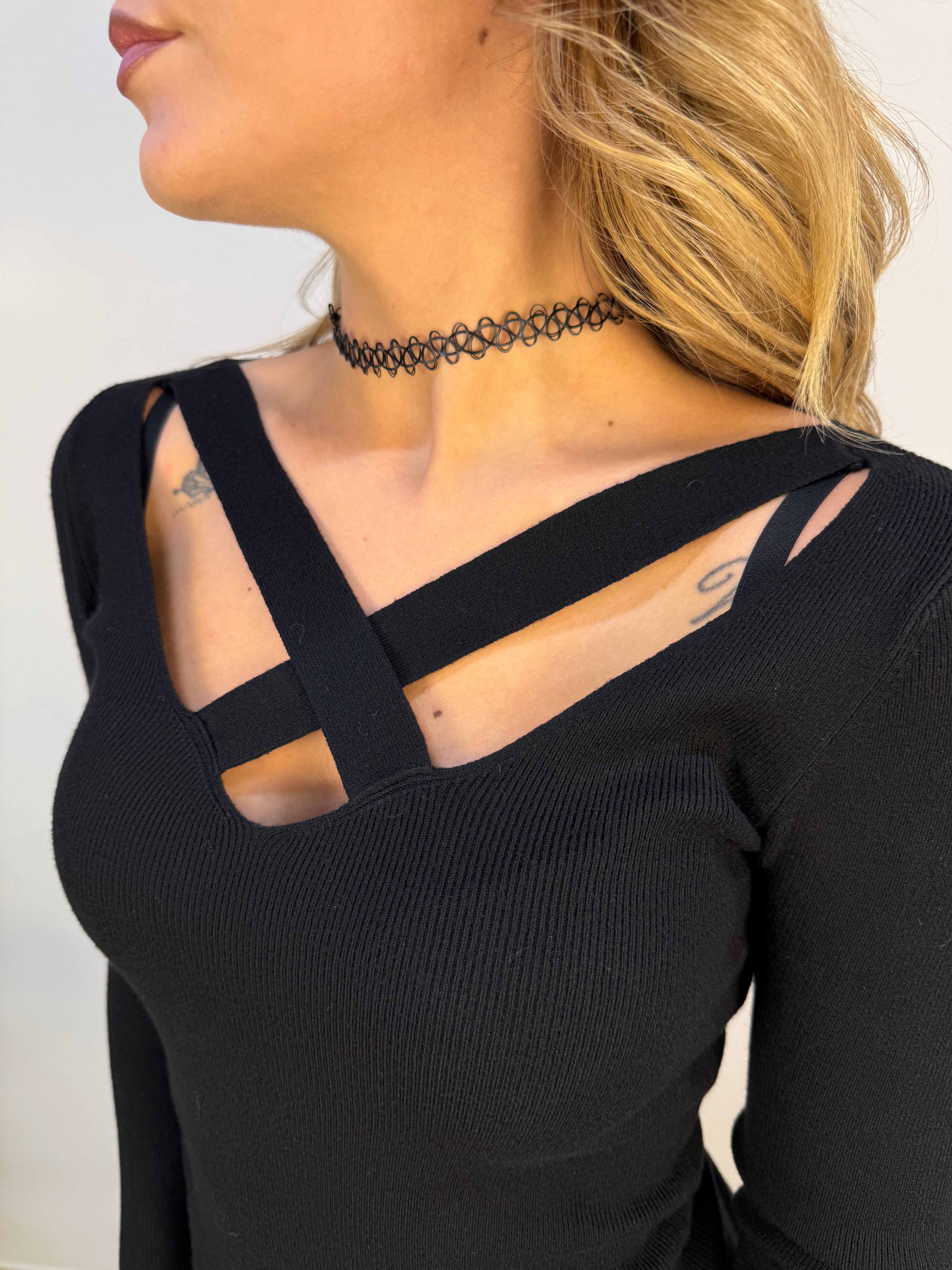 Essenziale ma con un dettaglio che fa la differenza, questa maglia Fresh Flower aderente a costine in tinta unita è realizzata in un filato elasticizzato e morbido che valorizza la silhouette senza costringere. Lo scollo intrecciato dona un tocco femminile e moderno, rendendo il capo perfetto sia per il daywear che per la sera. Un basico raffinato, facile da abbinare e ideale da indossare sotto blazer, giacche o da solo per un look pulito ma ricercato.