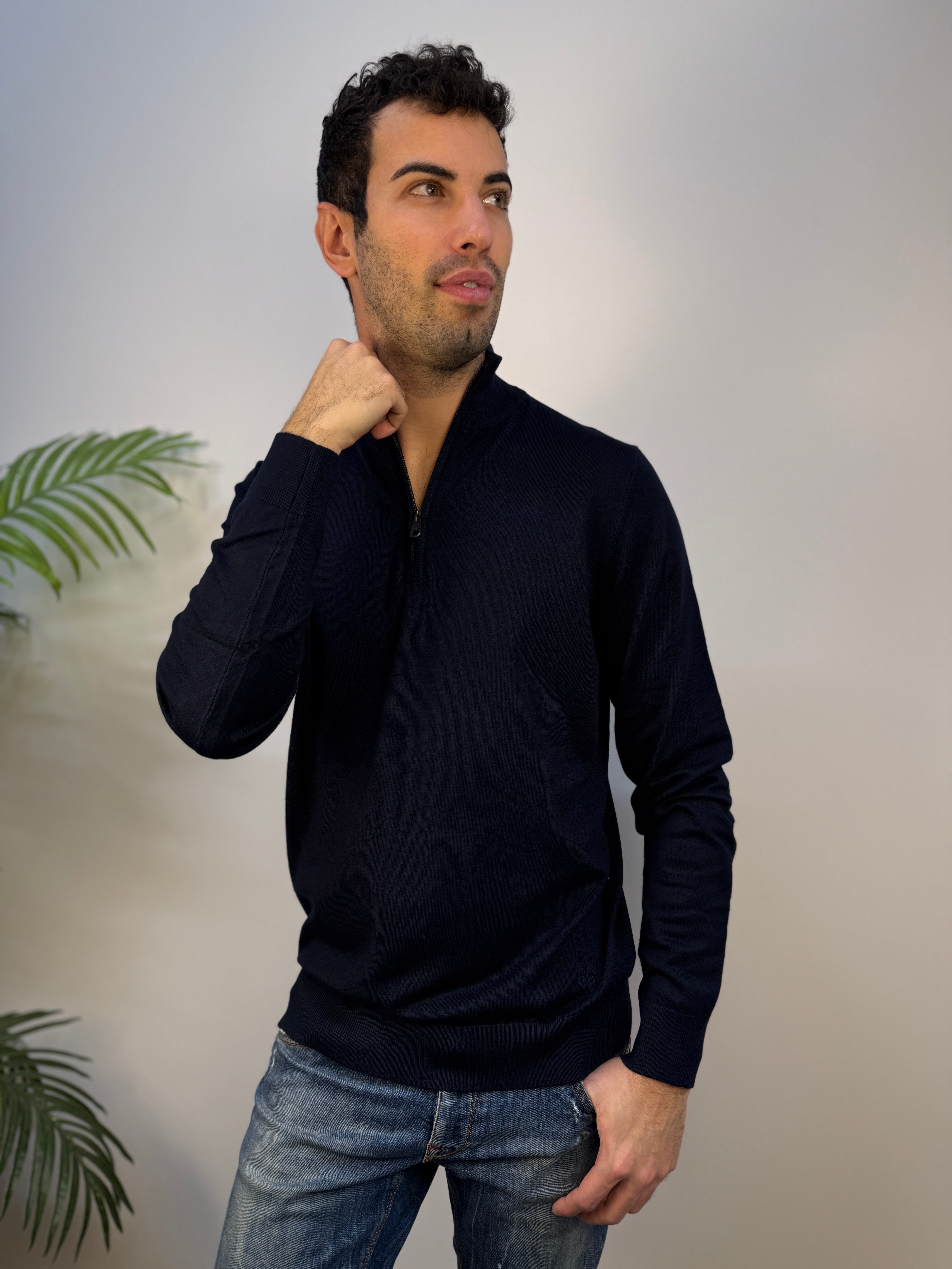 Dolcevita Urban Ring con mezza zip, pratico e contemporaneo, realizzato in un tessuto elasticizzato che offre comfort e libertà di movimento. Il collo, i polsini e il fascione sono rifiniti a costine per una vestibilità stabile e ben definita. Sul fondo è presente un piccolo logo ricamato tono su tono, discreto ma elegante. Un capo versatile, ideale per look curati e quotidiani.