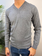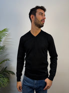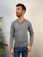 Maglia Gianni Lupo sottile con scollo a V, realizzata in un tessuto caldo, morbido ed elasticizzato che assicura comfort e vestibilità impeccabile. Lo scollo, i polsini e il fascione a costine definiscono la linea con un tocco raffinato. Un ricamo a contrasto sul gomito aggiunge un dettaglio distintivo e contemporaneo, rendendo il capo perfetto per uno stile sobrio ma ricercato.