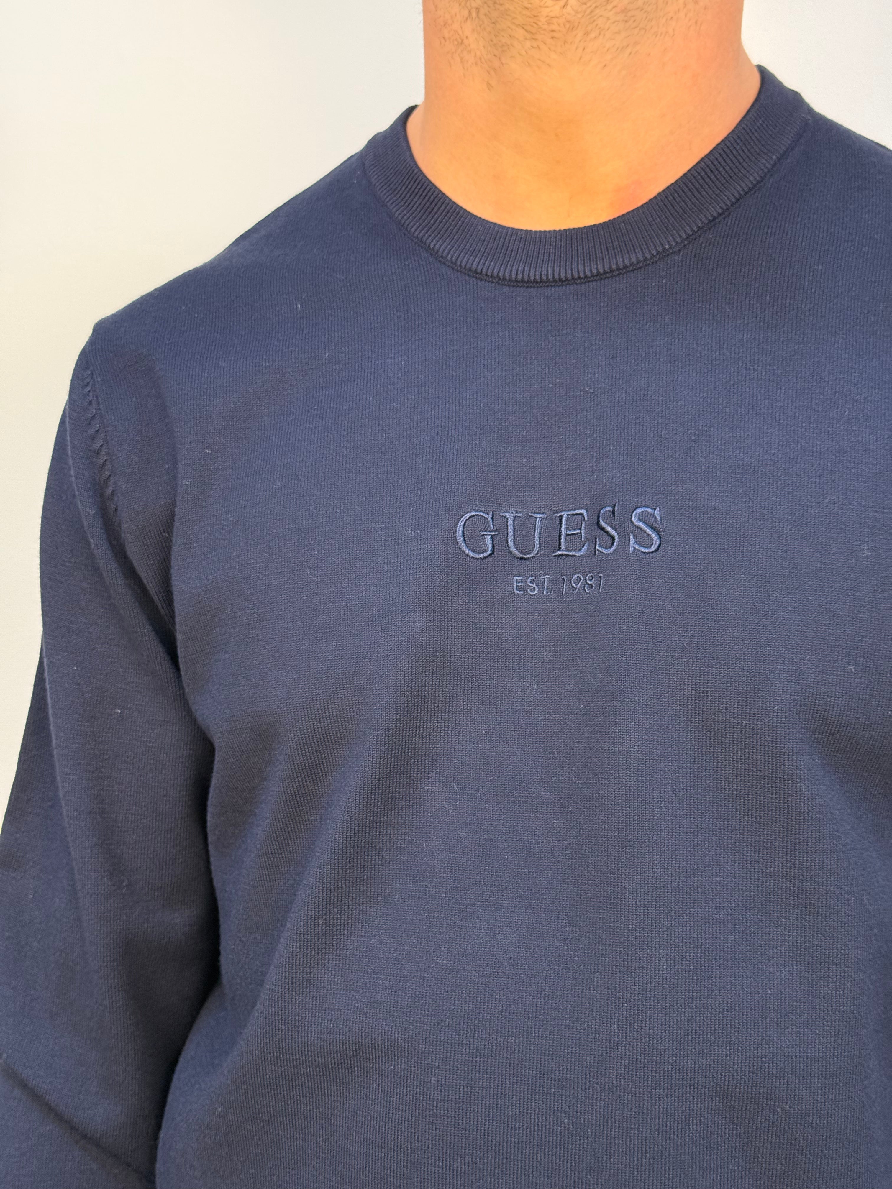 Maglioncino Guess girocollo in tinta unita, realizzato in un tessuto fine ma caldo, perfetto per la stagione più fresca. Il design essenziale è impreziosito da un ricamo tono su tono del logo sul petto, che aggiunge un tocco discreto ma distintivo. Completano il capo i dettagli a costine su polsini, scollo e fascione, per una vestibilità confortevole e una finitura curata. Un must-have versatile, ideale per look puliti e sofisticati.
