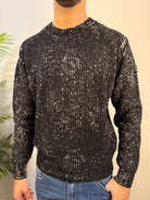 Maglione Gianni Lupo a girocollo, realizzato in tessuto caldo, morbido ed elasticizzato per garantire comfort e vestibilità ottimale. Il capo presenta polsini, fascione e scollo a costine, che aggiungono struttura e definizione al design. Il colore nero è arricchito da delicati dettagli bianchi, per un contrasto discreto e contemporaneo. Un maglione versatile, perfetto per completare look casual o più eleganti con stile e praticità.