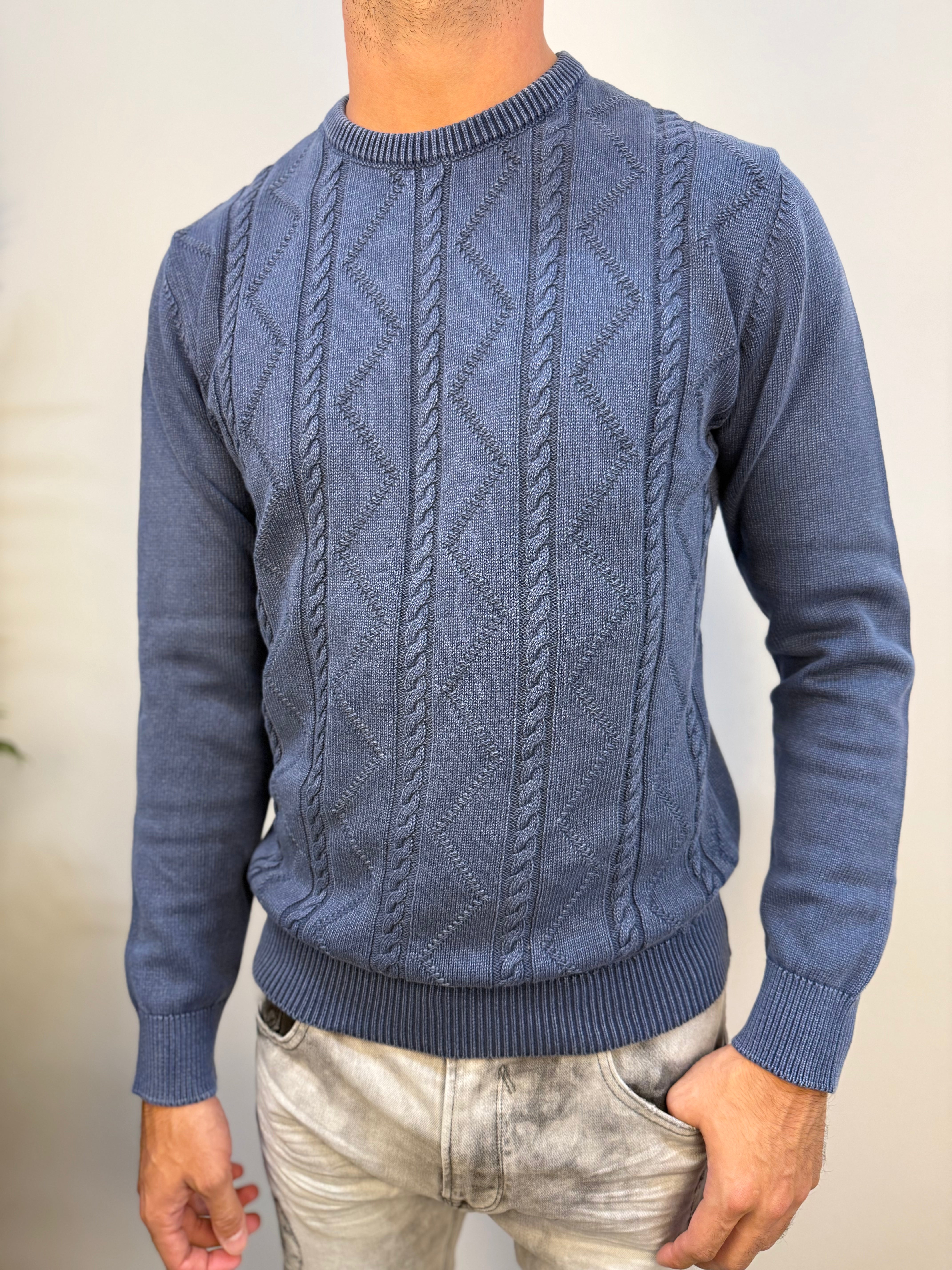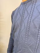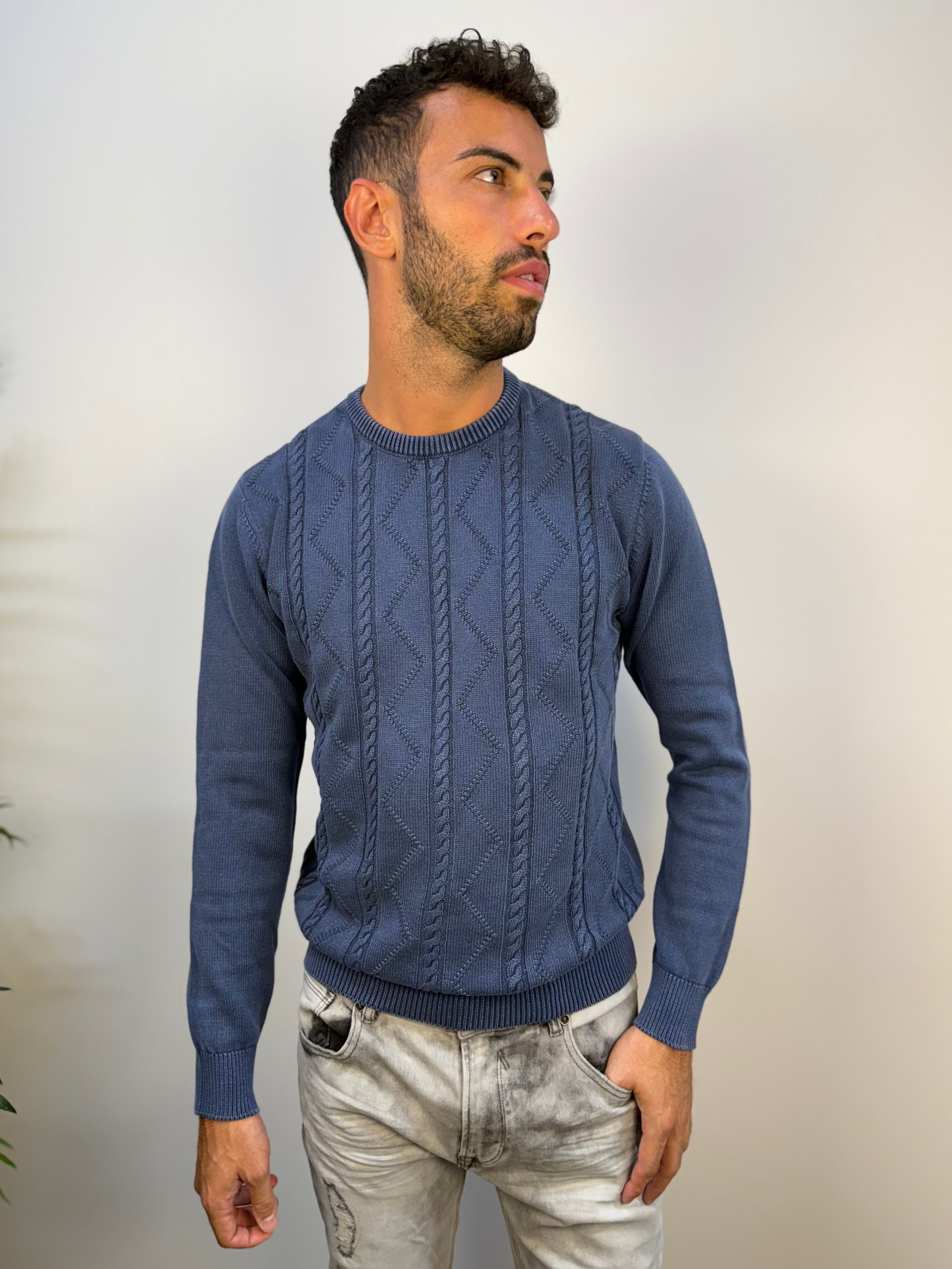 Maglione Yes-Zee girocollo proposto in un meraviglioso color denim, impreziosito da una raffinata trama ricamata ad intreccio che dona profondità e carattere al capo. I dettagli a costine su scollo, polsini e fascione completano il design, assicurando comfort e una vestibilità perfetta. Delicato e versatile, è facilmente abbinabile e ideale per affrontare la stagione fredda con eleganza e stile.