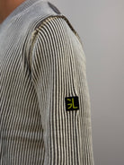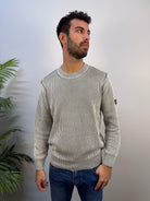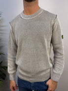 Maglione Gianni Lupo a girocollo, realizzato in filato caldo ed elasticizzato per garantire comfort e libertà di movimento. Il design presenta una raffinata lavorazione a righe in rilievo nelle tonalità beige con righe color caffè, creando un effetto elegante e contemporaneo. Lo scollo, i polsini e il fascione a costine assicurano una perfetta aderenza e valorizzano la struttura del capo. Un maglione morbido e versatile, ideale per completare look casual o più curati con uno stile sobrio e raffinato.