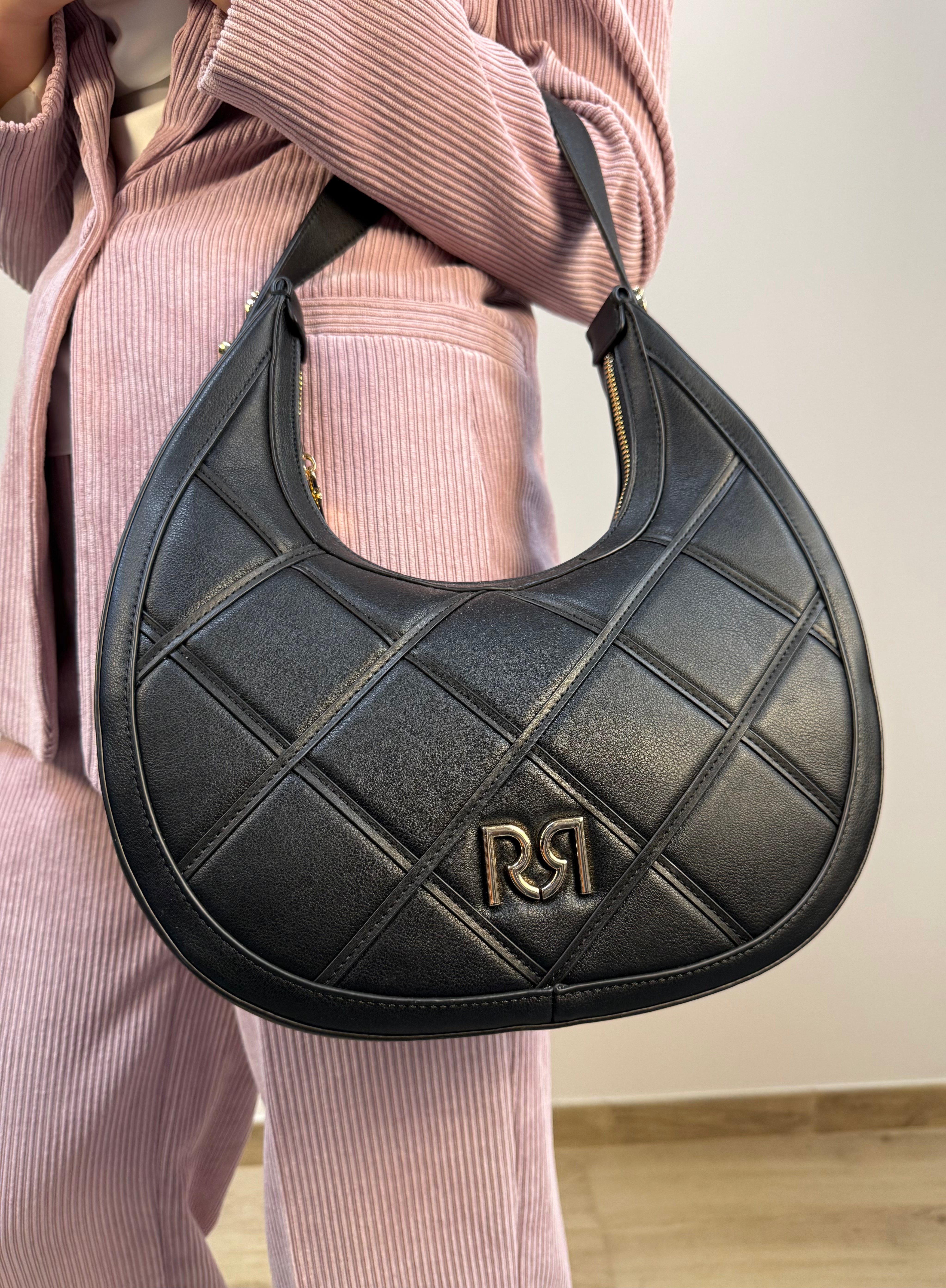 Borsa hobo trapuntata con logo metallico RR