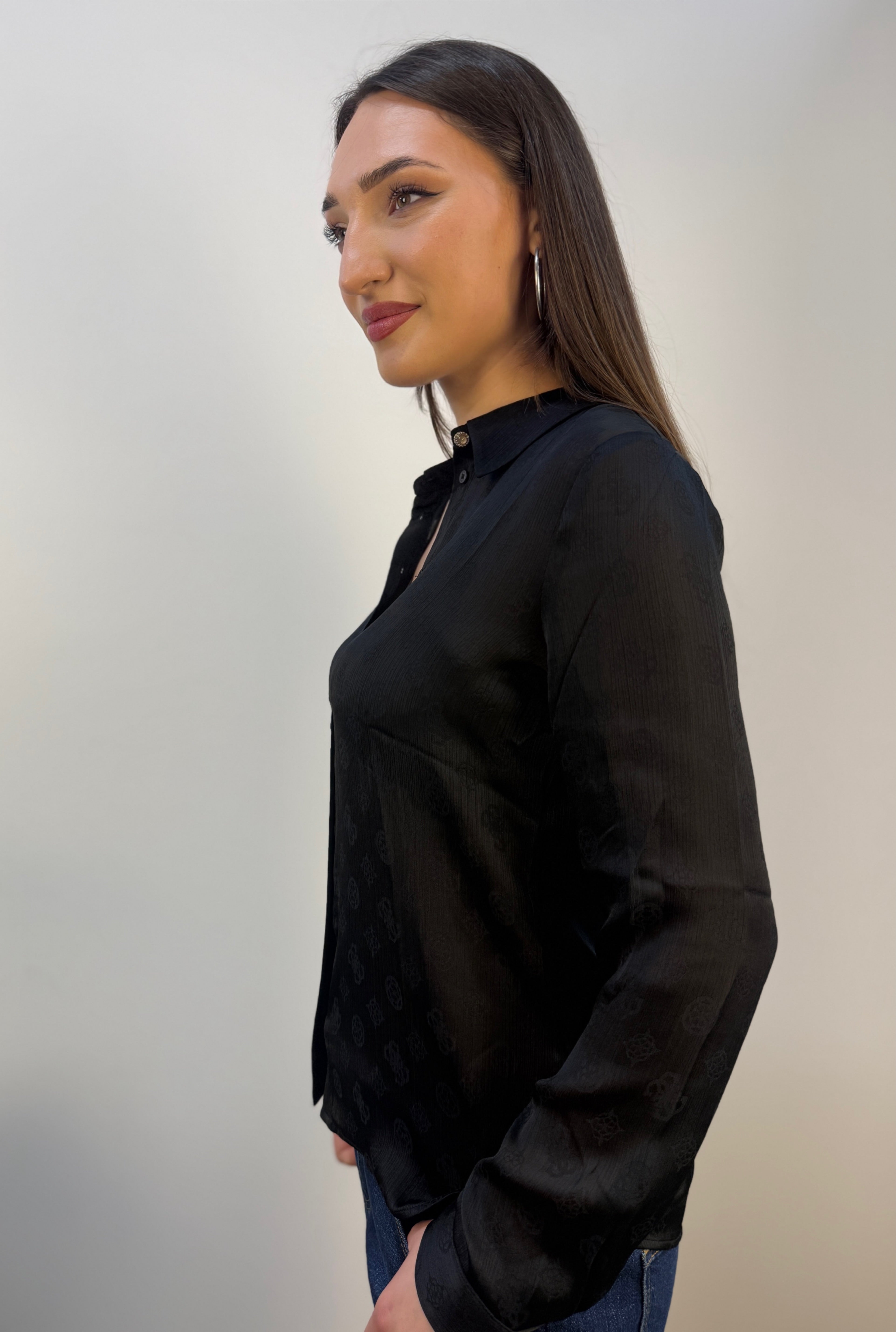 Un capo sofisticato e di grande effetto, questa camicia Guess in tessuto velato si distingue per la trama logata all over tono su tono, che dona profondità e raffinatezza al design. Il colore nero, intramontabile ed elegante, esalta la leggerezza del tessuto, creando un perfetto equilibrio tra trasparenze e sobrietà. Ideale per look serali o per dare un tocco chic anche agli outfit da giorno.