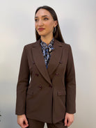 Dal design strutturato e contemporaneo, questa giacca Rinascimento doppiopetto in tessuto tecnico è un capo versatile e sofisticato. Caratterizzata da bottoni tono su tono, presenta tasche cucite sul fronte e uno scollo a piega che dona eleganza e movimento alla linea. Le spalle imbottite conferiscono definizione alla silhouette, esaltando un look deciso e femminile. Perfetta per completare outfit formali o per aggiungere un tocco sartoriale a look più casual.