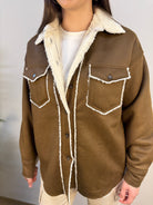 Giubbino effetto montone con dettagli in contrasto