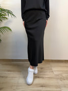 Linee fluide e comfort senza rinunciare allo stile: questa gonna lunga in tessuto scuba unisce morbidezza, calore e una vestibilità avvolgente. Il tessuto tinta unita, caldo ed elasticizzato, valorizza la silhouette senza costrizioni, mentre l’elastico in vita garantisce una perfetta aderenza e praticità. Il design morbido e scivolato la rende un capo versatile, ideale per look casual chic o più eleganti, a seconda degli abbinamenti.