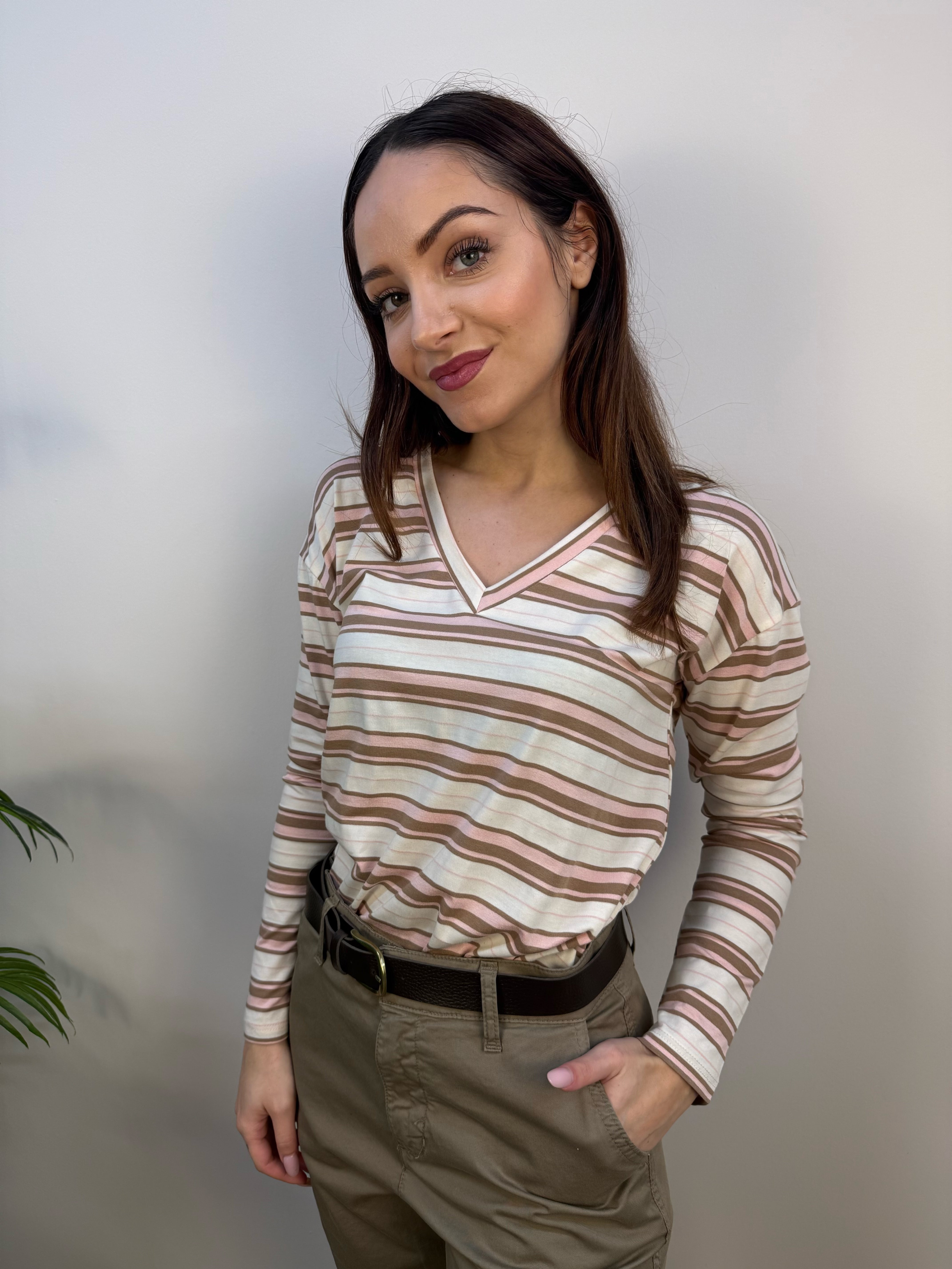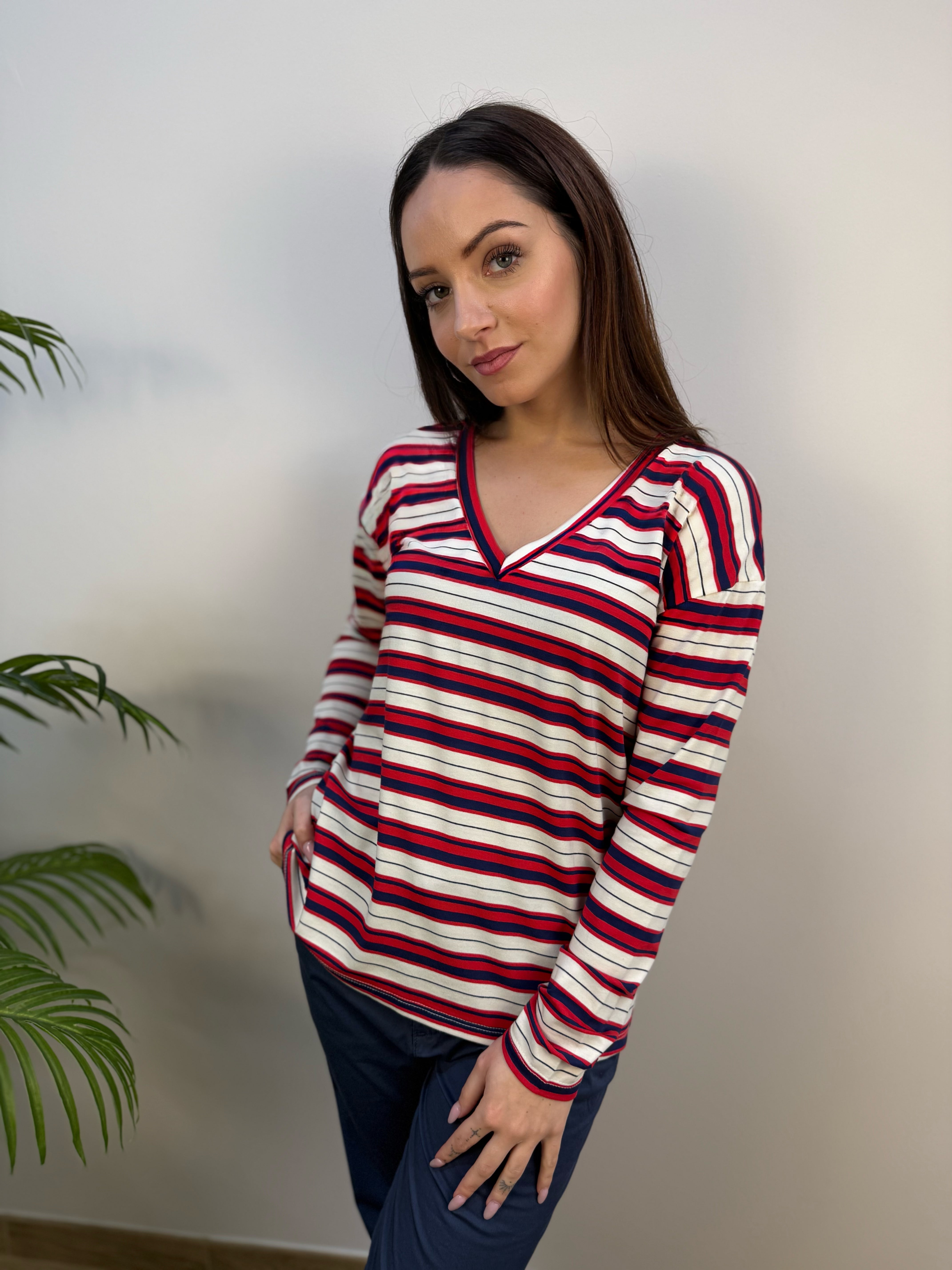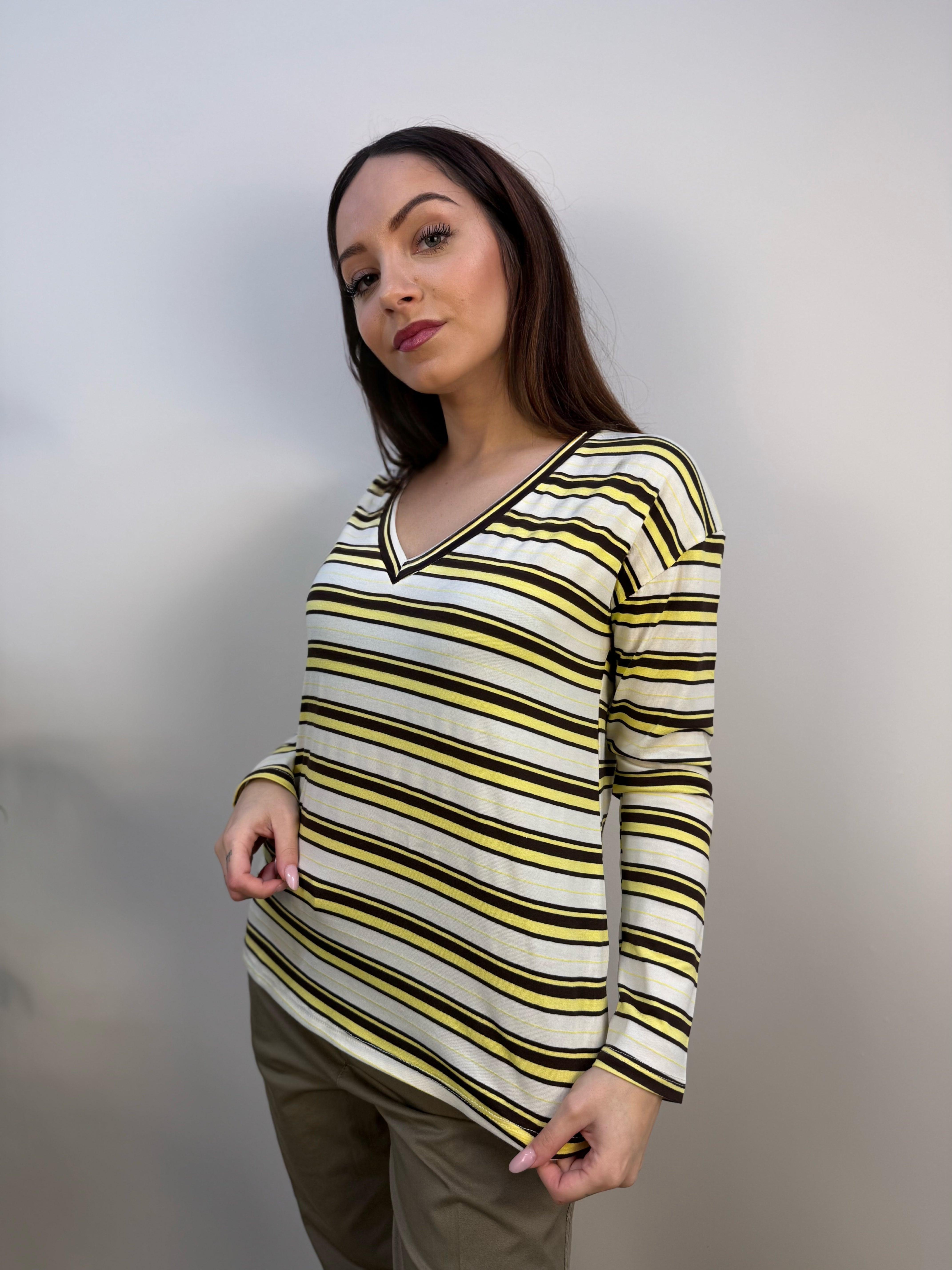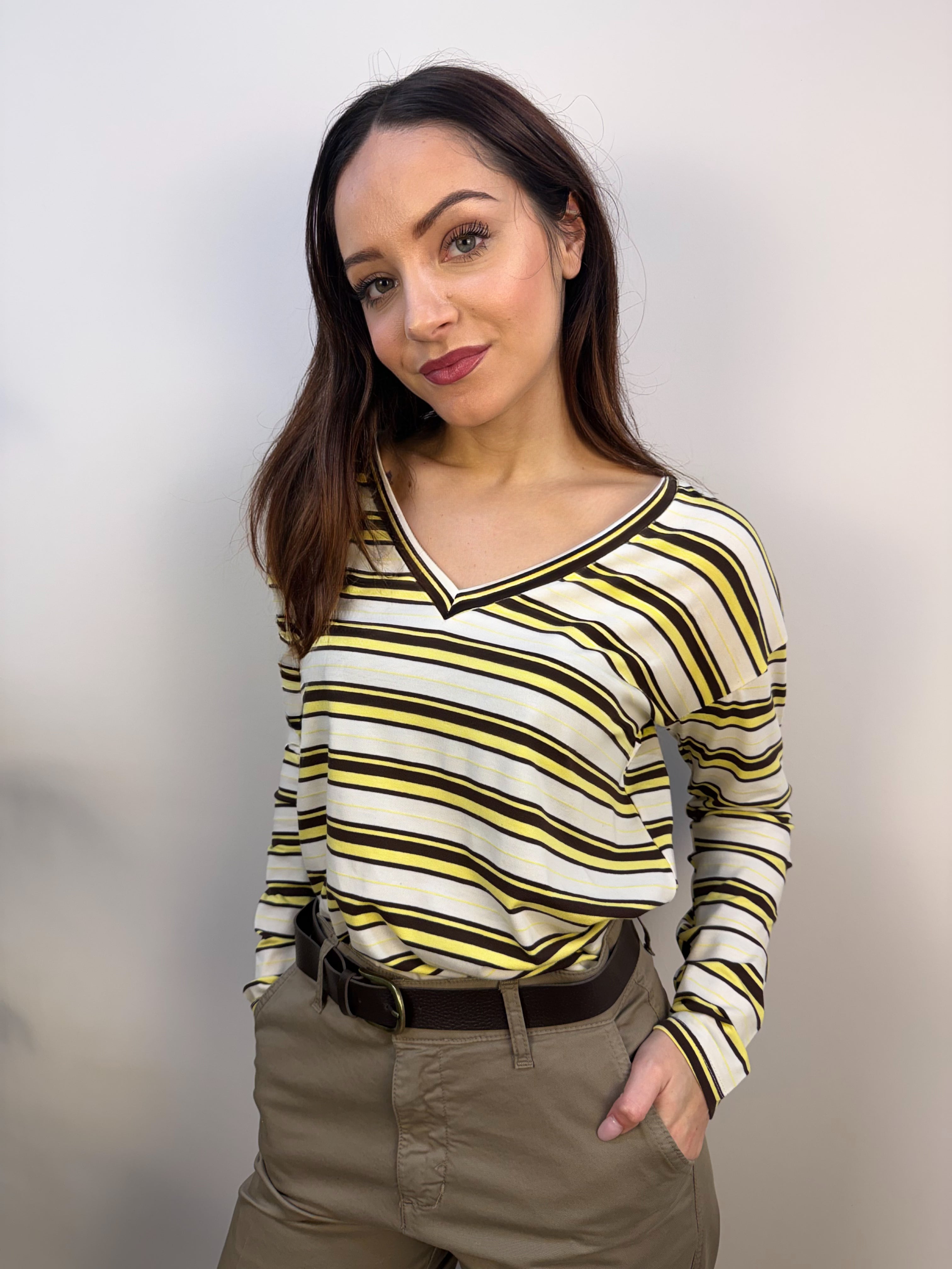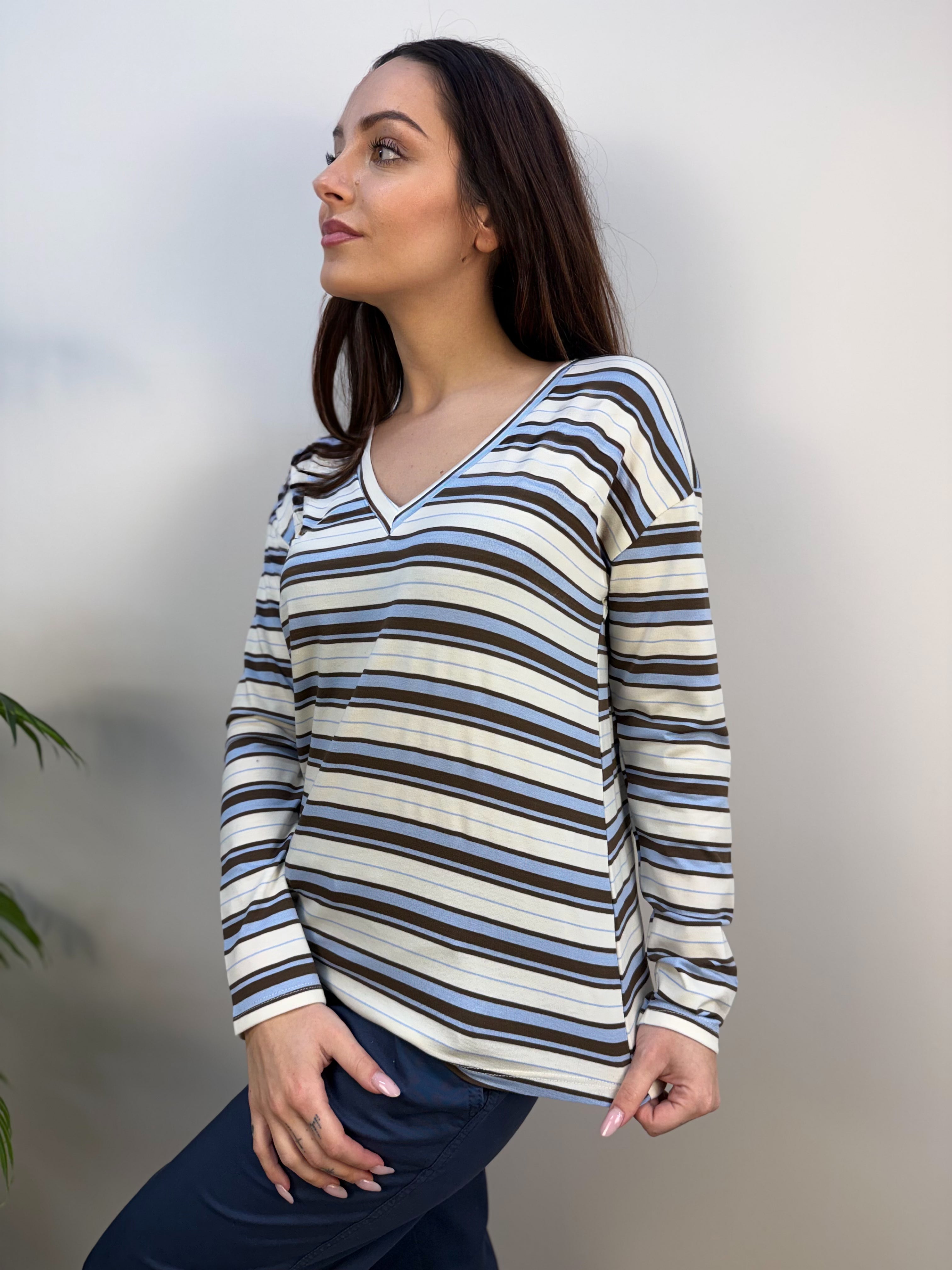 Maglia SUSY MIX maniche lunghe con scollo a V.