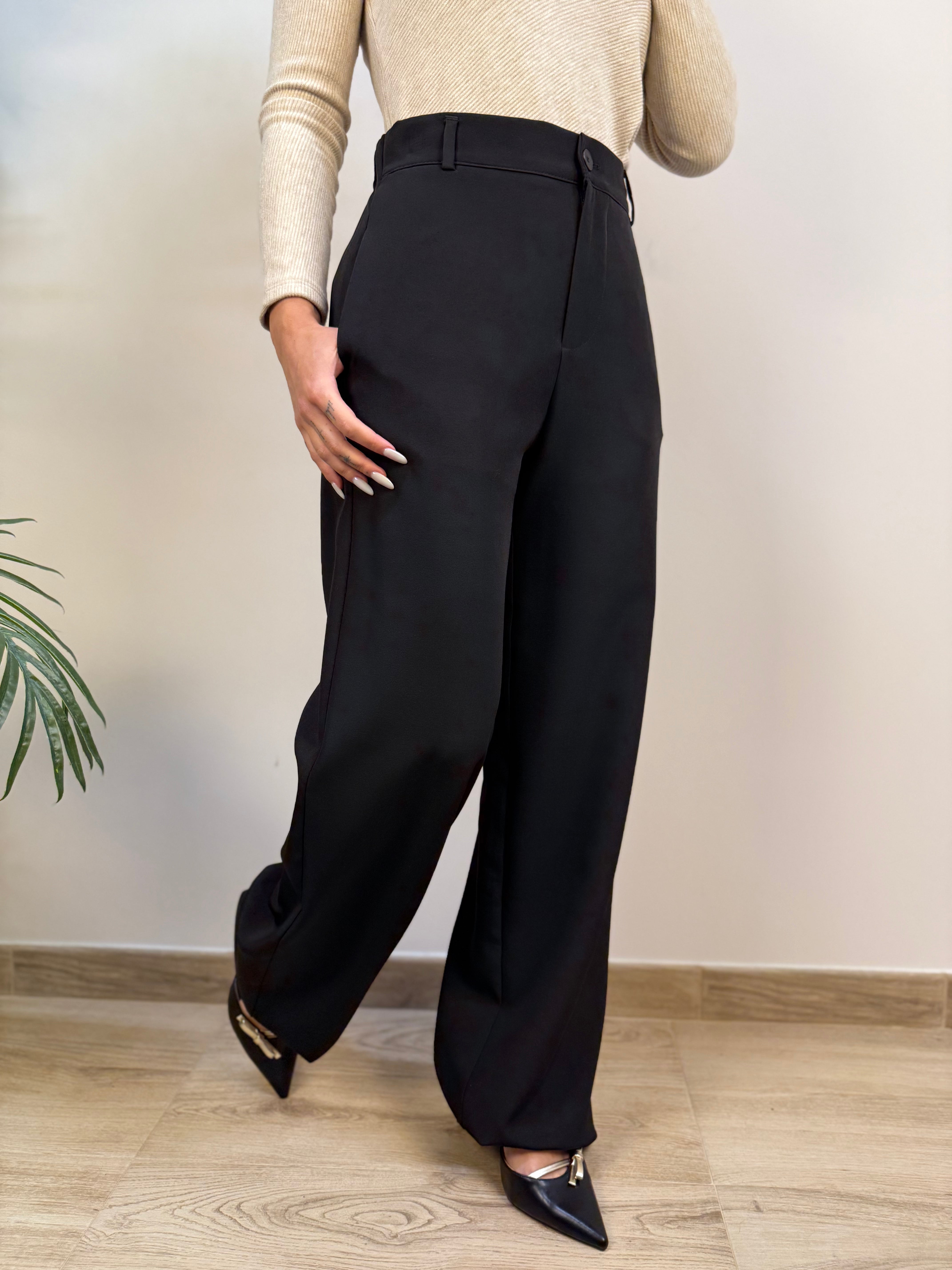 Pantalone Akè con gamba dritta ampia, dal design comodo e raffinato. La vita elasticizzata e arricciata sul retro garantisce una vestibilità confortevole, mentre la chiusura con bottone e zip dona un tocco classico. Dotato di tasche chino, questo modello unisce praticità ed eleganza, risultando perfetto per look sofisticati e versatili.