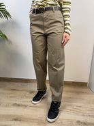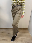 Pantalone SUSY MIX mom-fit con cintura in cuoio inclusa.