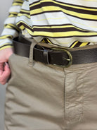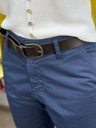 Pantalone mom-fit con cintura in cuoio
