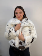 Un capo che unisce eleganza e personalità: questa pelliccia corta Susy Mix muccata si distingue per la sua fantasia unica e sofisticata, perfetta per chi vuole aggiungere un tocco di carattere al proprio guardaroba invernale. Il taglio corto e lo scollo a piega valorizzano la silhouette, mentre la chiusura con due gancetti nascosti garantisce una linea pulita e raffinata. Ideale per completare look chic e di tendenza con originalità.