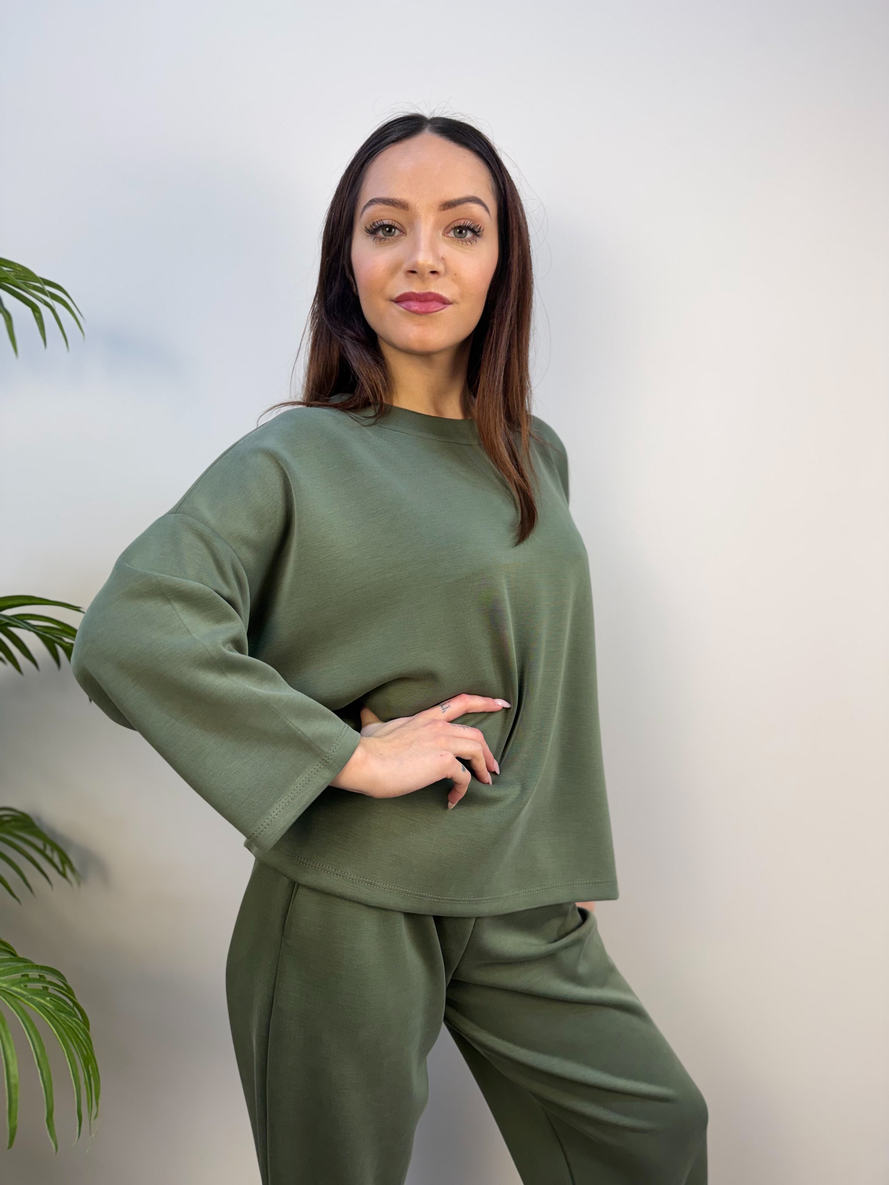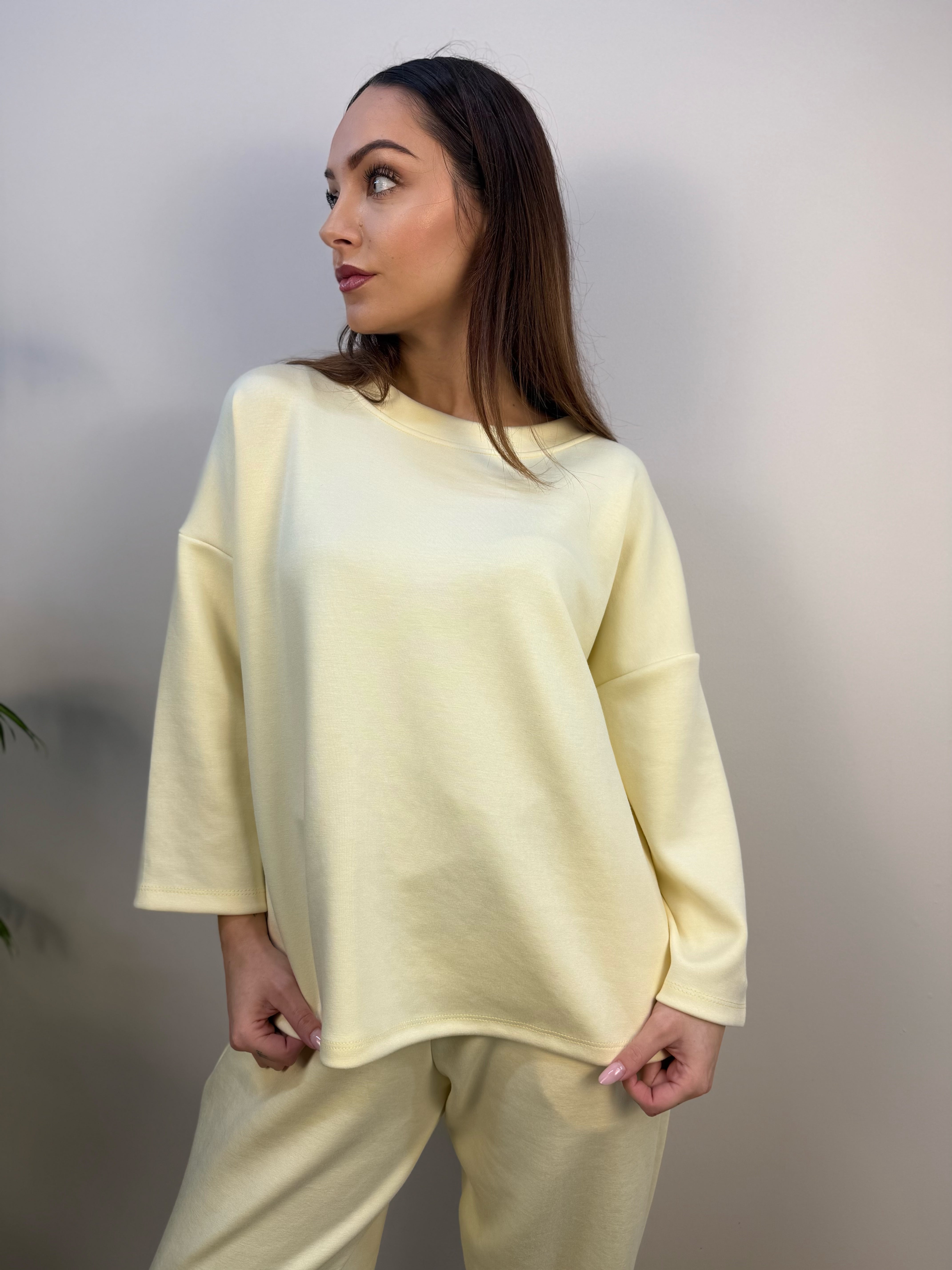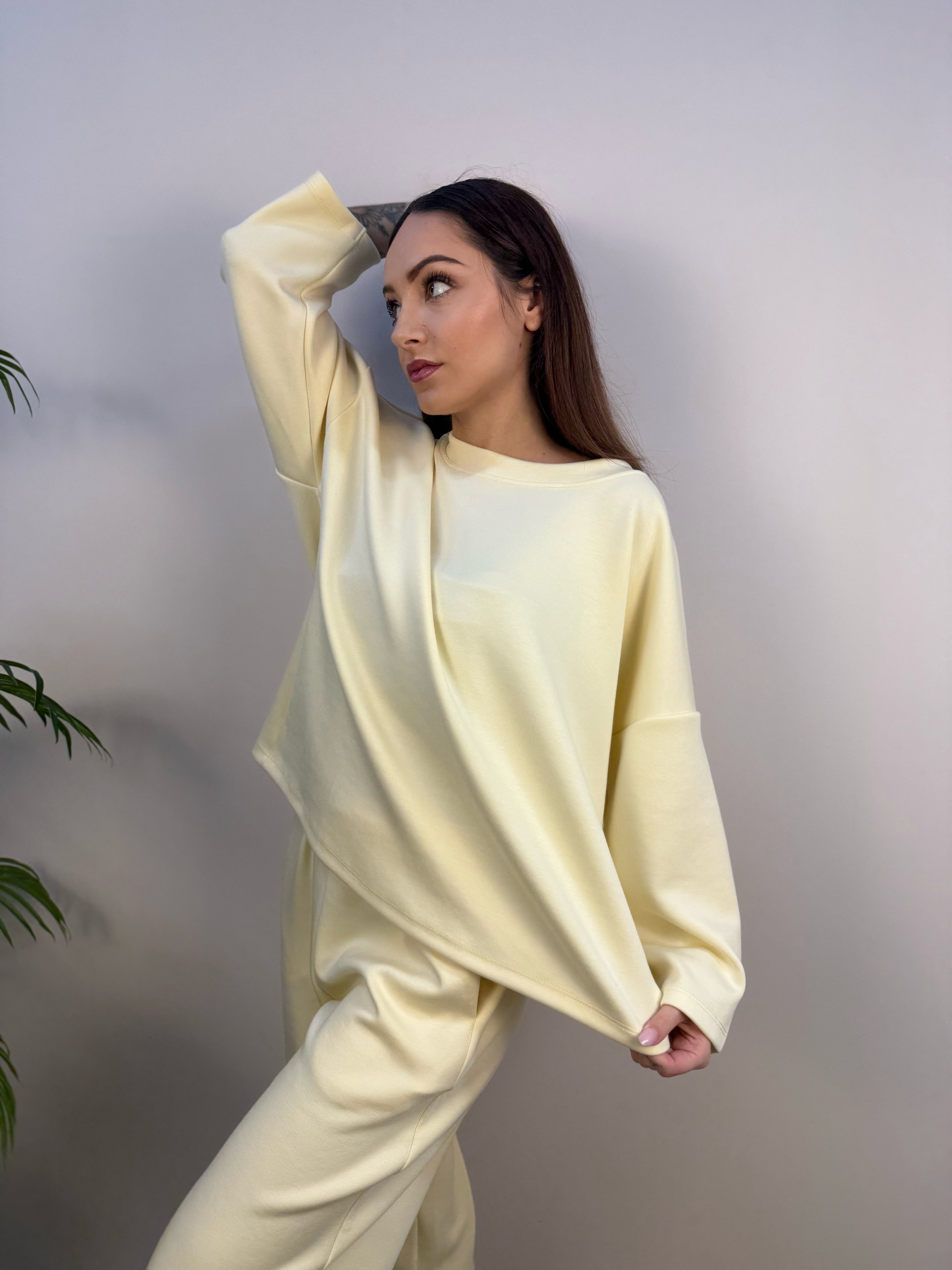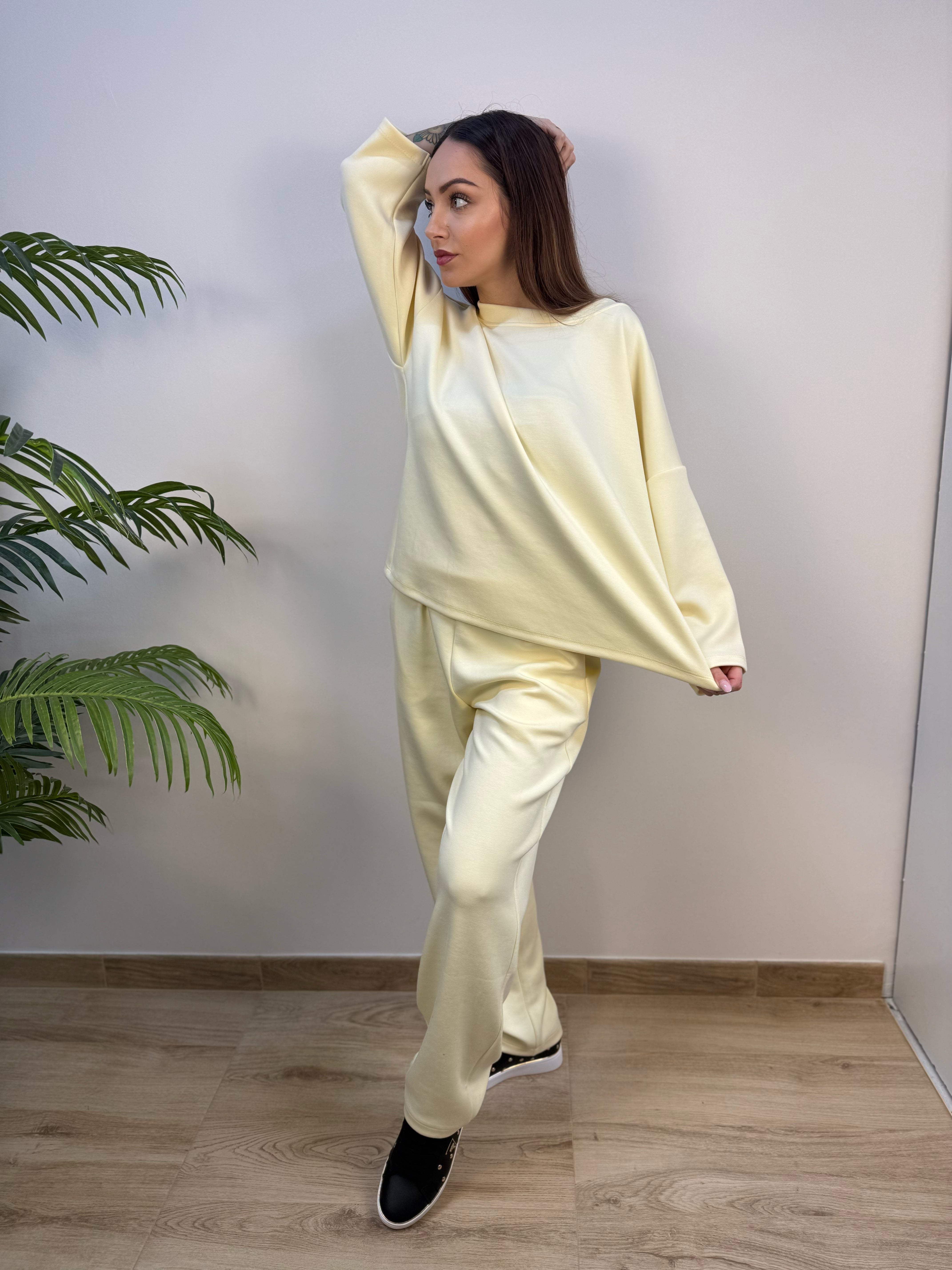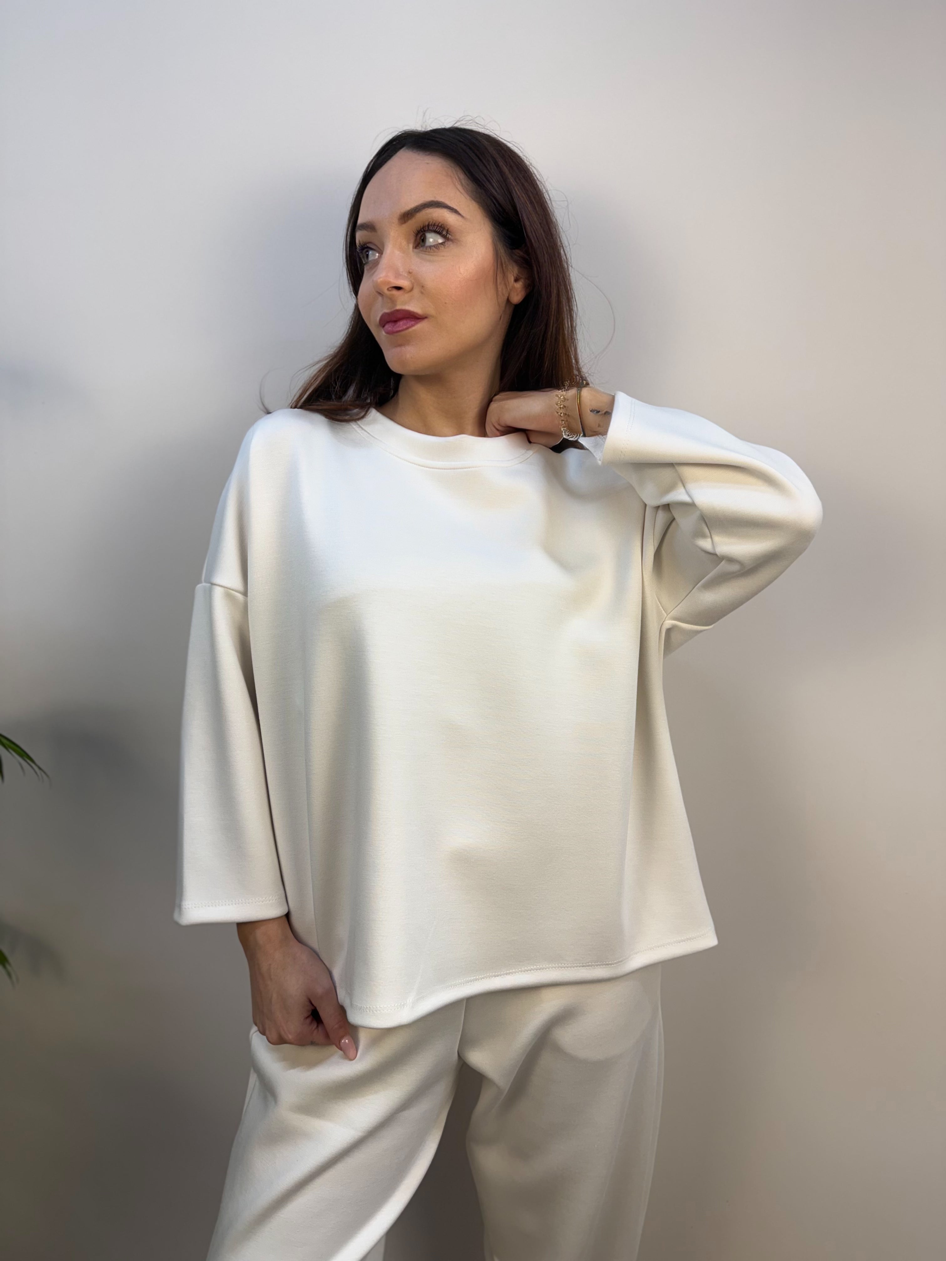 Set tuta SUSY MIX in scuba, felpa girocollo e pantalone a palloncino.