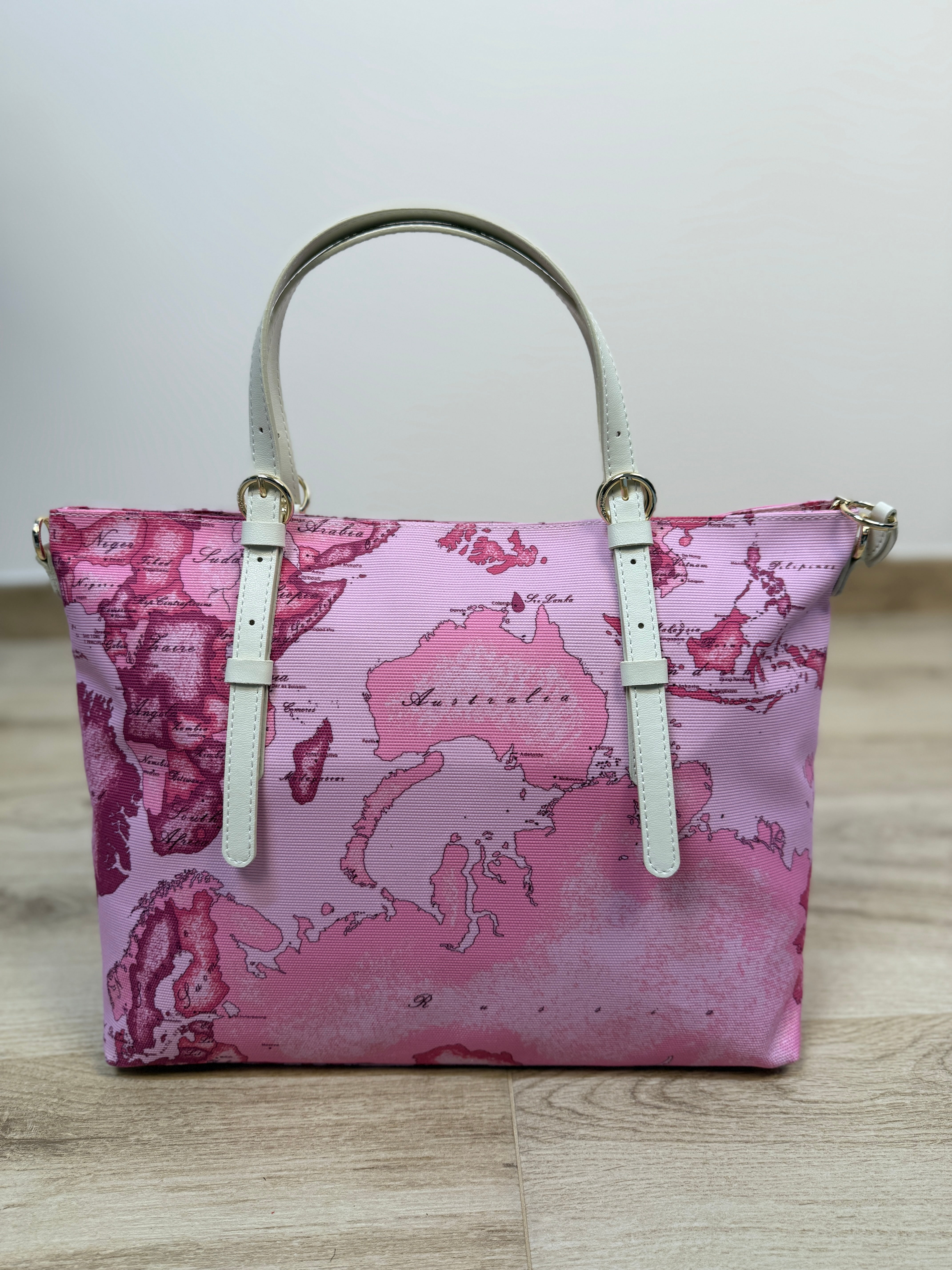Borsa ALVIERO MARTINI shopper 1° classe destination in tessuto con fantasia geografica. Tracolla regolabile e removibile.