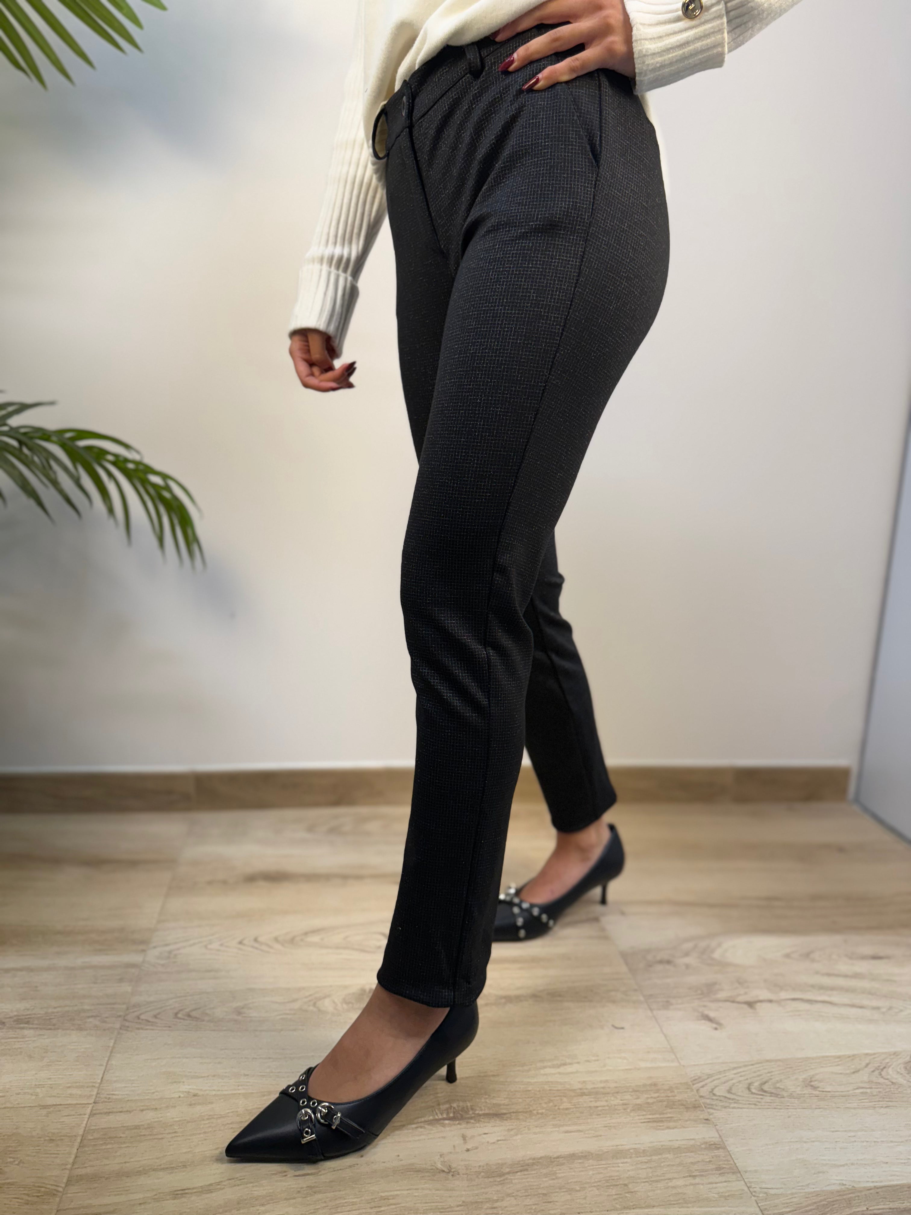 Realizzati in morbido tessuto misto viscosa, questi pantaloni Vantage in punto Milano sono elasticizzati per garantire massimo comfort e una vestibilità impeccabile. Il taglio skinny valorizza la silhouette senza rinunciare alla libertà di movimento. Presentano tasche frontali in stile chino e due tasche cucite sul retro, con chiusura a zip e bottone tono su tono per un look pulito e curato. Proposti in una tonalità in fantasia a quadri tono su tono, offrono un effetto raffinato e discreto, ideale per outfit casual chic o più eleganti.