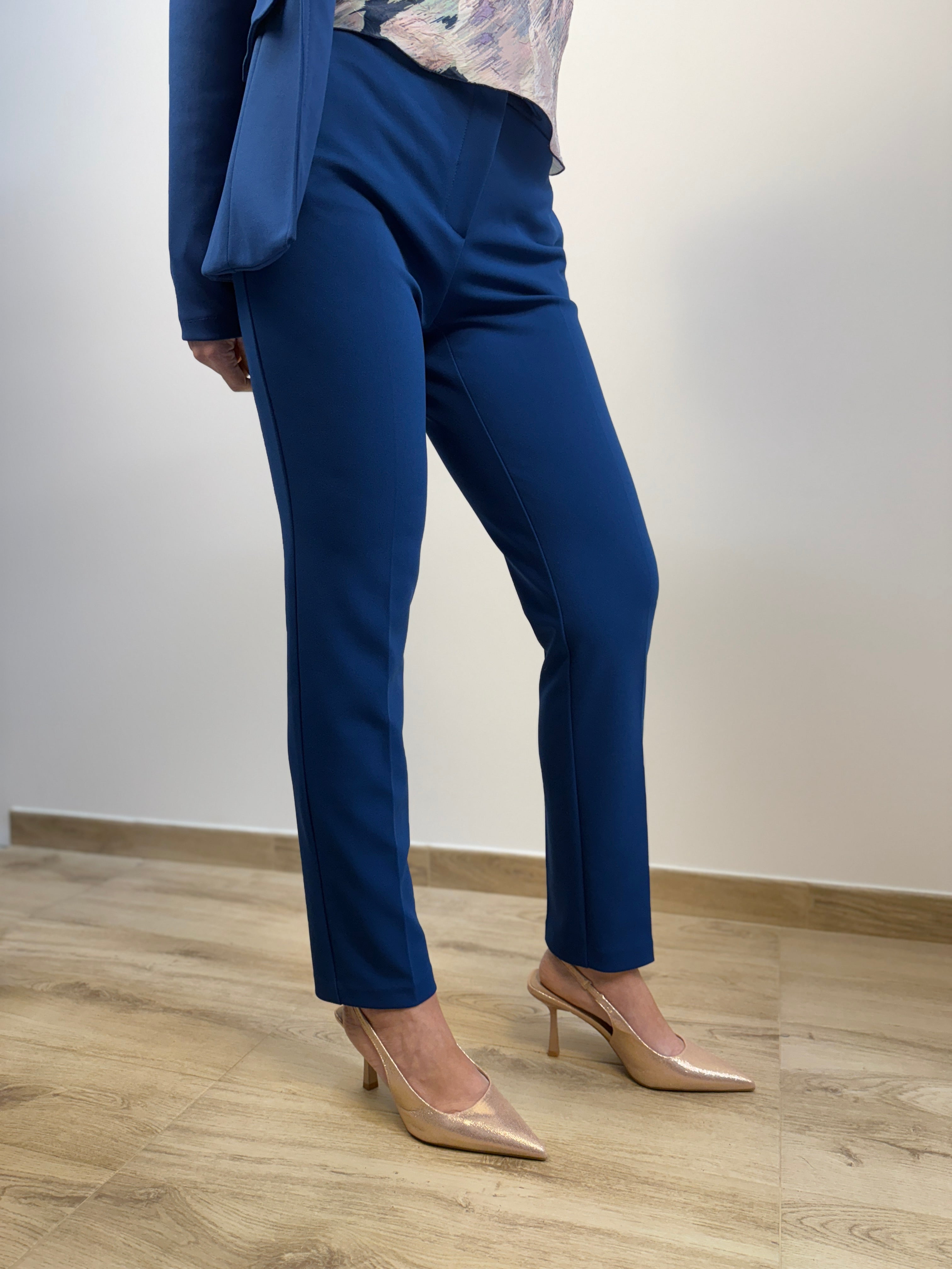 Pantalone a sigaretta bottone in tessuto ed elastico in vita