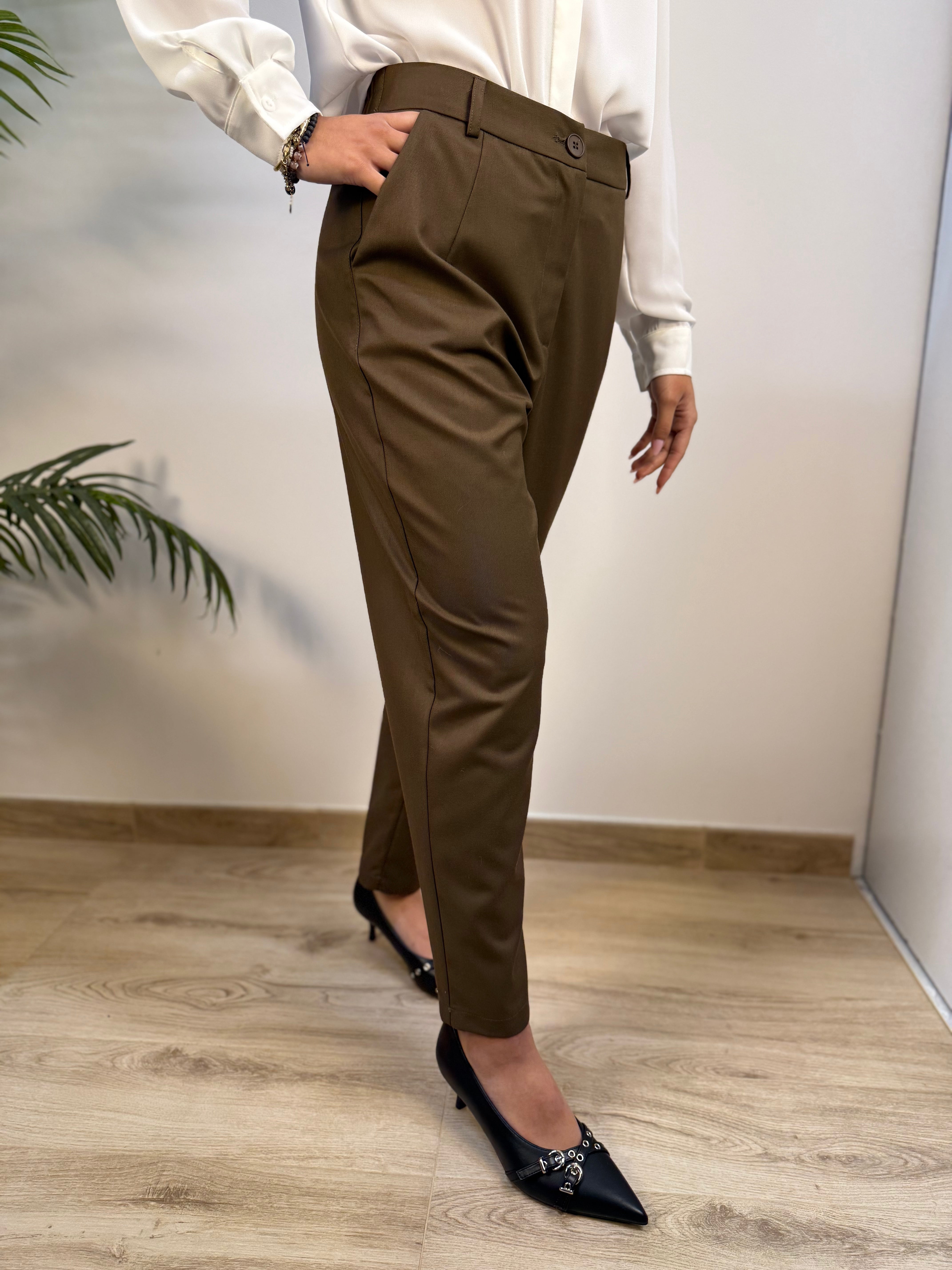Pantaloni You Decide a sigaretta, realizzati in tessuto caldo e sostenuto per comfort e vestibilità. Taglio chino con chiusura con bottone e zip, vita arricciata ed elasticizzata sul retro per maggiore comodità. Perfetti per un look elegante ma confortevole, unendo stile e praticità.