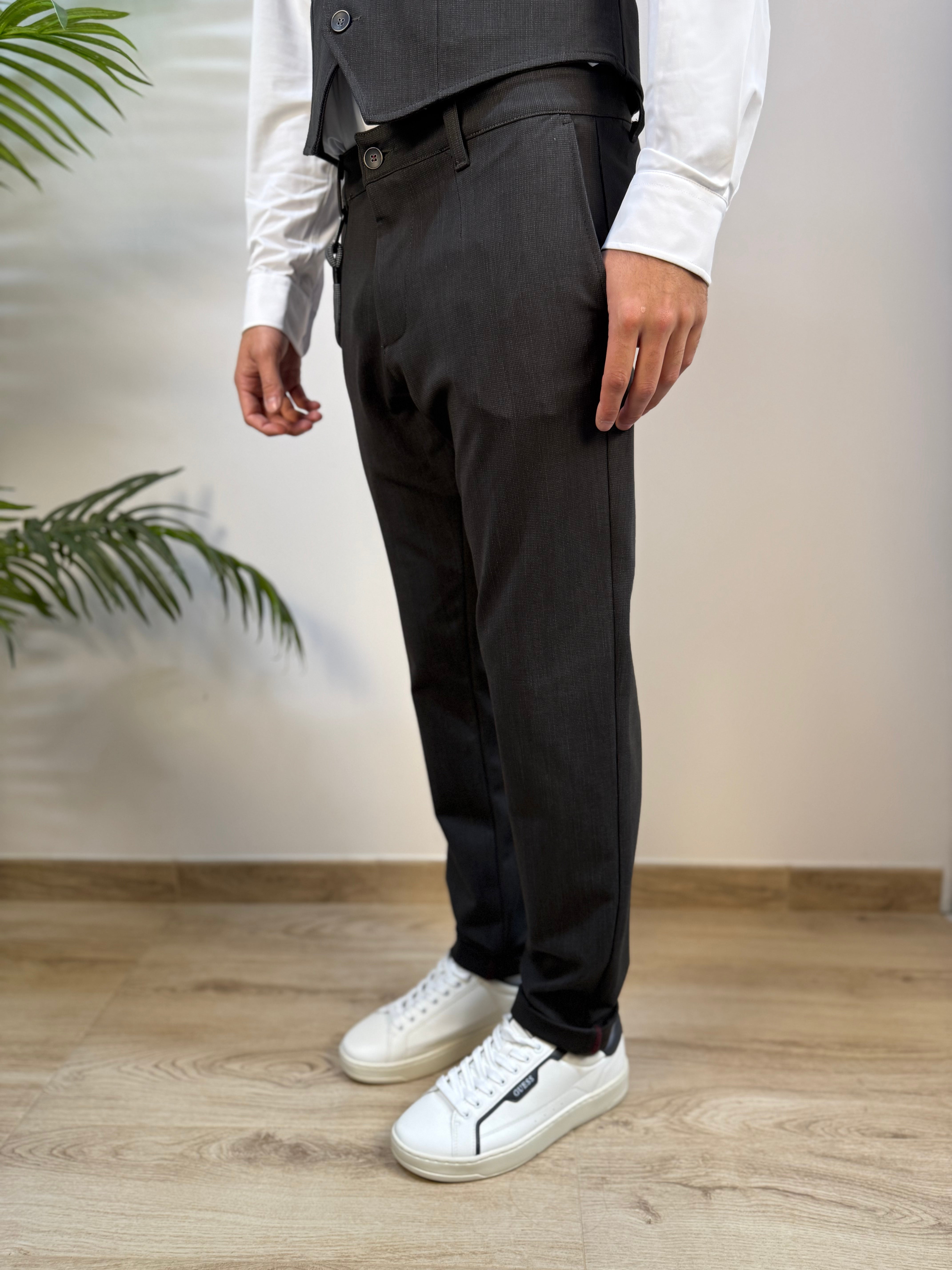 Pantalone slim in microtrama tono su tono