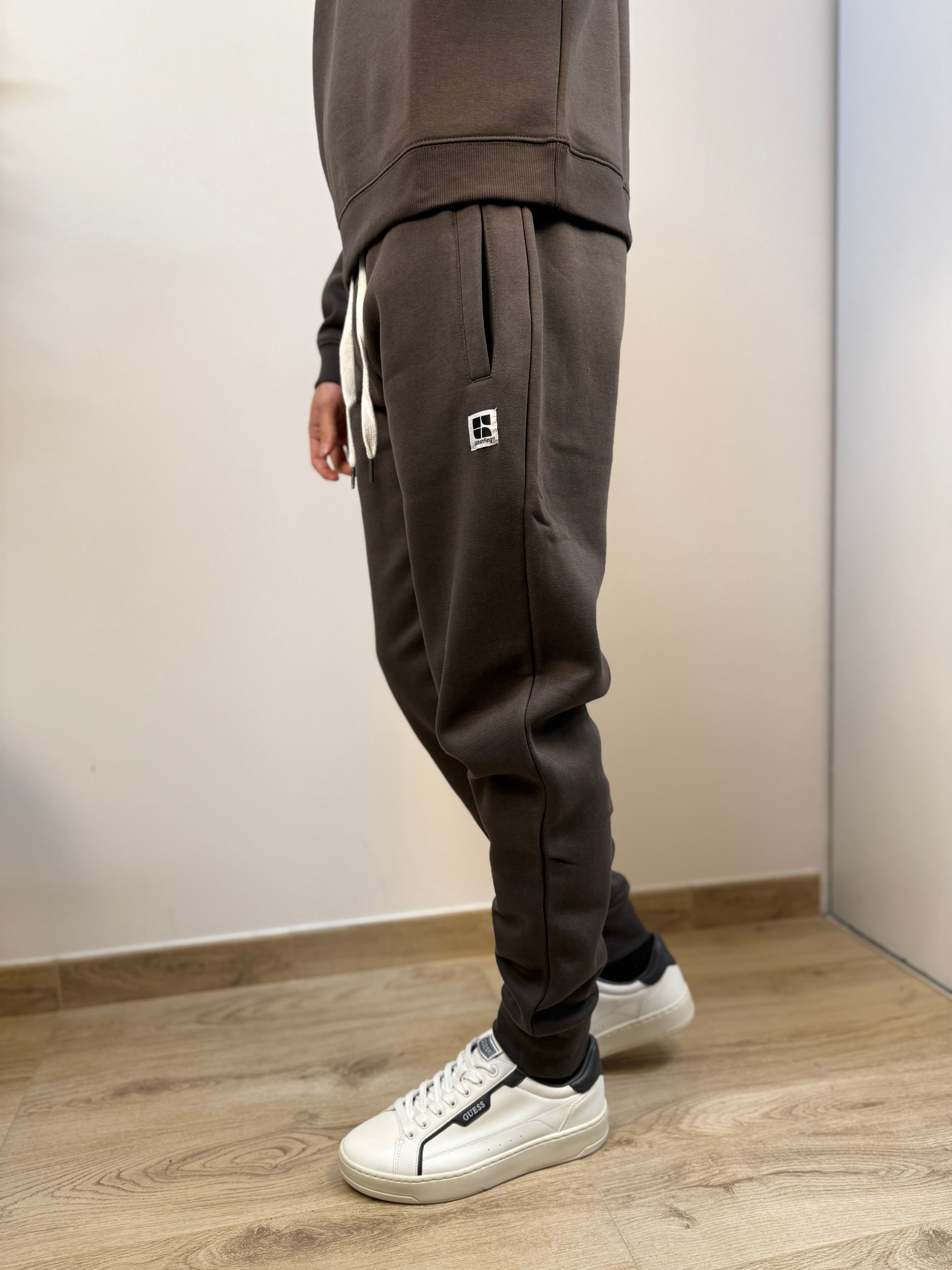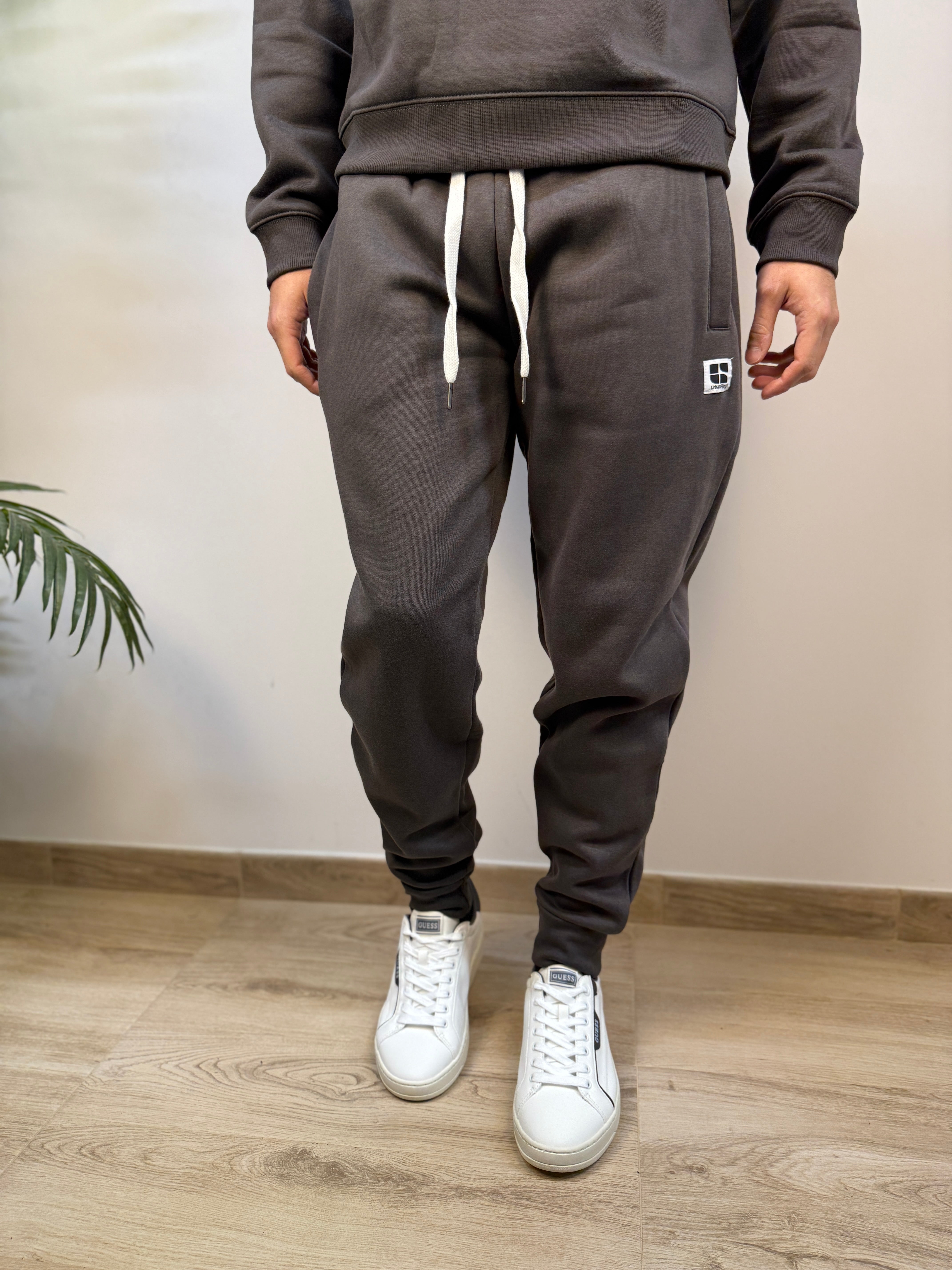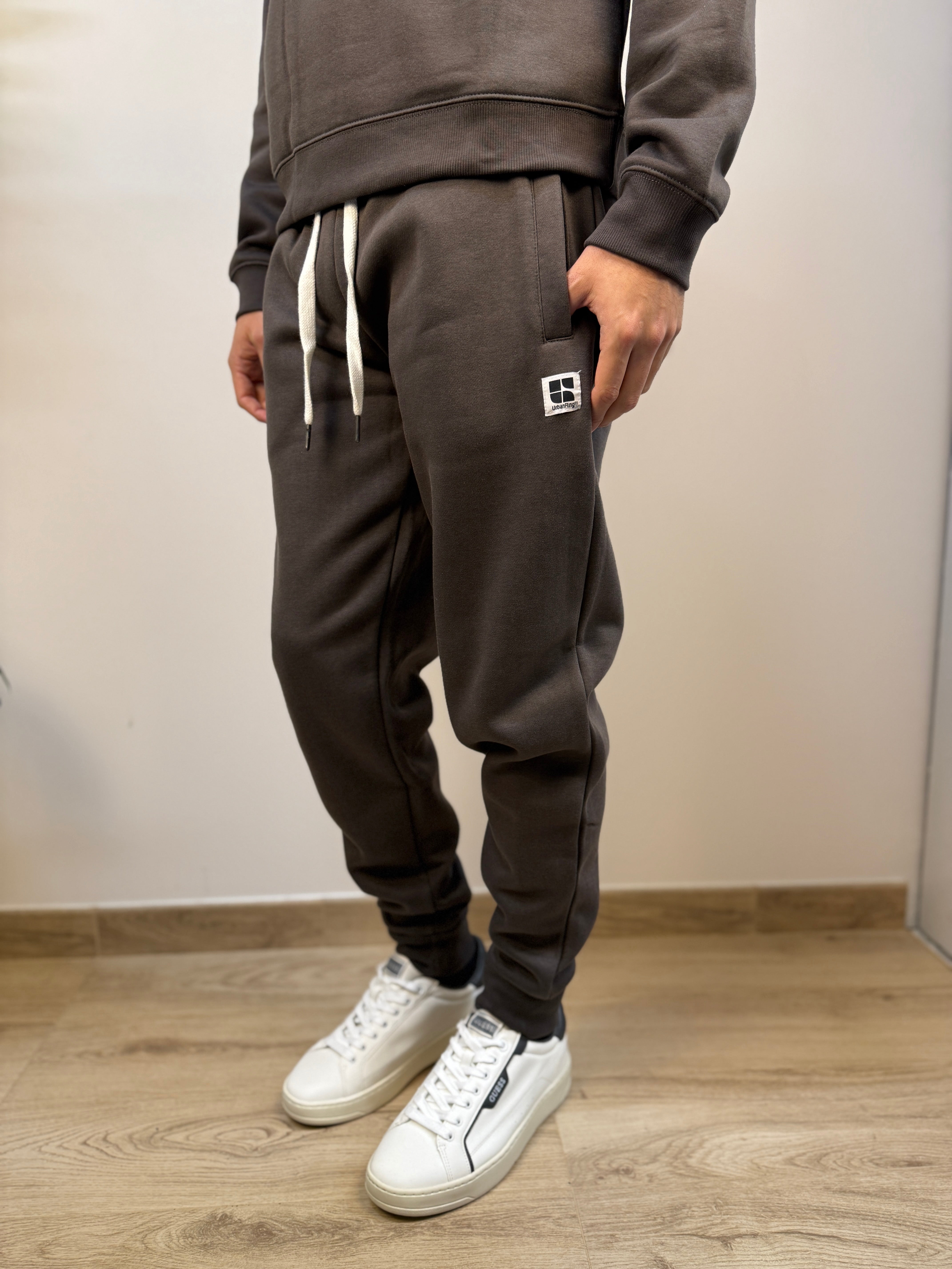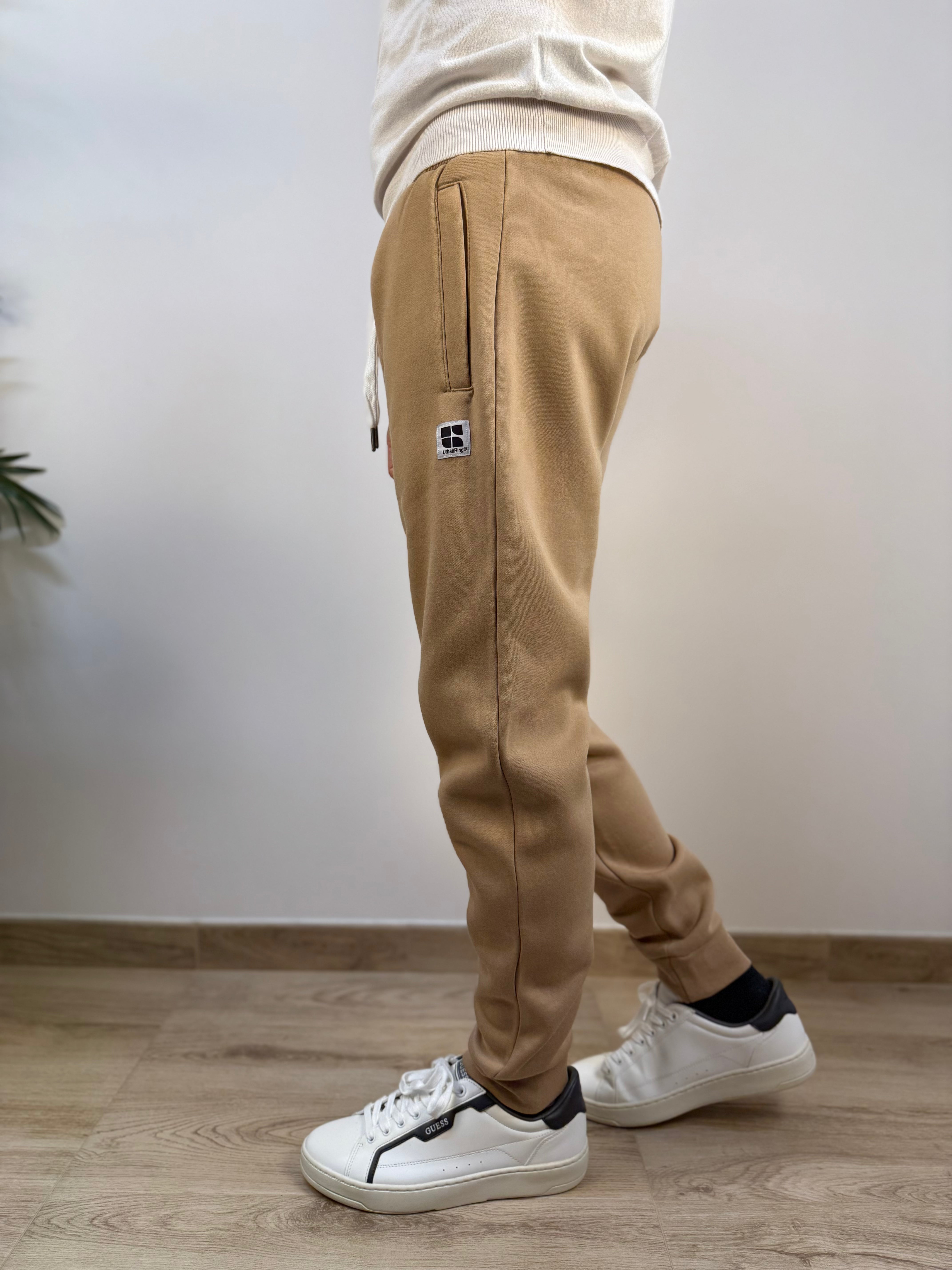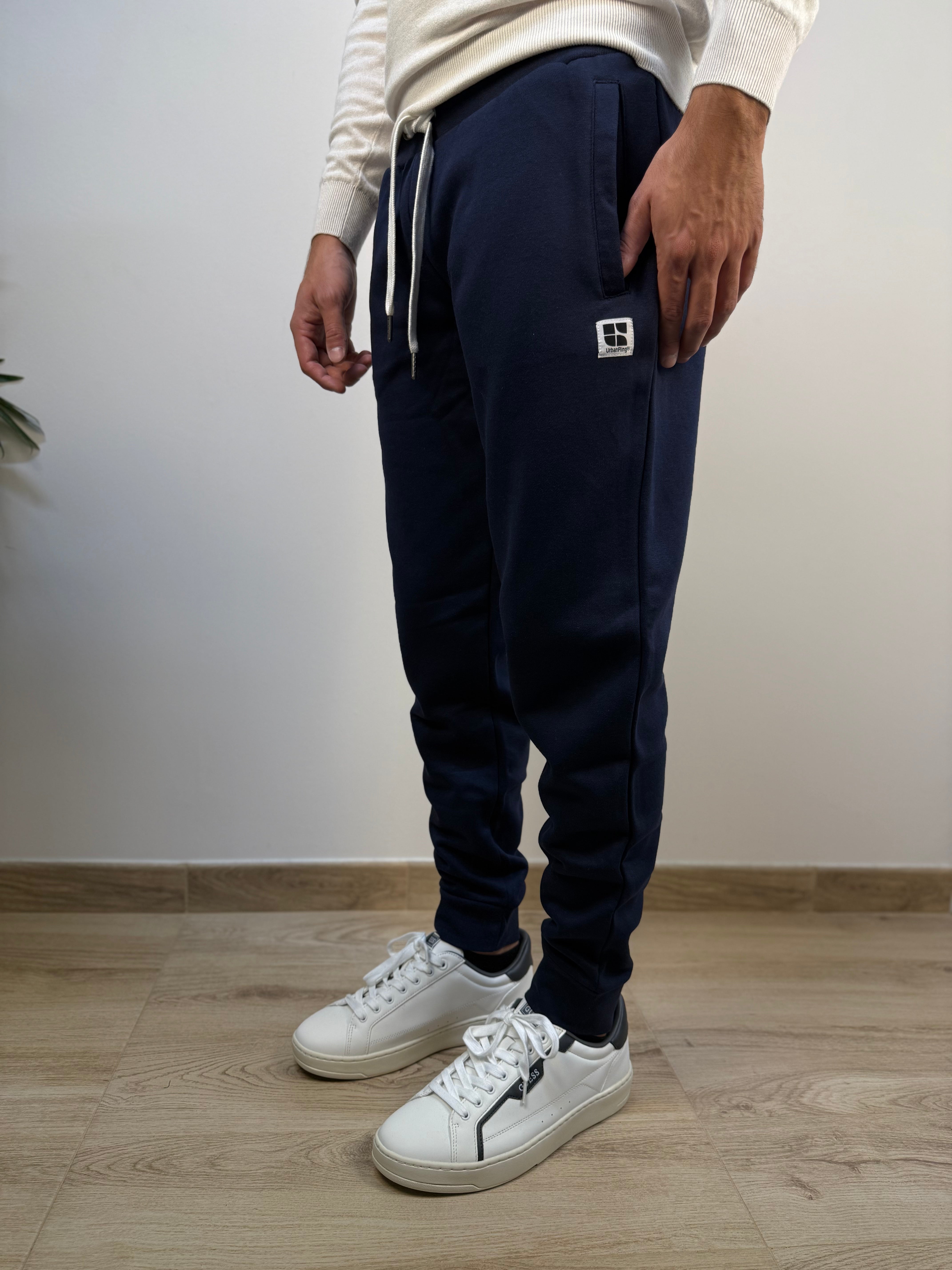 Essenziale, comodo e versatile: questo pantalone firmato Urban Ring in cotone è perfetto per un look casual da tutti i giorni. Proposto in diverse varianti colore, si adatta facilmente a ogni stile. La struttura felpata all’interno garantisce comfort e calore, rendendolo ideale per le stagioni più fresche. Dotato di una coulisse regolabile in vita con lacci e di un polsino alla caviglia, offre una vestibilità pratica e contemporanea. La struttura in tinta unita è arricchita da due tasche laterali e da una patch logata ricamata in bianco sulla coscia, per un tocco distintivo ma discreto. Un capo facile da abbinare, pensato per il comfort senza rinunciare ai dettagli.