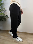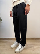 Pantalone Gianni Lupo realizzato in morbido punto Milano, con coulisse elasticizzata e regolabile tramite lacci per un comfort personalizzato. Il modello presenta tasche a filo dal design essenziale e pulito, mentre il tessuto elasticizzato garantisce libertà di movimento e comodità, come se non lo avessi addosso. La gamba dritta cade morbida, conferendo un look rilassato ma curato, perfetto per diverse occasioni e facilmente abbinabile a tanti outfit, dal casual al più ricercato.