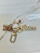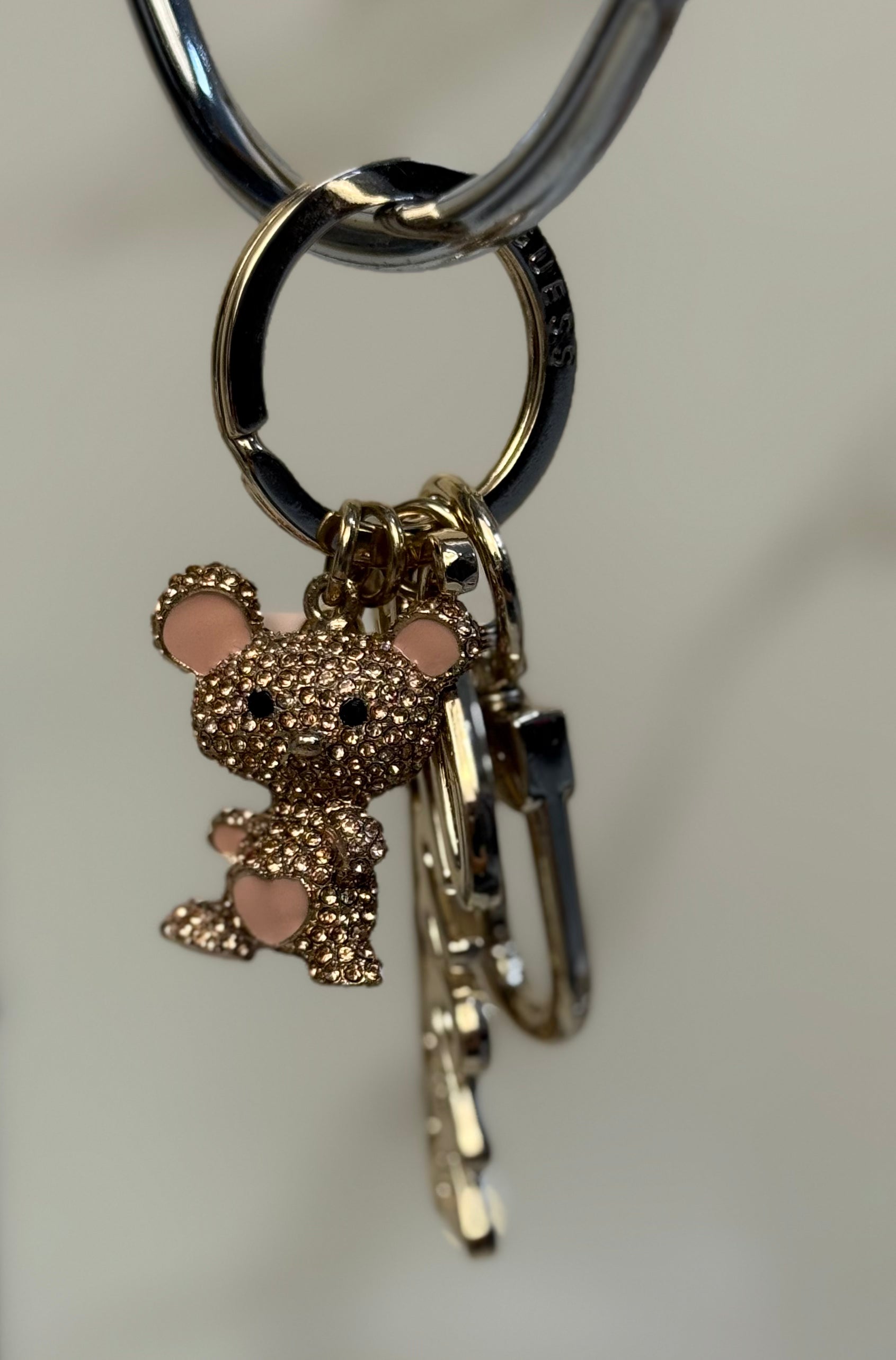Charm coniglietto con applicazione in strass, cuoricino logato e scritta logata.