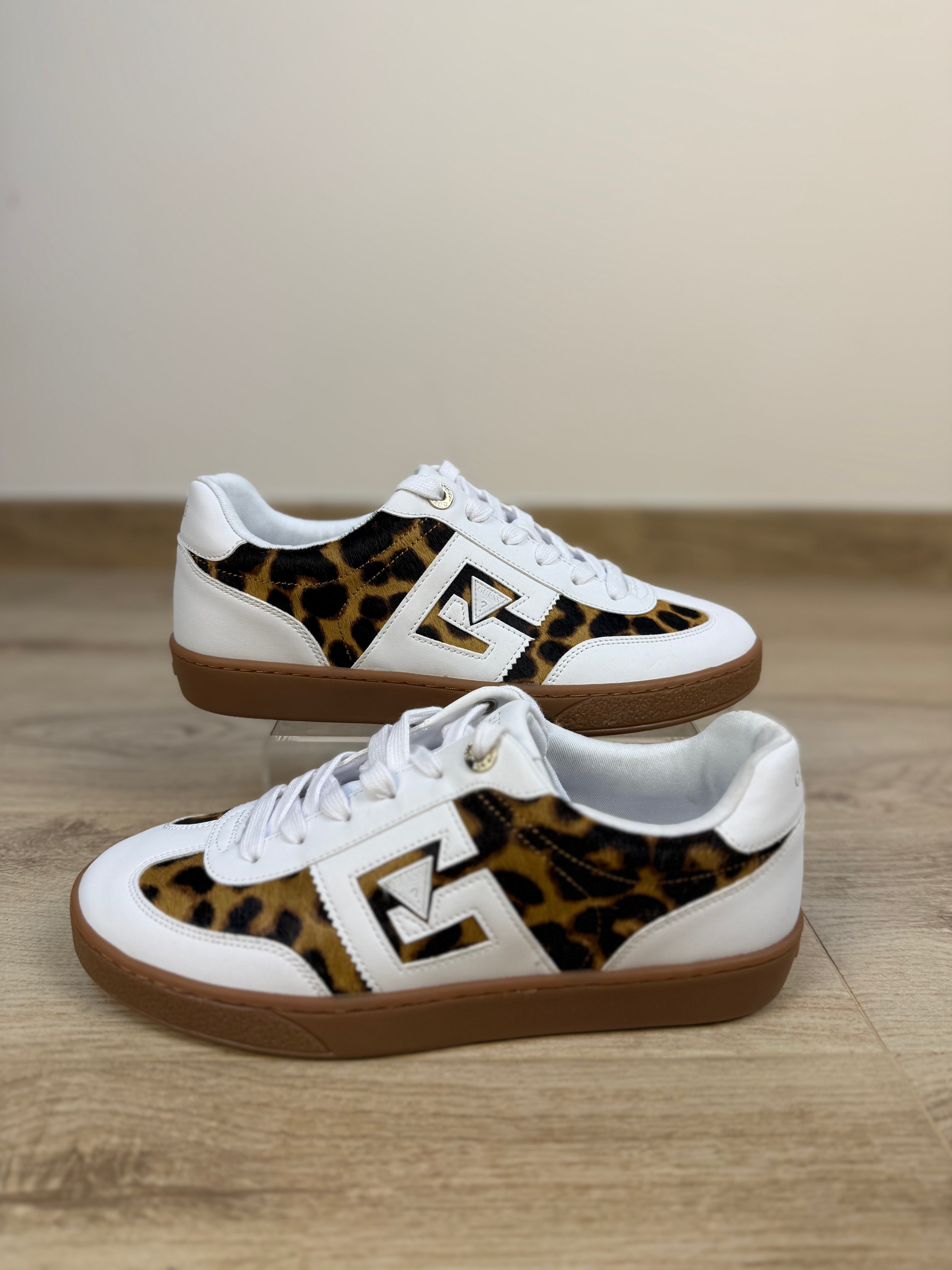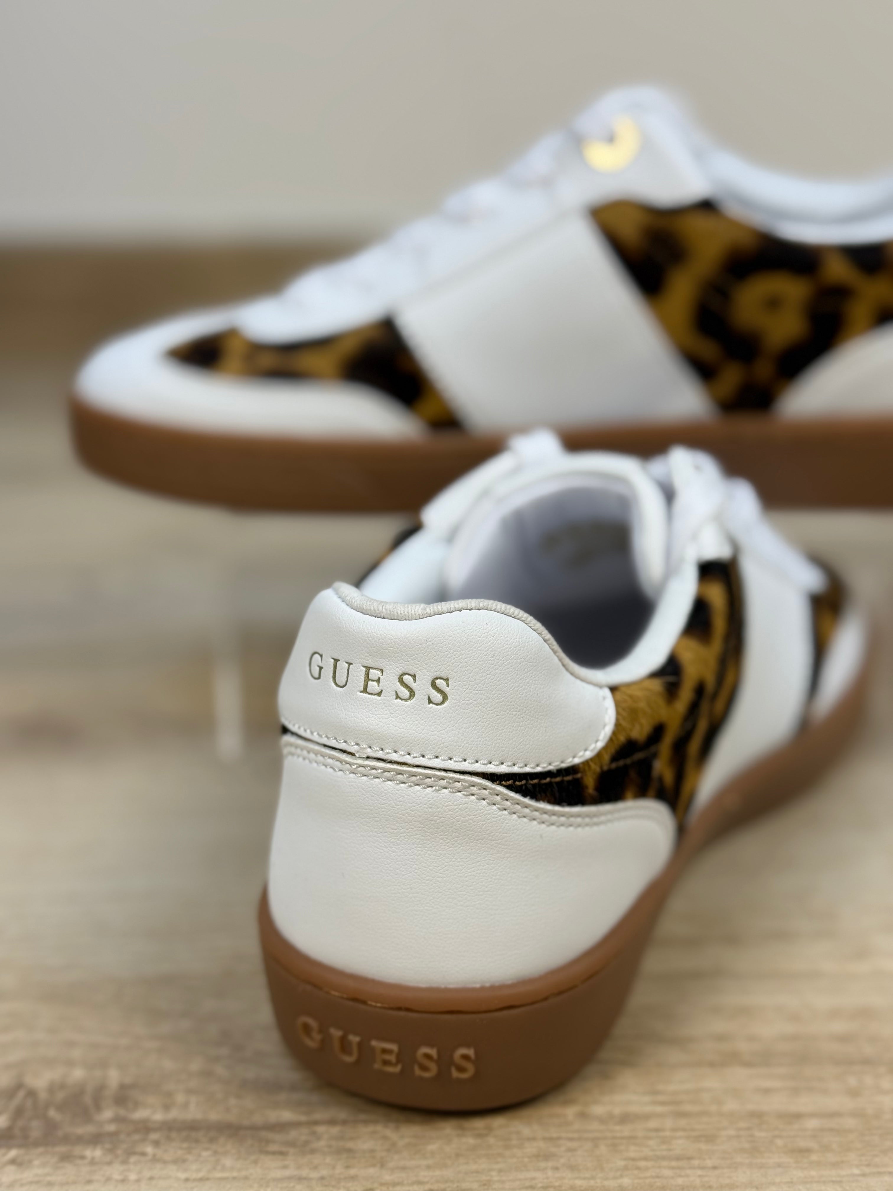 Sneaker GUESS con stampa animalieur su entrambi i lati e sulla parte frontale della scarpa tipo "cavallino" e suola marrone.