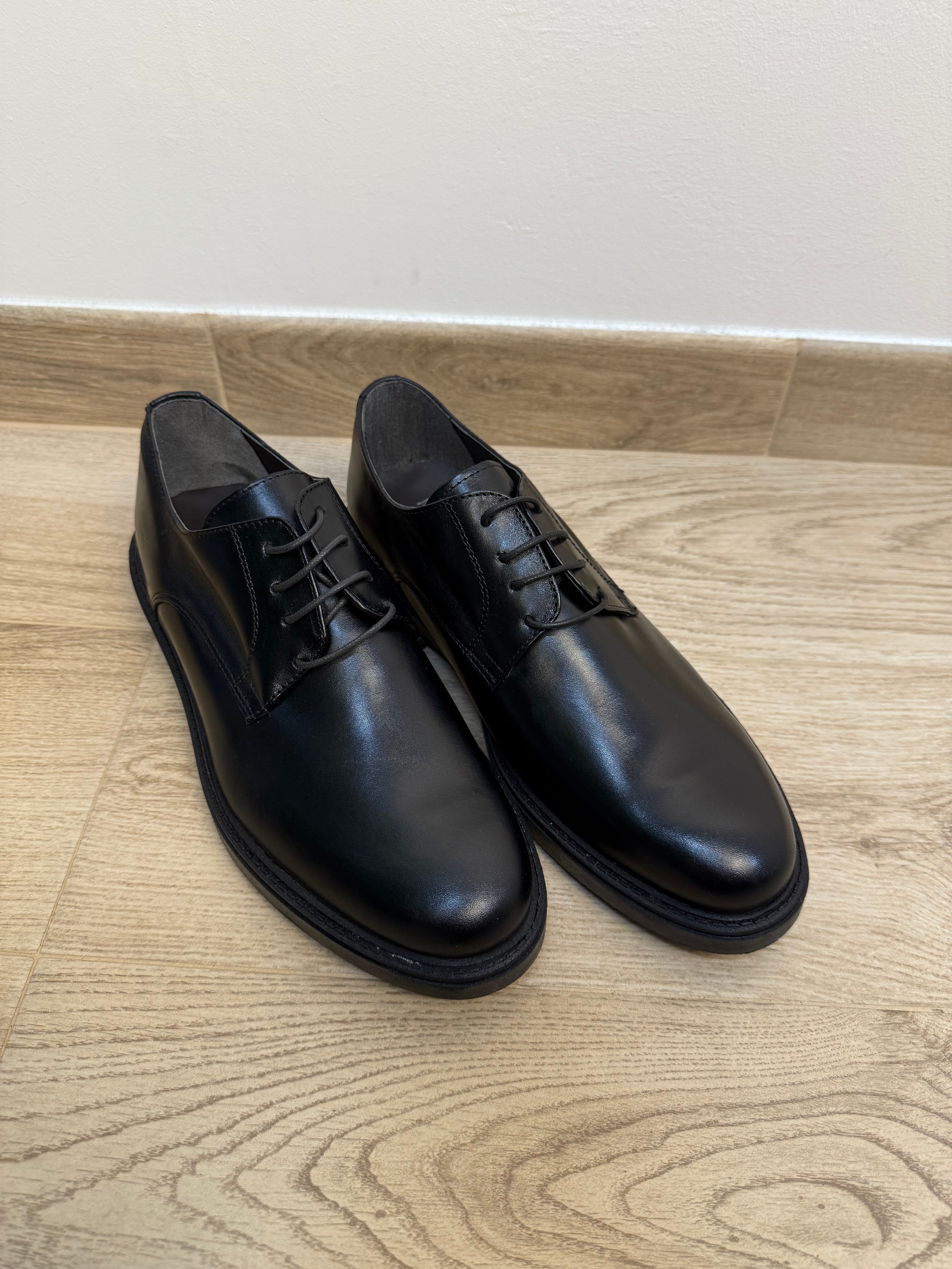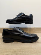 Scarpe stringate in pelle nera dal design elegante e senza tempo, perfette per completare look formali o raffinati. La suola in gomma assicura stabilità e aderenza, mentre la soletta interna morbida garantisce comfort anche dopo molte ore. Un modello versatile e curato nei dettagli, ideale per ogni occasione in cui è richiesto un tocco di classe.