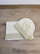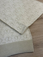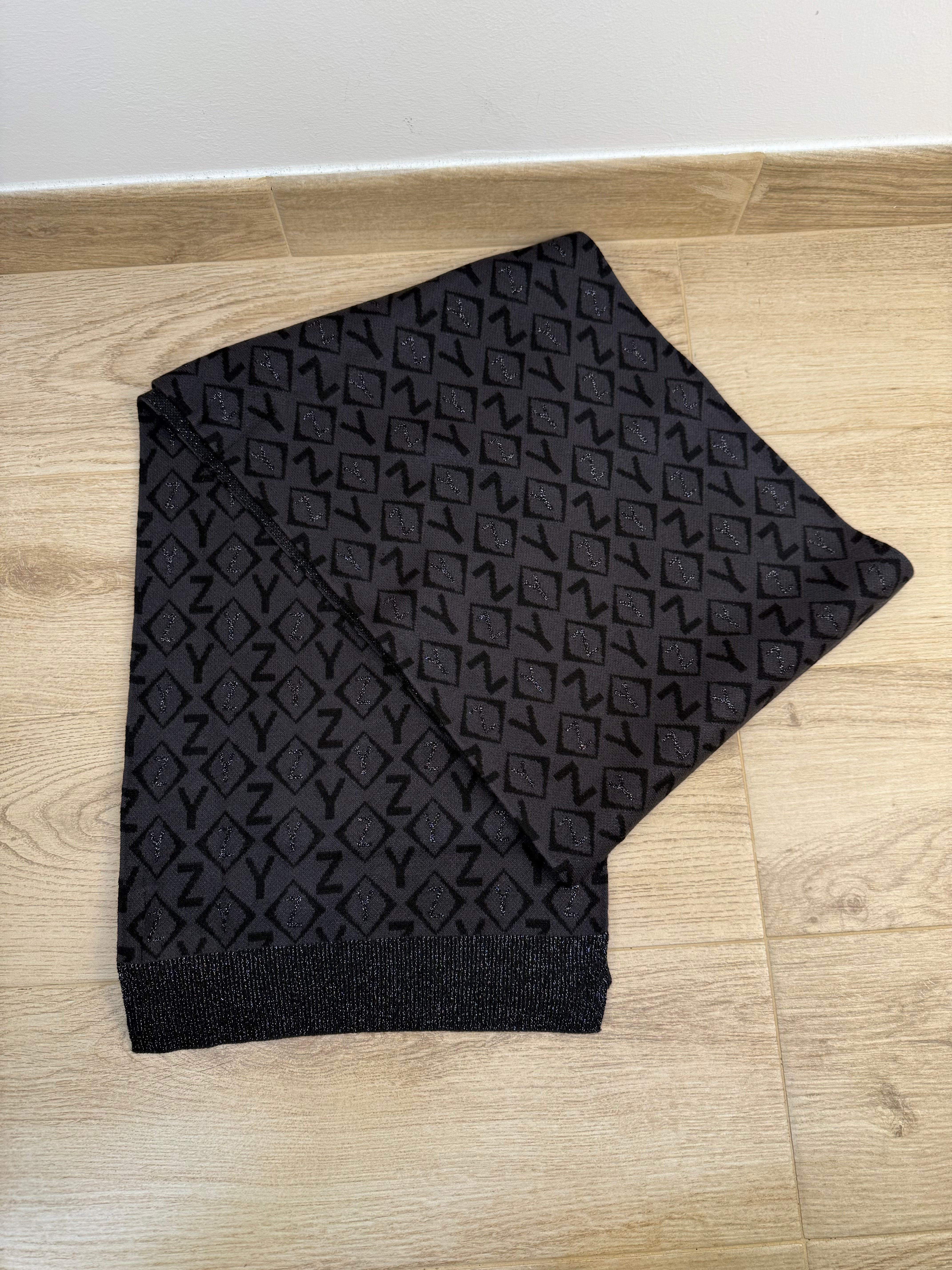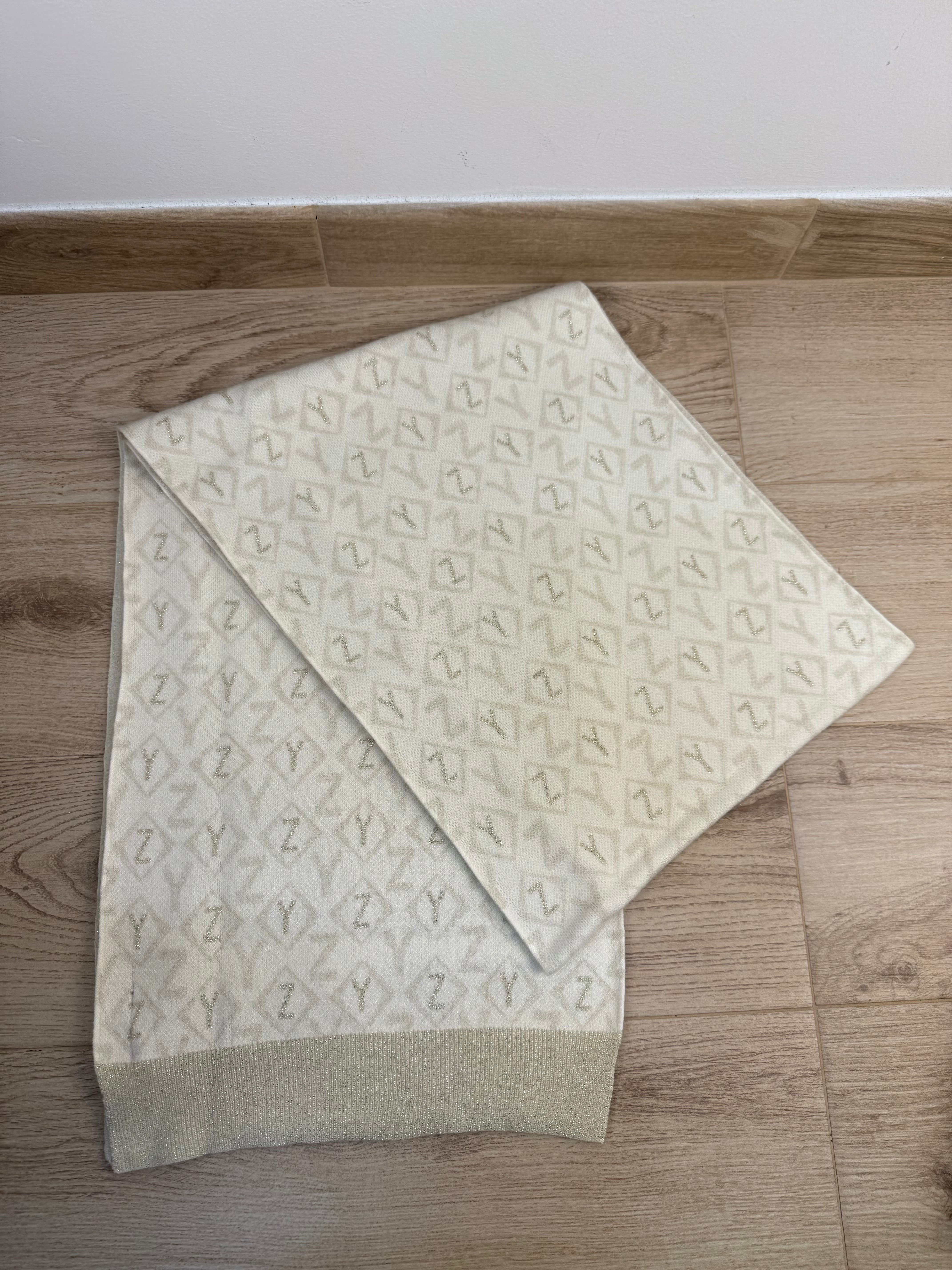 Sciarpa Yes-Zee in morbida maglia con trama logata a rombi, impreziosita da un filato in lurex che dona un tocco di luminosità. Calda, soffice e raffinata, completa alla perfezione i look invernali coordinandosi con il berretto della stessa linea.