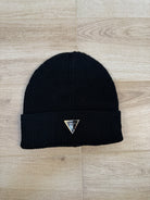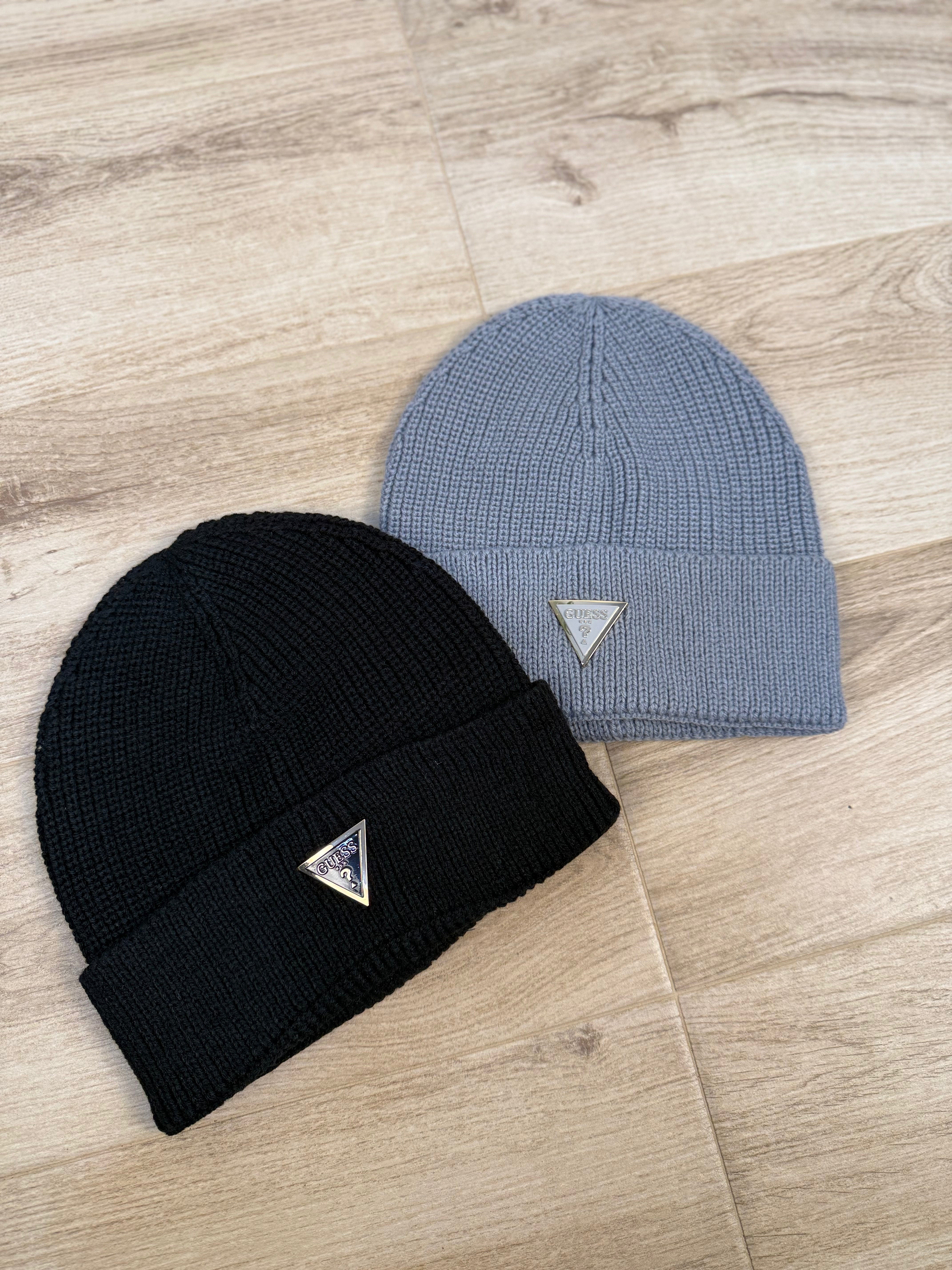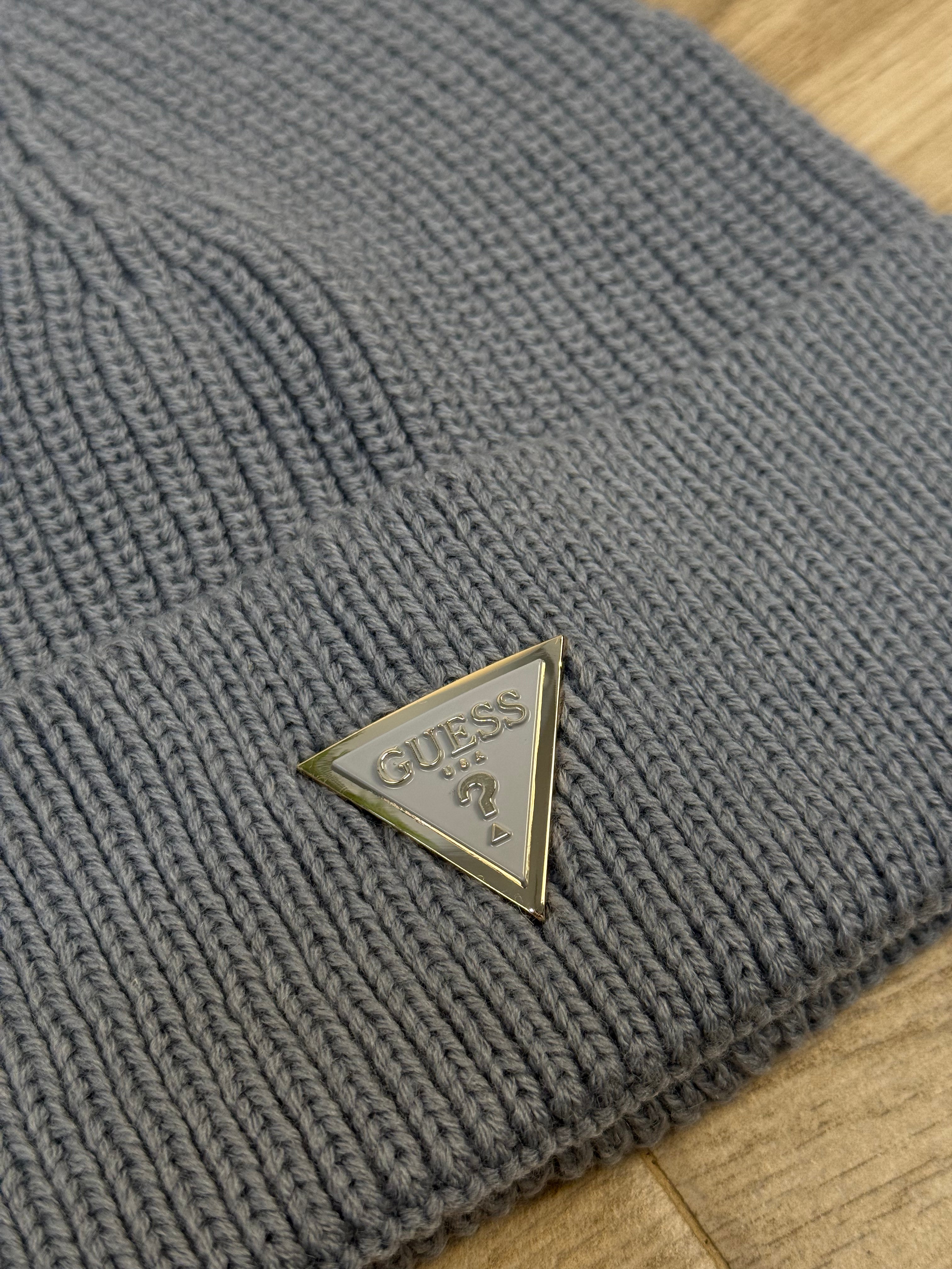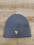 Morbida cuffia Guess in tinta unita con logo a triangolo sul fronte, perfetta per un look raffinato e contemporaneo.