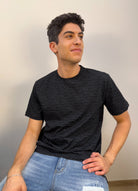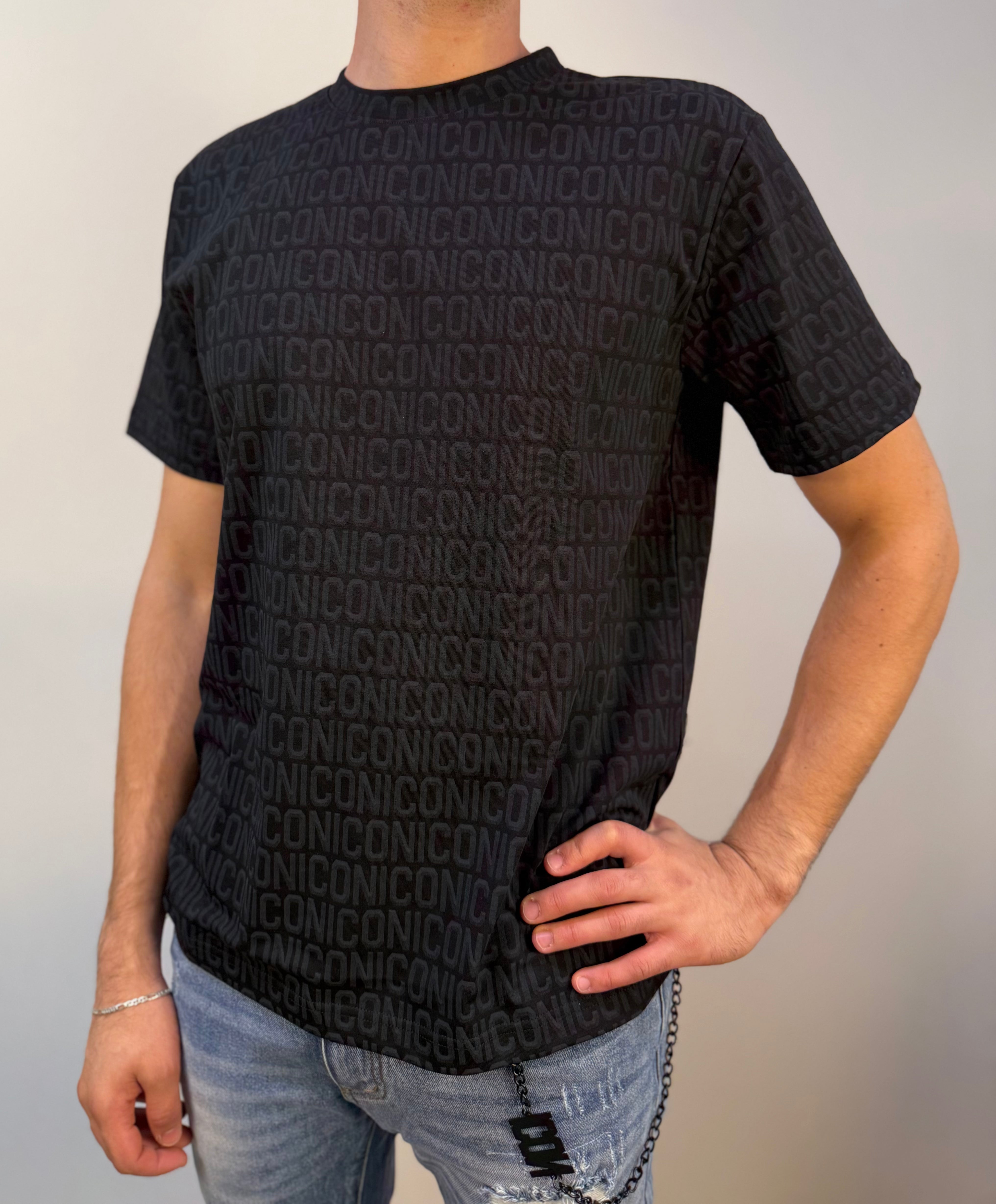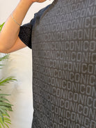 T-shirt ICON girocollo in cotone morbido, caratterizzata da una trama logata all over a leggero contrasto grigio su nero. Un capo sofisticato e confortevole, ideale per chi ama i dettagli discreti ma di stile.