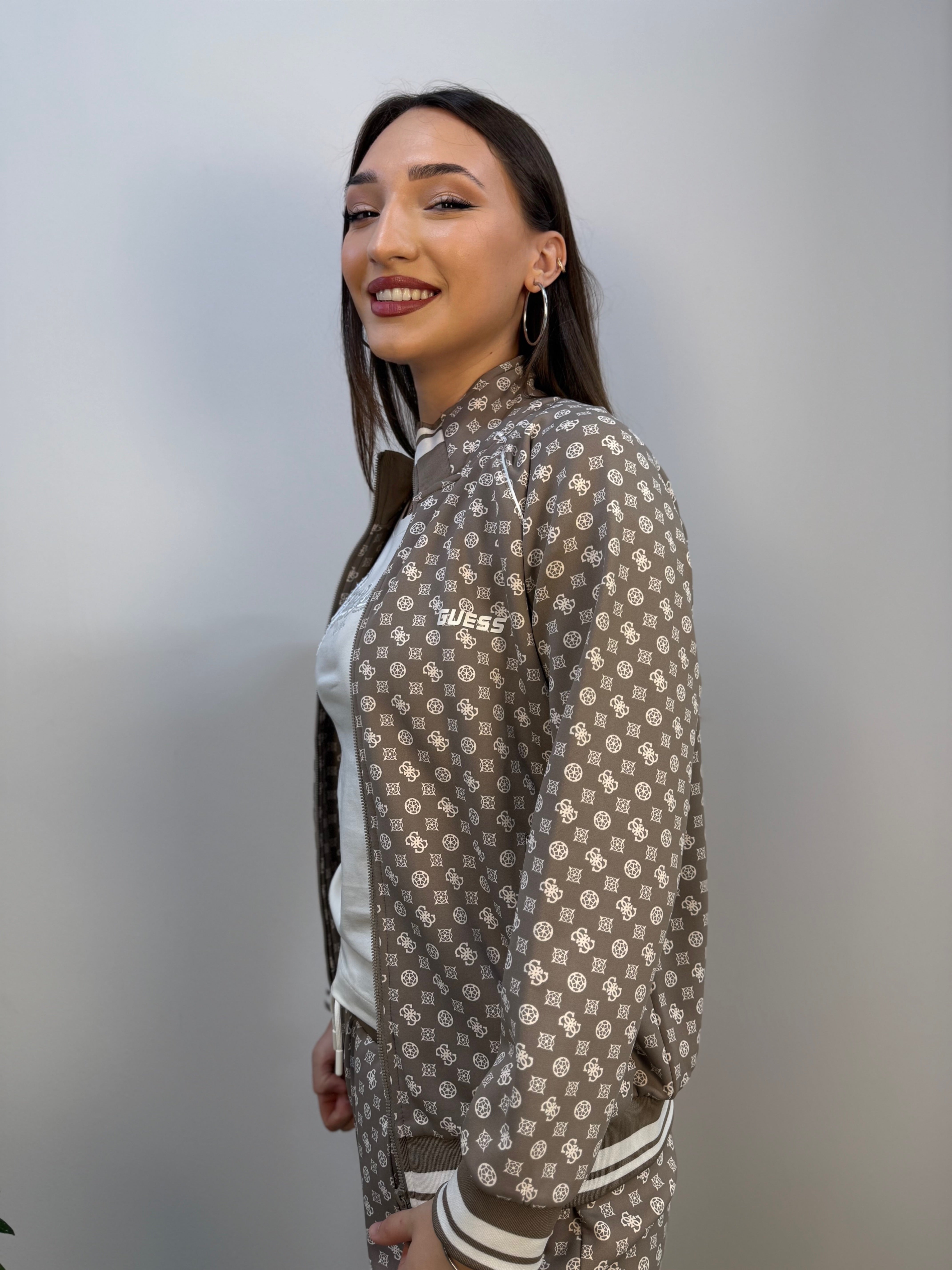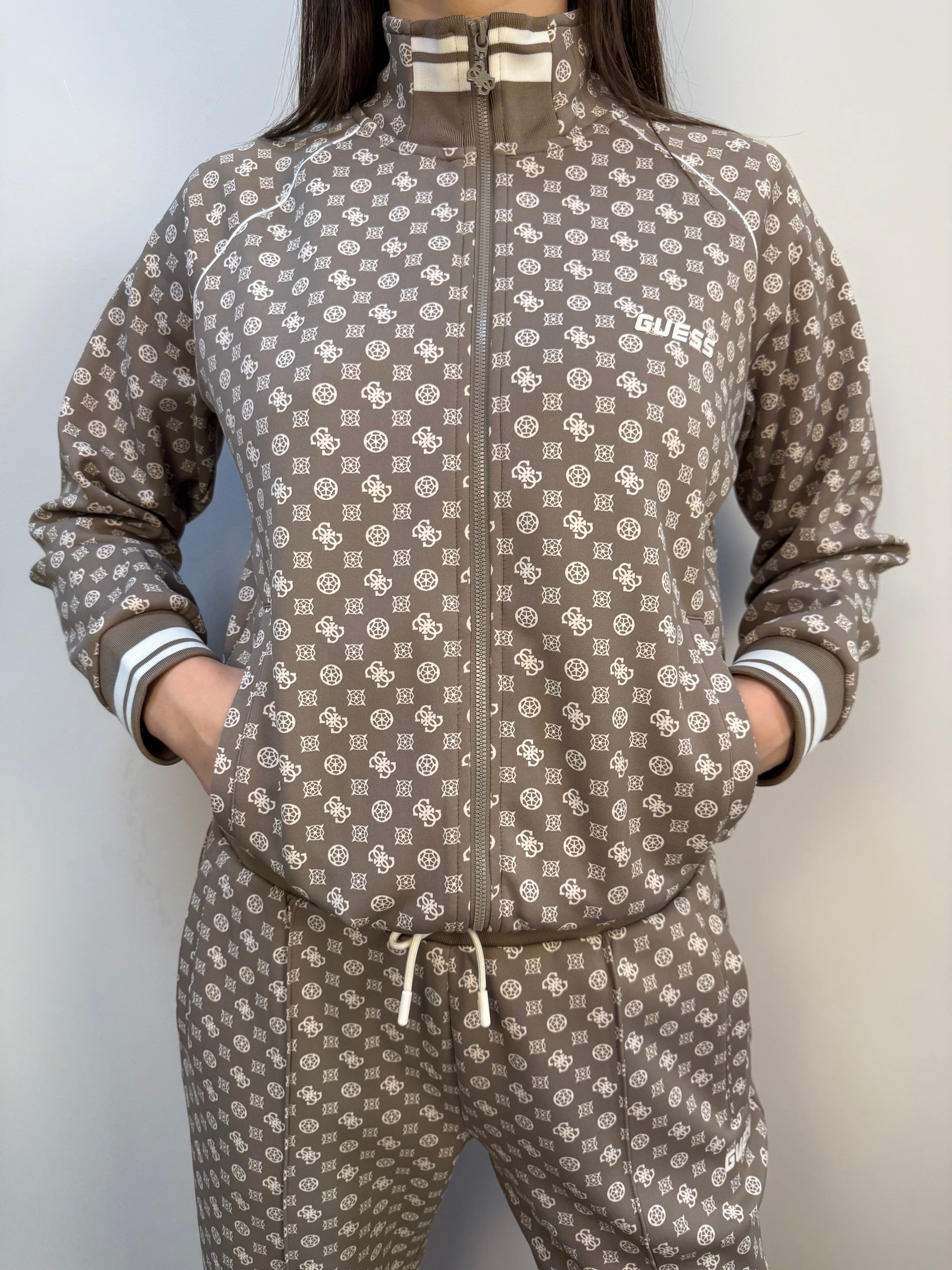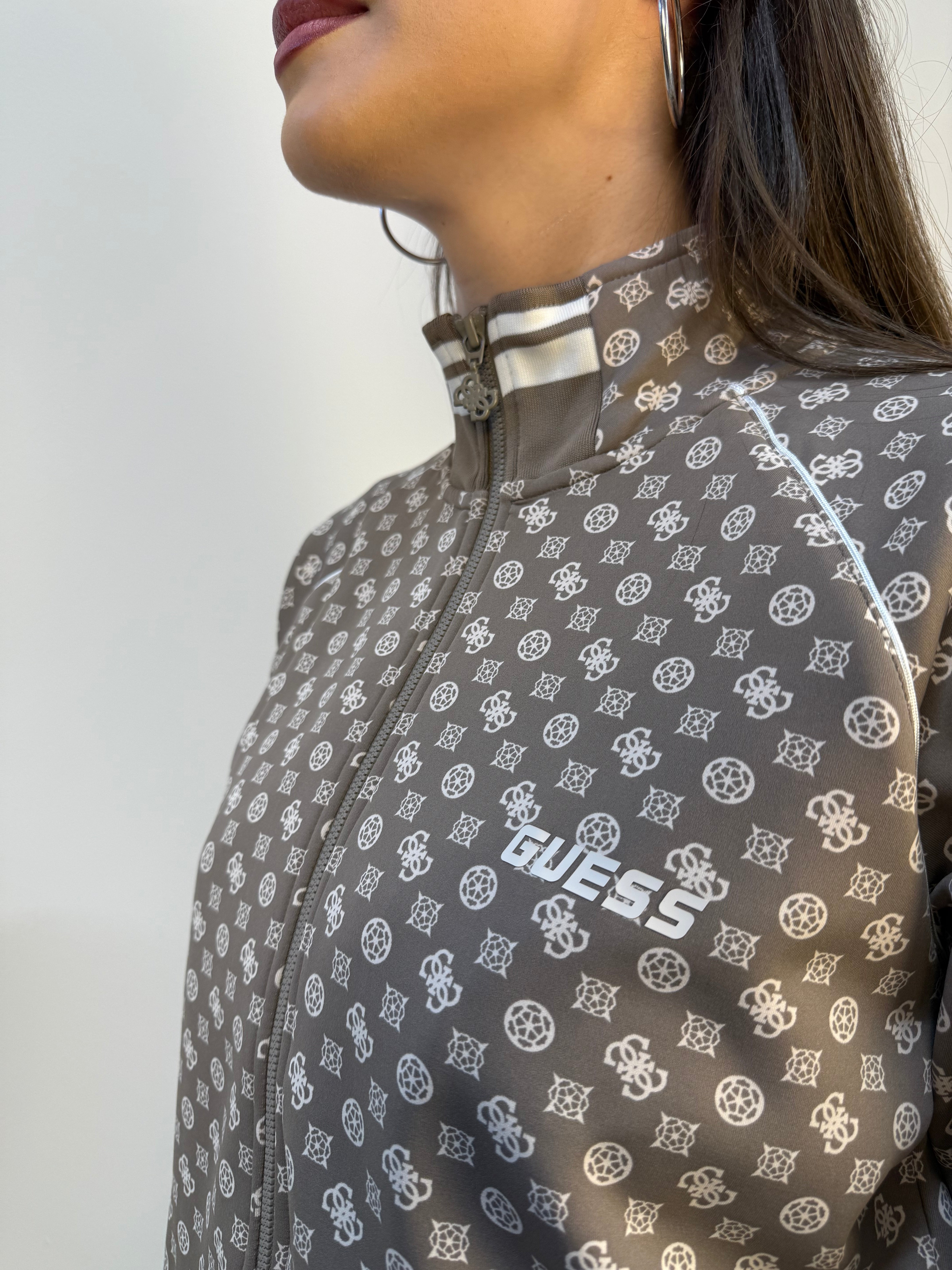 Scopri uno stile sportivo e sofisticato con questa felpa Guess in tessuto scuba stretch, pensata per unire comfort e carattere. Il design è reso unico dalle righe orizzontali presenti su polsini, fondo e collo a lupetto, che conferiscono un tocco grafico e moderno. Le maniche lunghe raglan con bordi a contrasto aggiungono un elemento dinamico e valorizzano la vestibilità, mentre la stampa all over con logo 4G e peony definisce il look con personalità. Completano il design un logo in gomma applicato sul cuore, per una firma discreta ma distintiva, e una chiusura frontale con zip a tutta lunghezza, che rende il capo pratico e versatile. Ideale per il tempo libero o per un weekend all’insegna del relax e dello stile, è perfetta da abbinare a pantaloni coordinati per un total look di forte impatto.
