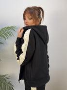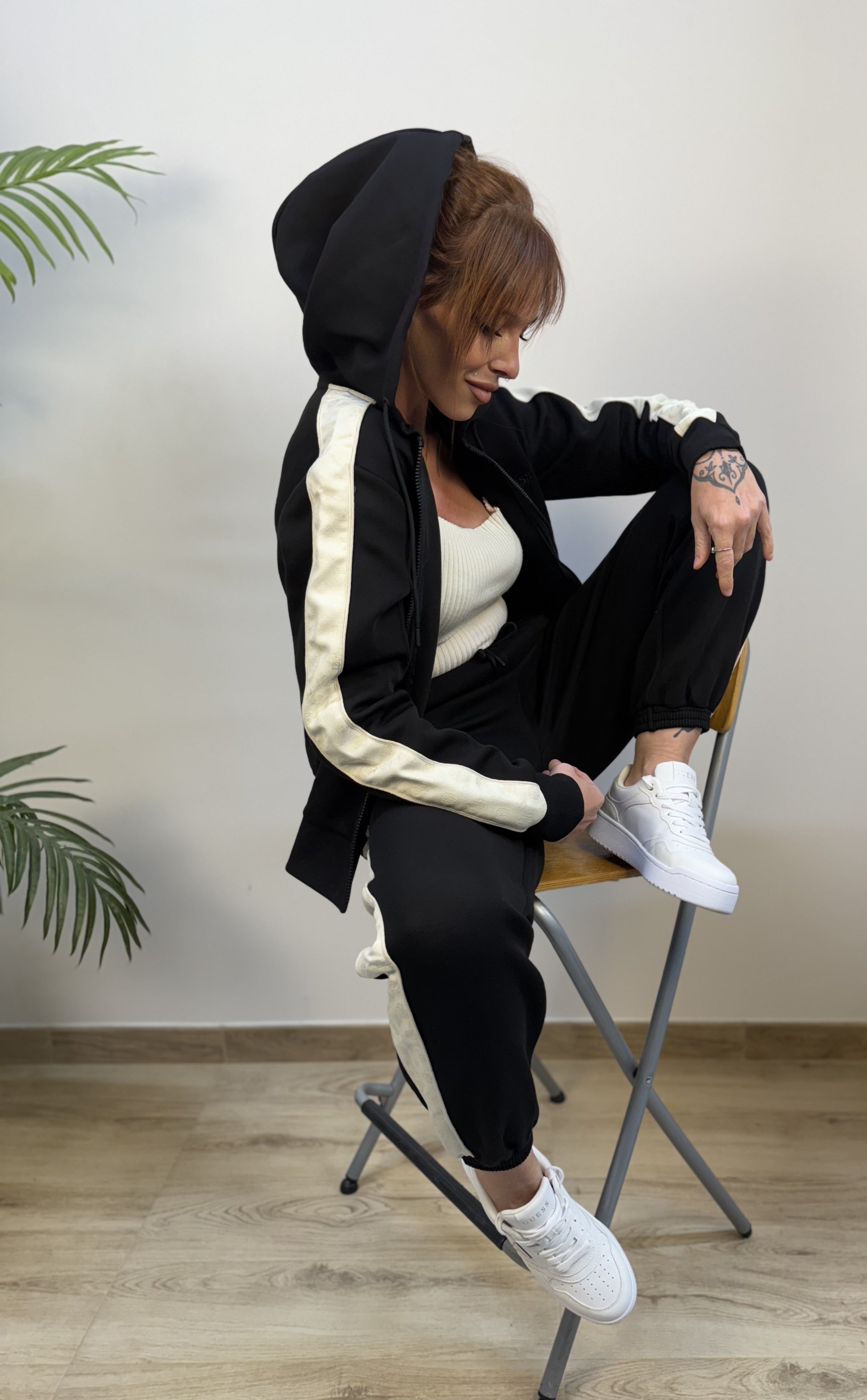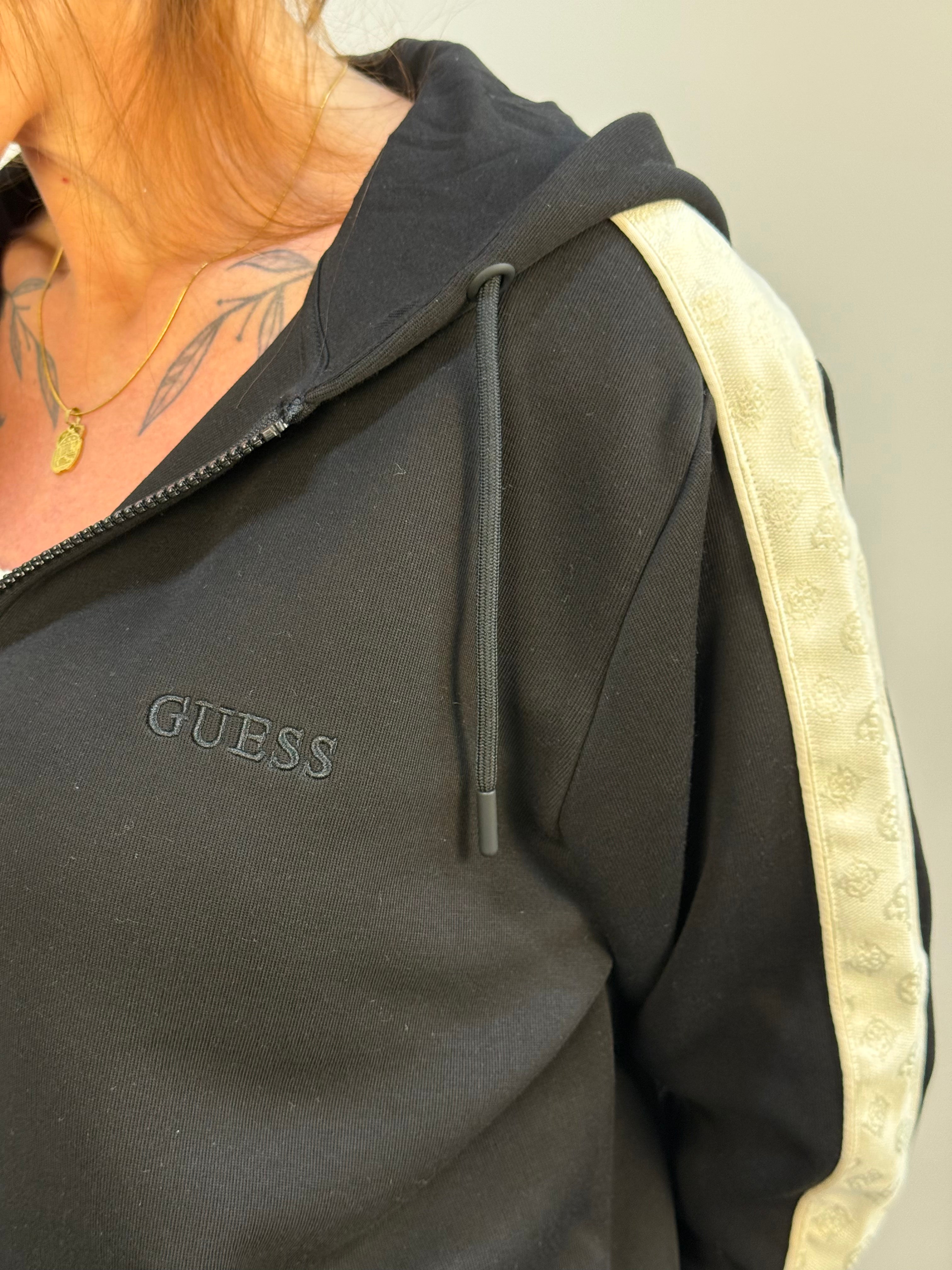Felpa GUESS con zip e cappuccio, banda laterale sulle braccia logata tono su tono.