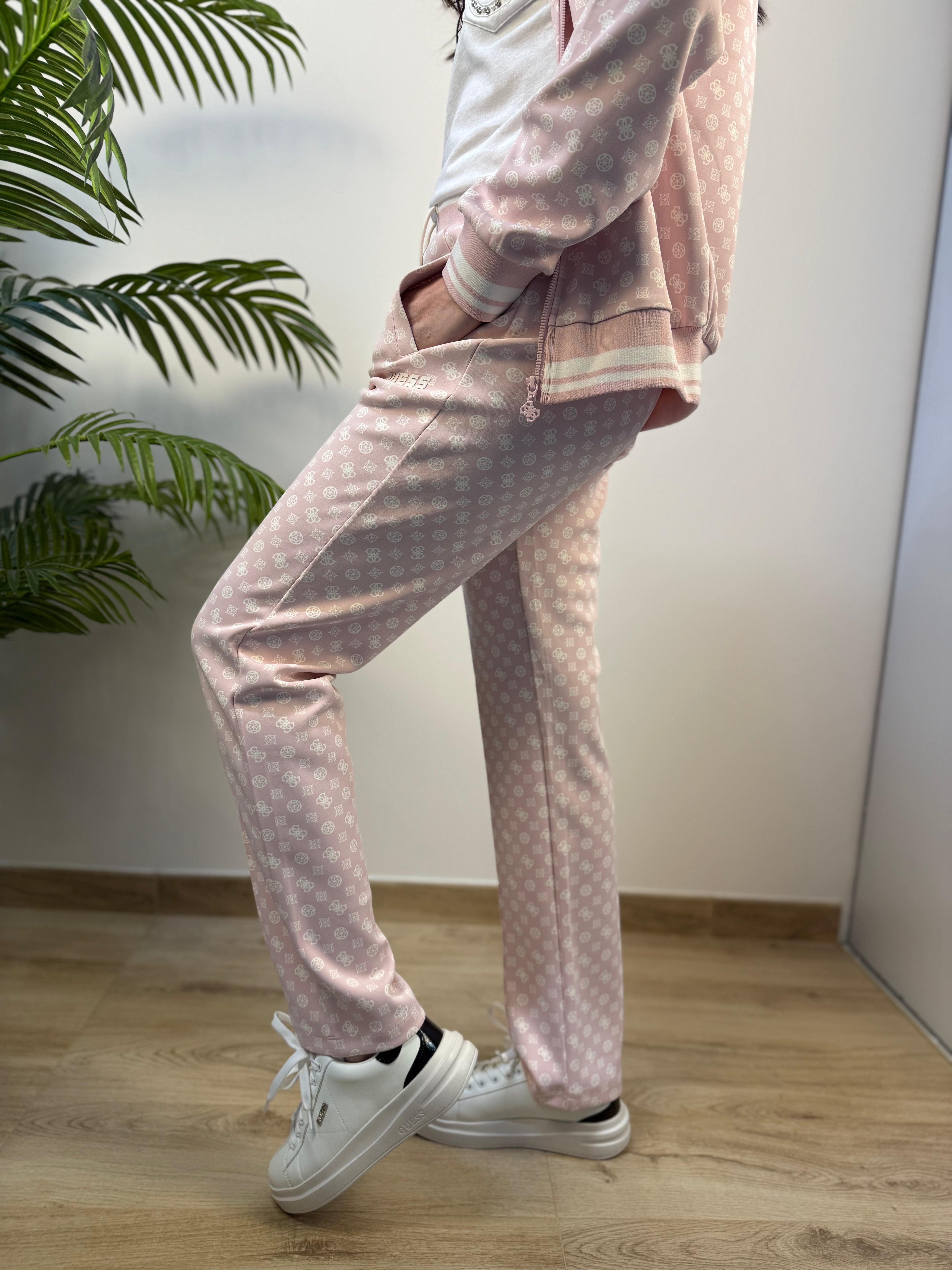 Pantalone GUESS in scuba a gamba dritta logo 4G e coulisse in vita.