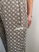 Scopri lo stile audace e confortevole di questi pantaloni Guess sportivi in tessuto scuba stretch. La vestibilità regular assicura massima libertà di movimento, mentre la stampa all over con logo peony e motivo 4G dona un tocco distintivo e iconico. Le tasche frontali oblique aggiungono funzionalità, mentre la vita elasticizzata a righe con chiusura a coulisse garantisce un fit personalizzato. Un logo in gomma applicato sulla coscia firma il capo con discrezione, mentre la cucitura in rilievo lungo la gamba enfatizza la linea e aggiunge un dettaglio sartoriale a un look sportivo. Ideali per il tempo libero o per un outfit casual da giorno, questi pantaloni uniscono comfort, stile e cura per i dettagli.
