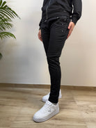 Pantalone Exsy in tuta dalla vestibilità molto aderente, pensato per valorizzare la silhouette senza rinunciare al comfort. Realizzato in tessuto felpato all’interno, offre morbidezza e calore ideali per la stagione più fresca. Il modello presenta una coulisse regolabile in vita, due tasche frontali e un risvoltino cucito a fondo gamba che aggiunge un tocco curato e contemporaneo. I dettagli di strass applicati sulle tasche impreziosiscono il design, donando un’eleganza luminosa perfetta per uno stile sporty-chic.