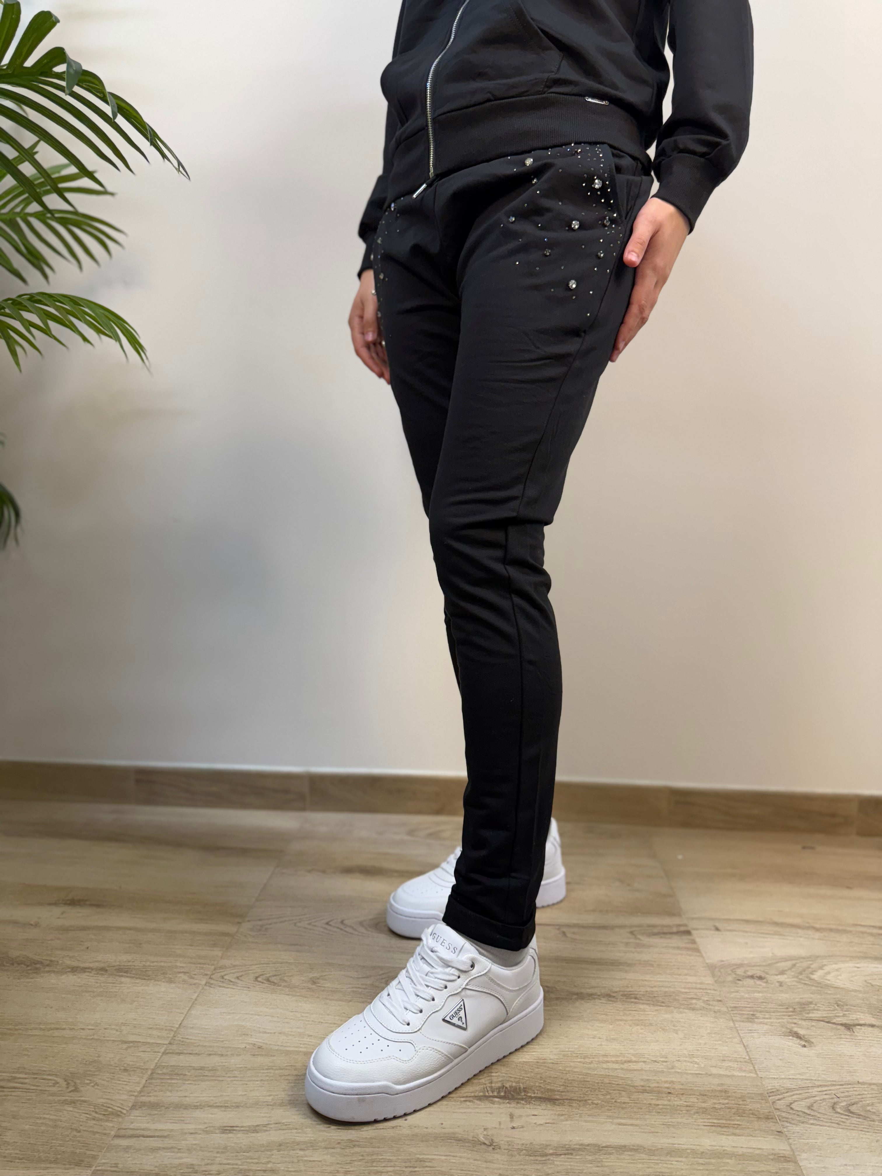 Pantalone in tuta felpato con dettaglio strass sulle tasche