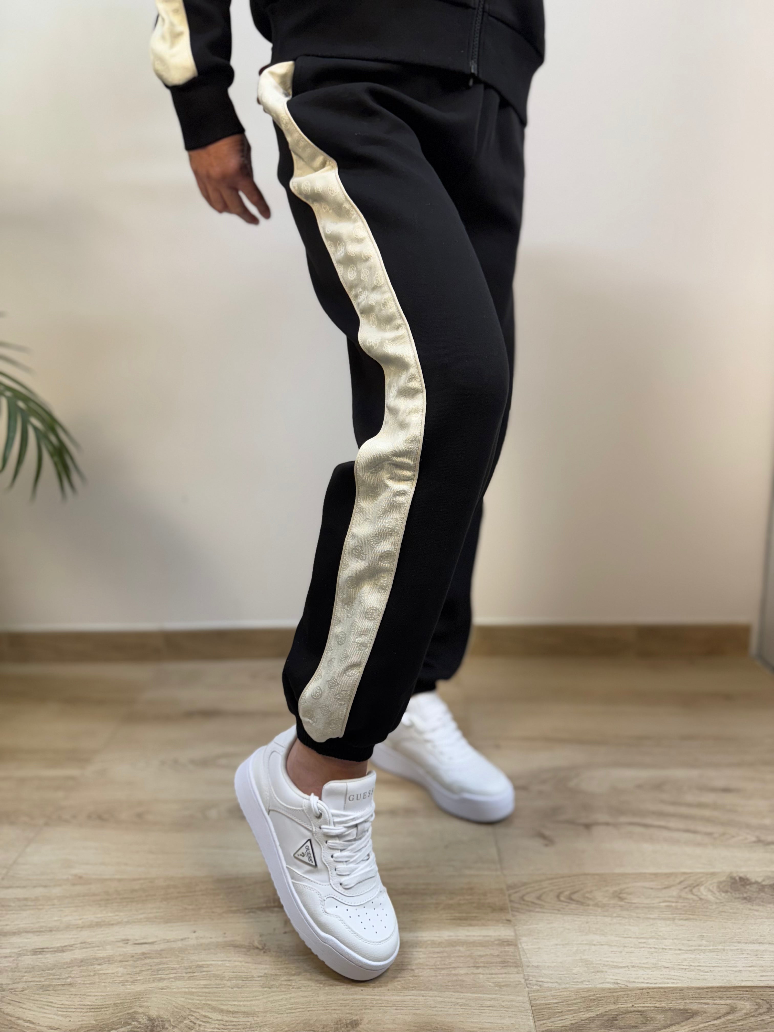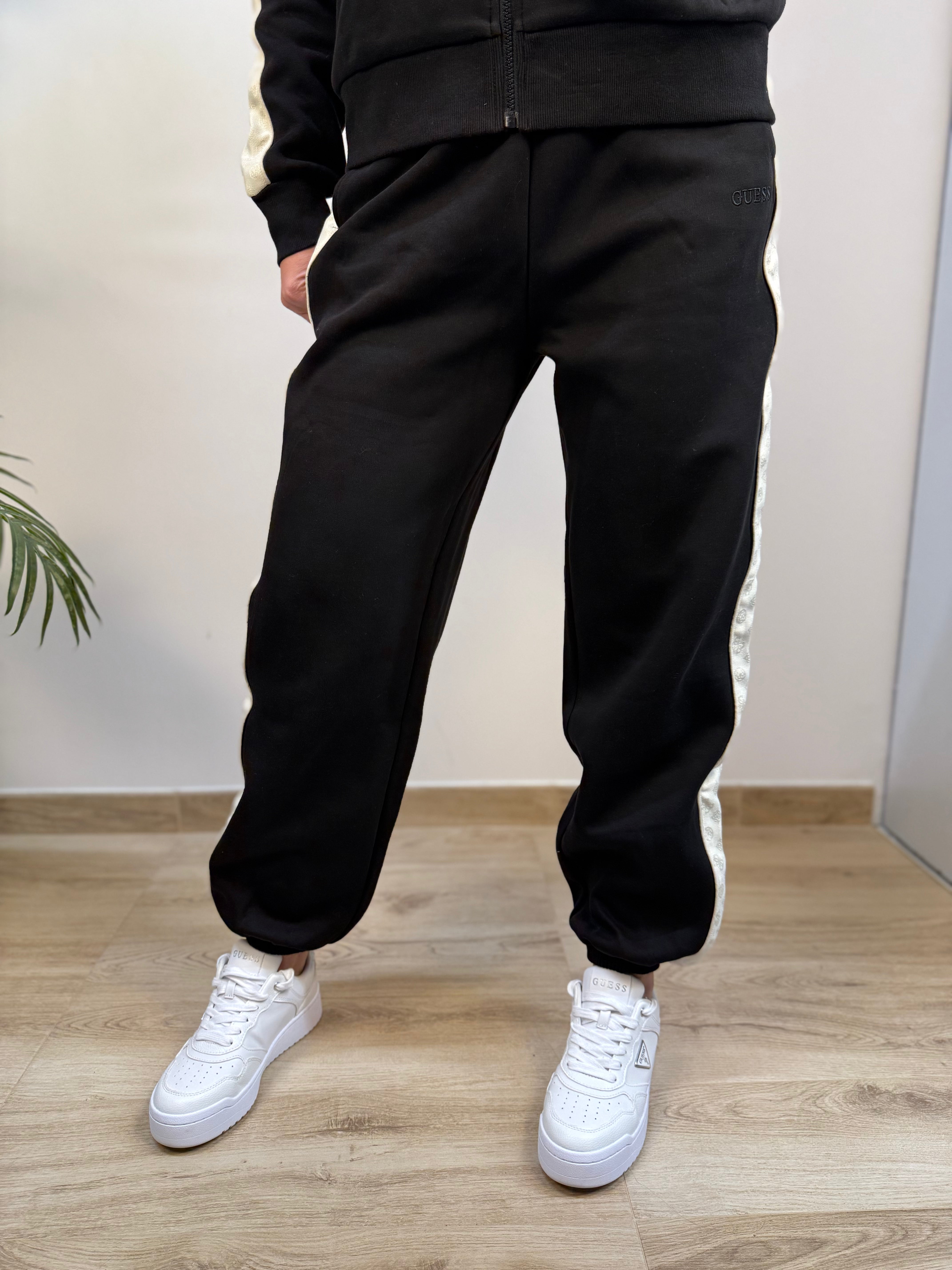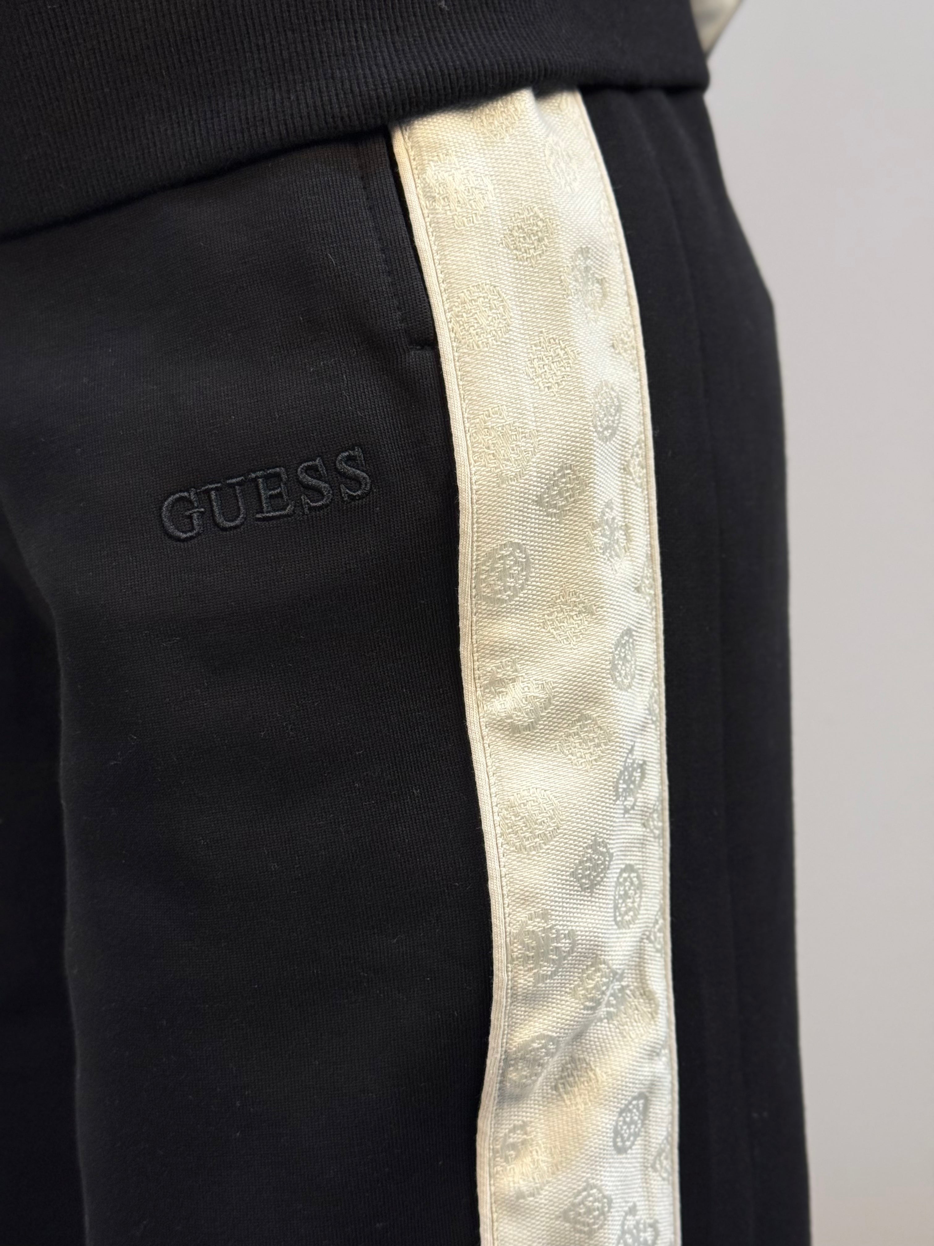 Pantalone tuta GUESS, felpato, con polsino in caviglia e coulisse in vita. Banda laterale logata a contrasto tono su tono in beige. In dettaglio, piccolo logo scritto tono su tono in rilievo sulla coscia.