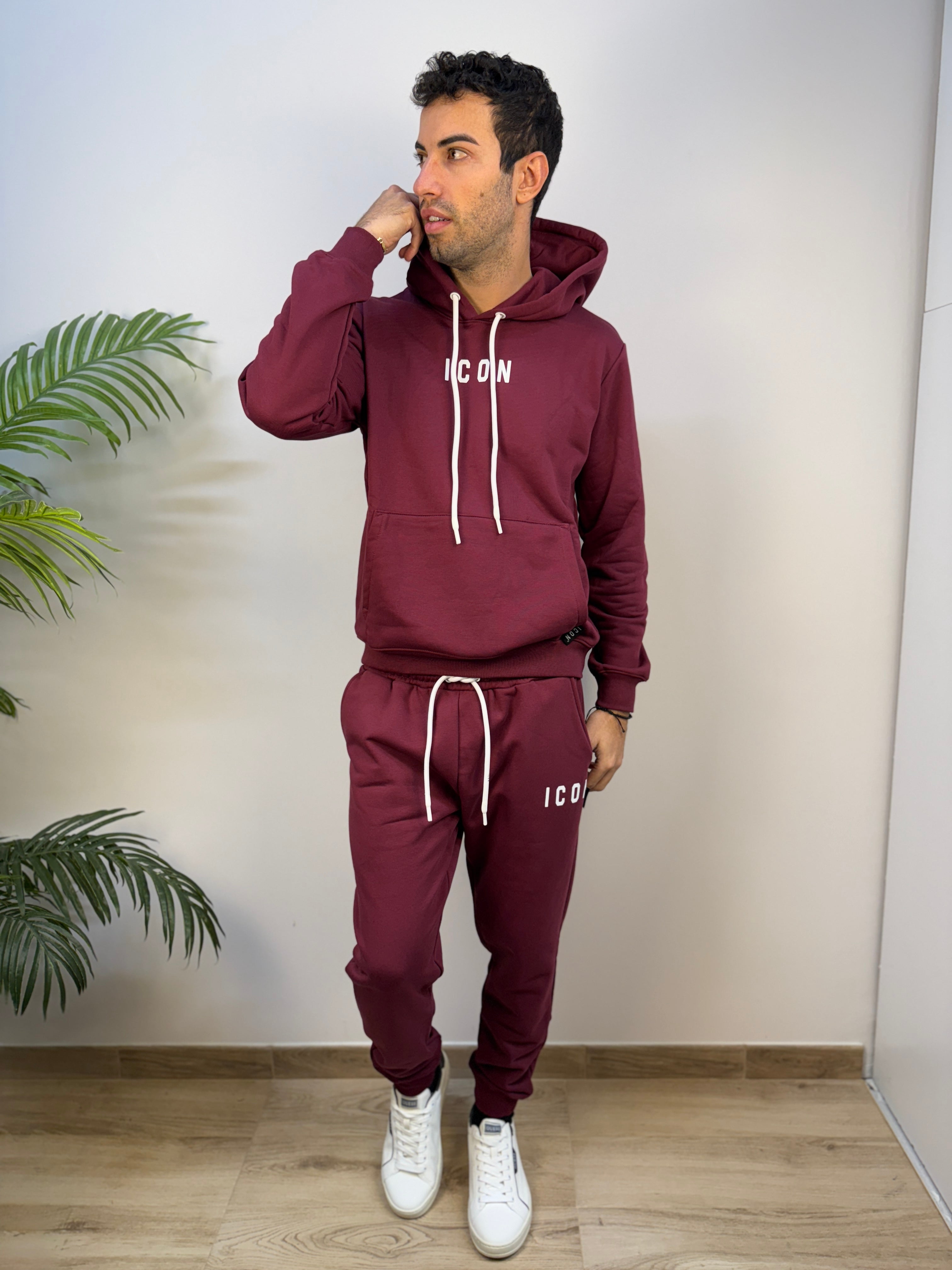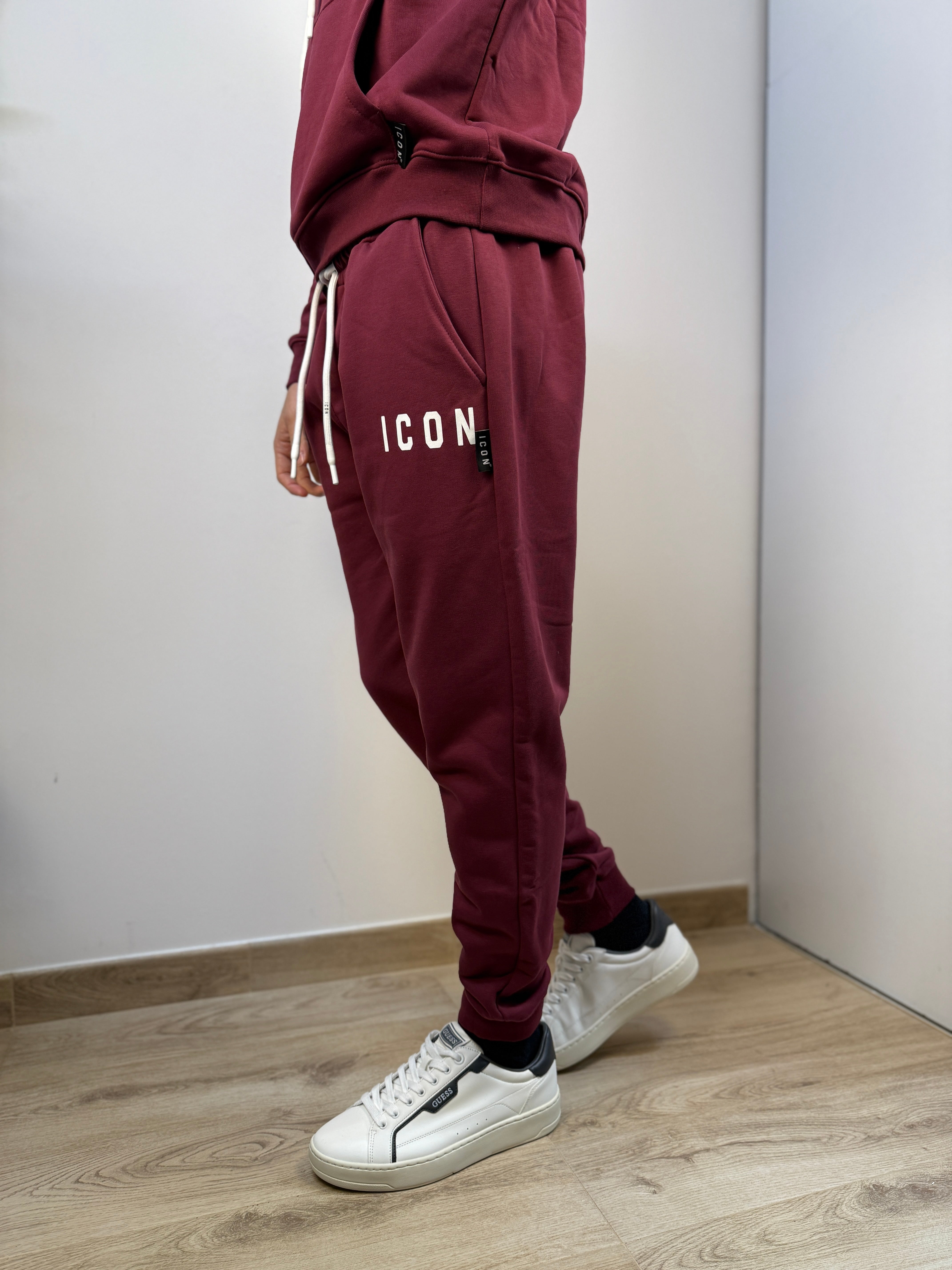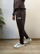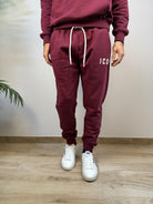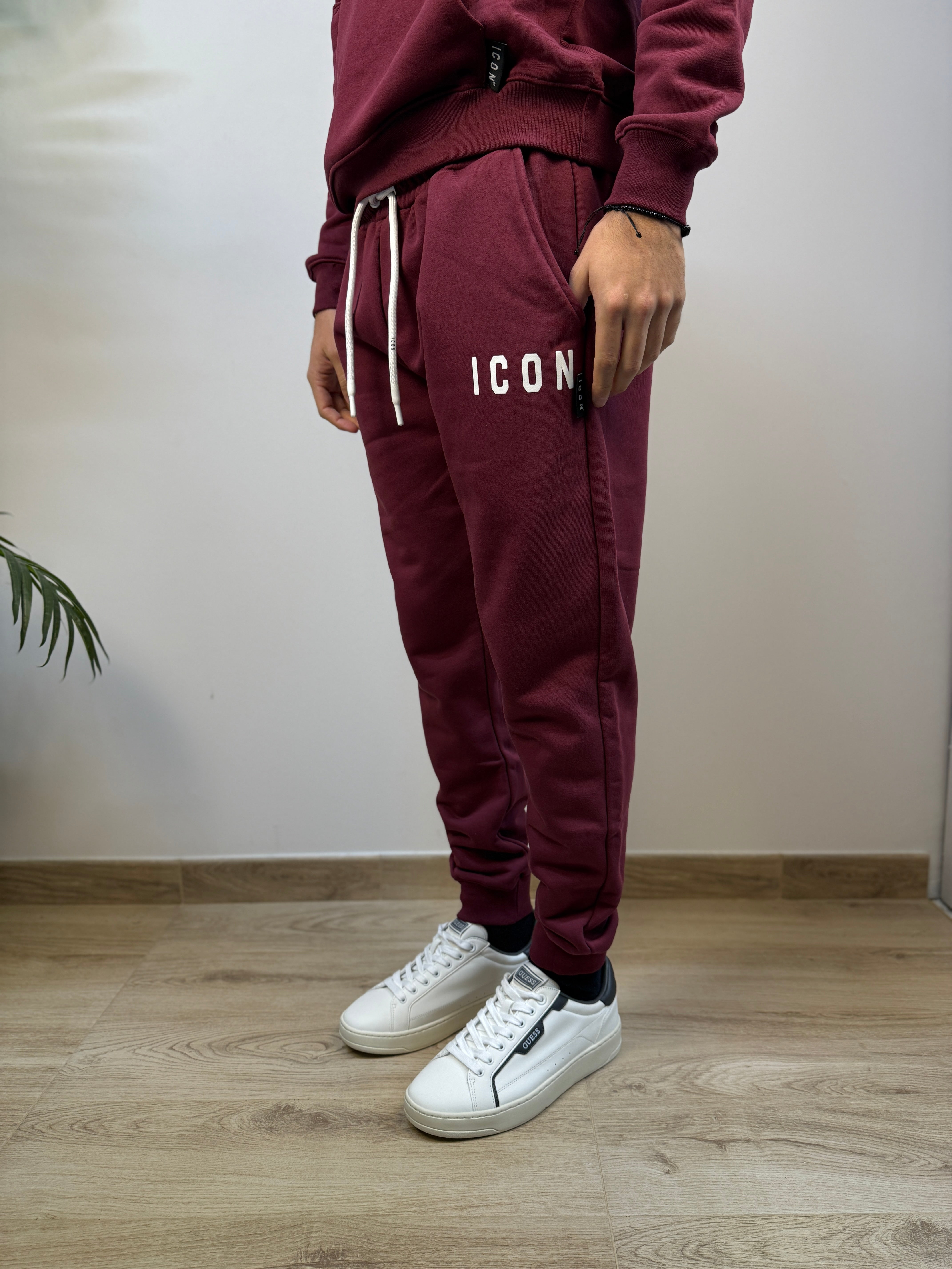 Pantalone jogger ICON dal taglio moderno e confortevole, disponibile in diverse colorazioni per adattarsi a ogni stile. Realizzato in un tessuto morbido e caldo con interno felpato, offre una piacevole sensazione di comfort durante tutta la giornata. La coulisse regolabile in vita, con lacci bianchi logati, consente una vestibilità personalizzabile, mentre i polsini a costine sul fondo gamba assicurano una linea pulita e sportiva. Le tasche a filo aggiungono praticità e discrezione. Completa il design la stampa logata bianca sulla coscia, dal tratto delicato ed elegante, che firma il capo con uno stile distintivo ma sobrio.