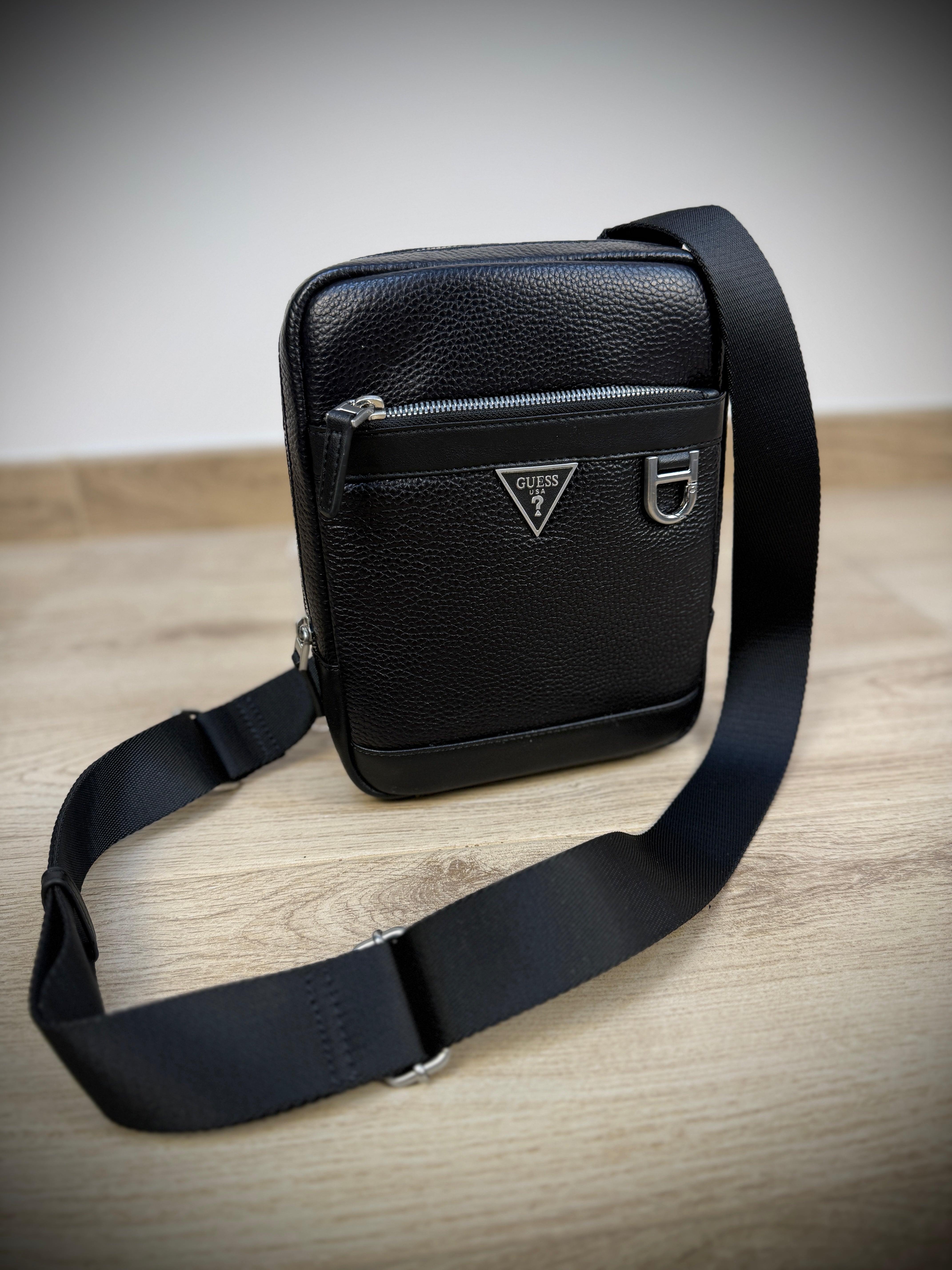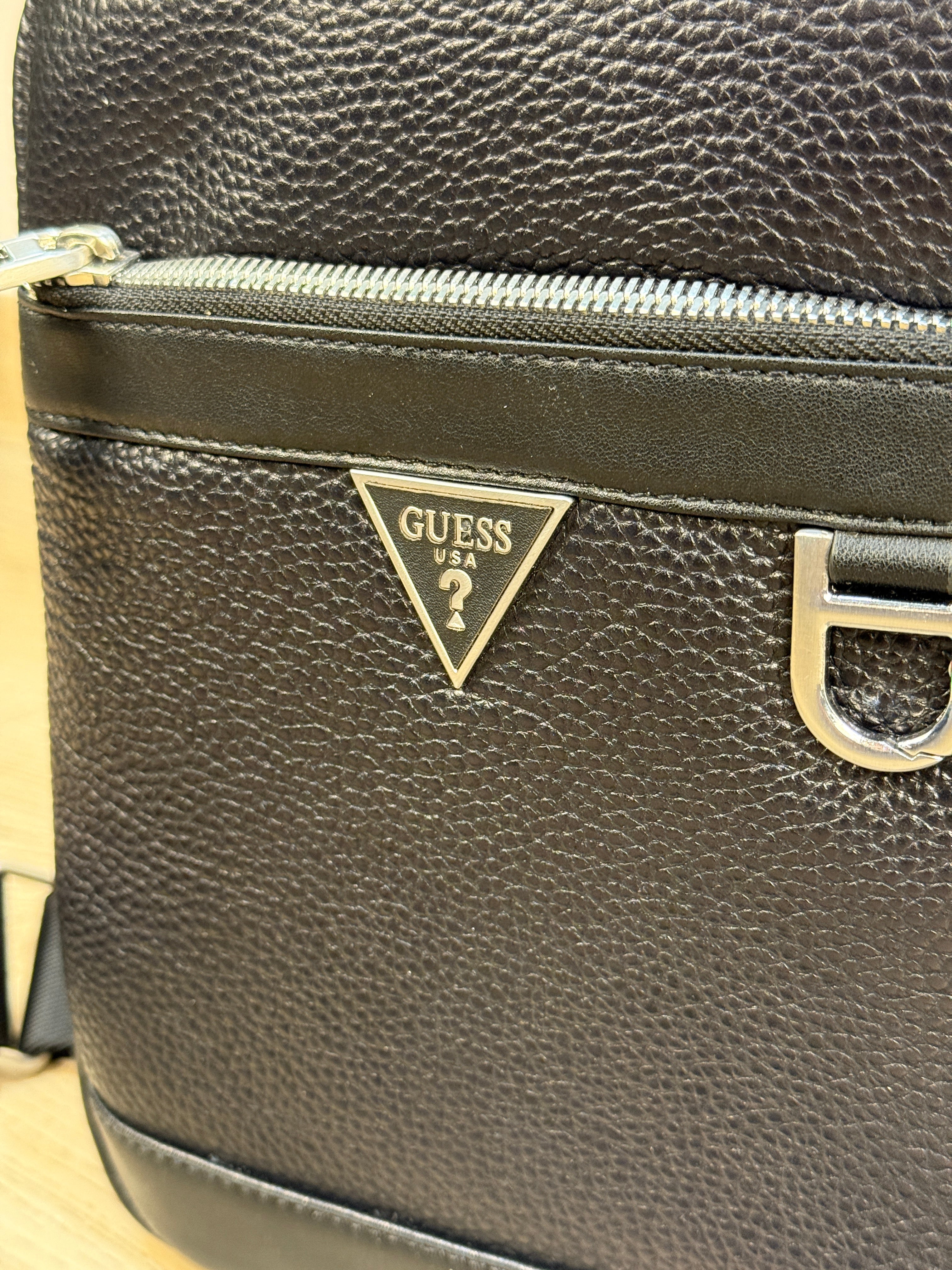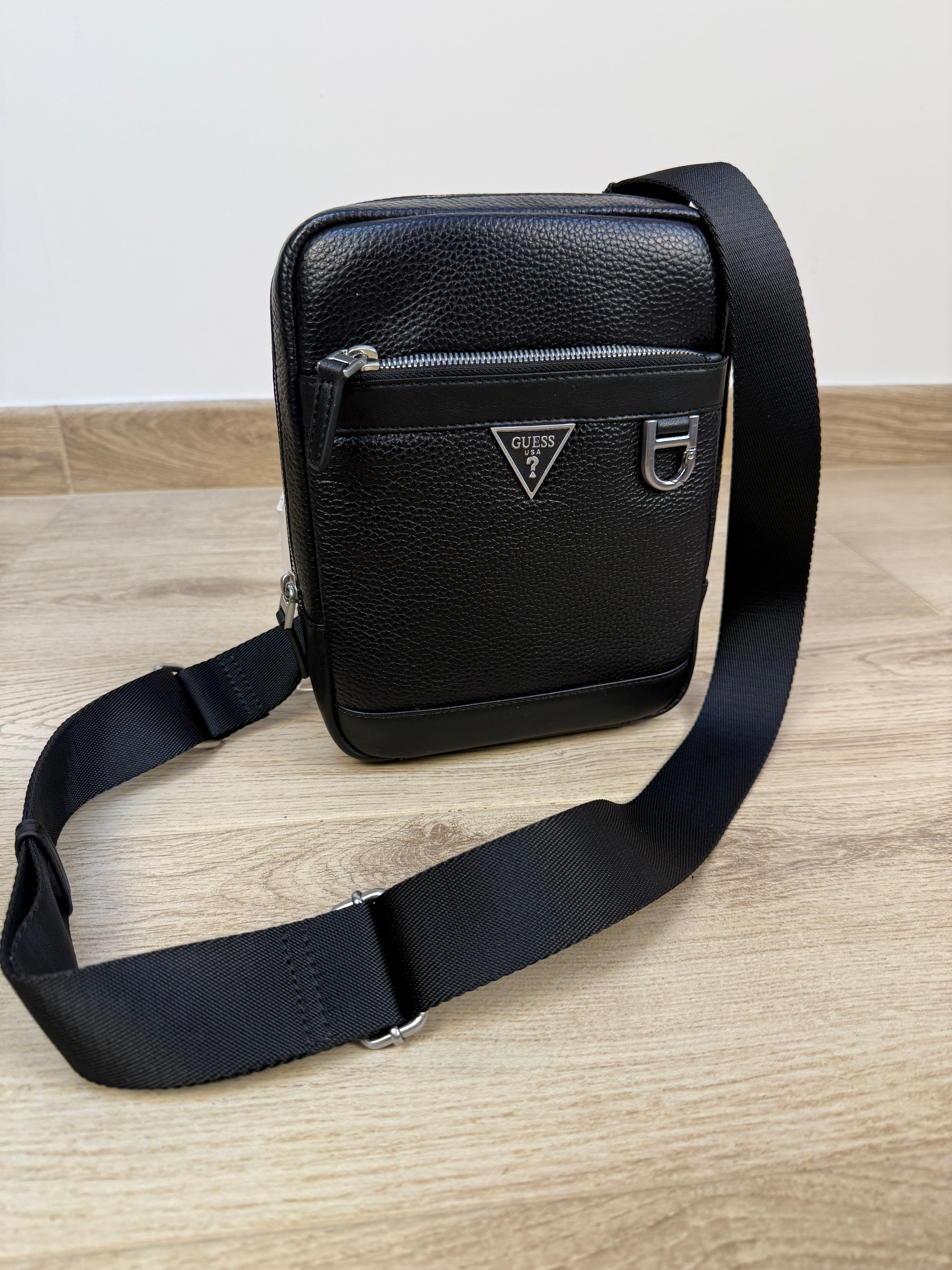 Borsello GUESS in similpelle con chiusura zip, tasca frontale e tracolla regolabile.