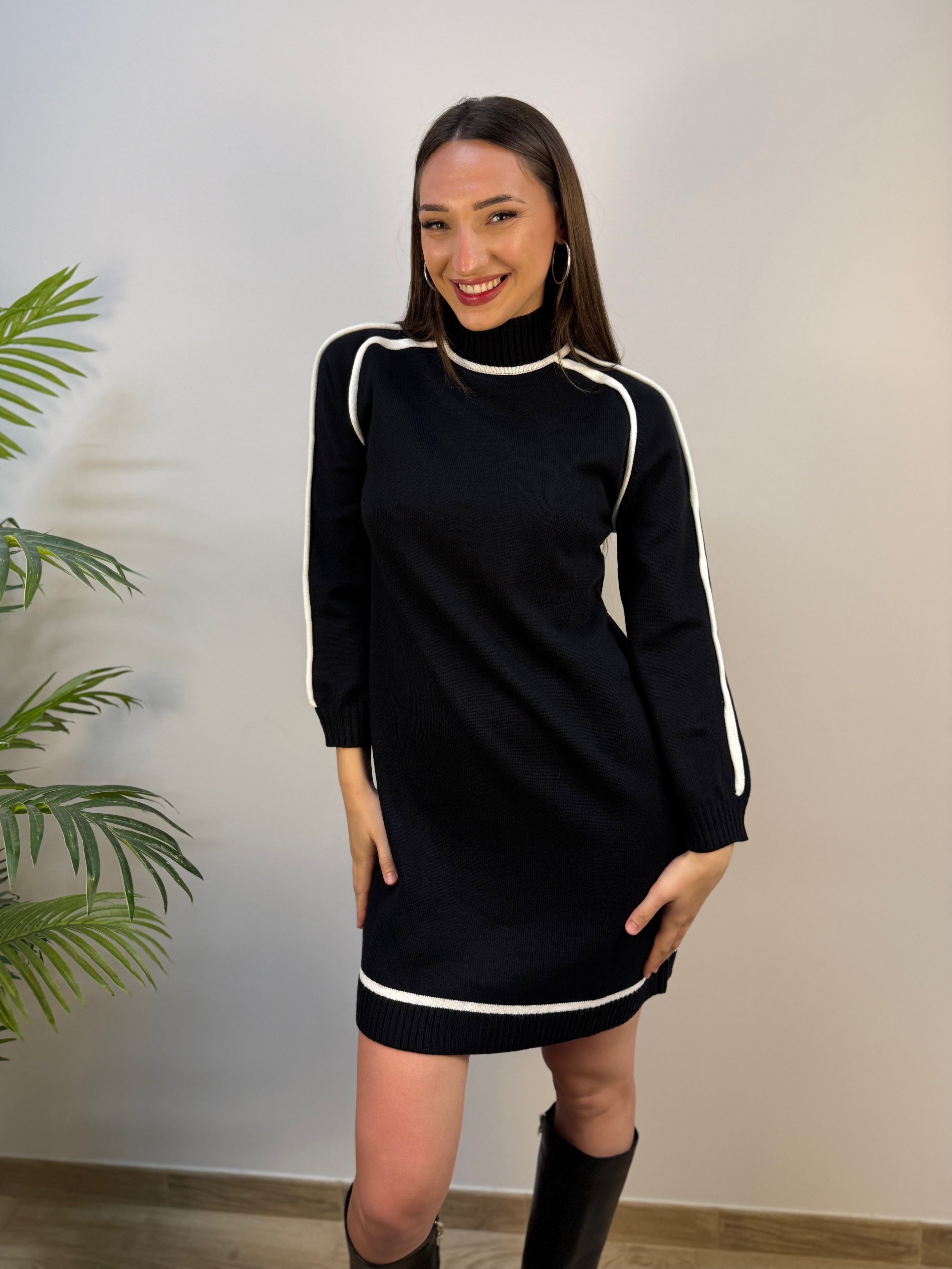 Abito in maglia con bordo a contrasto