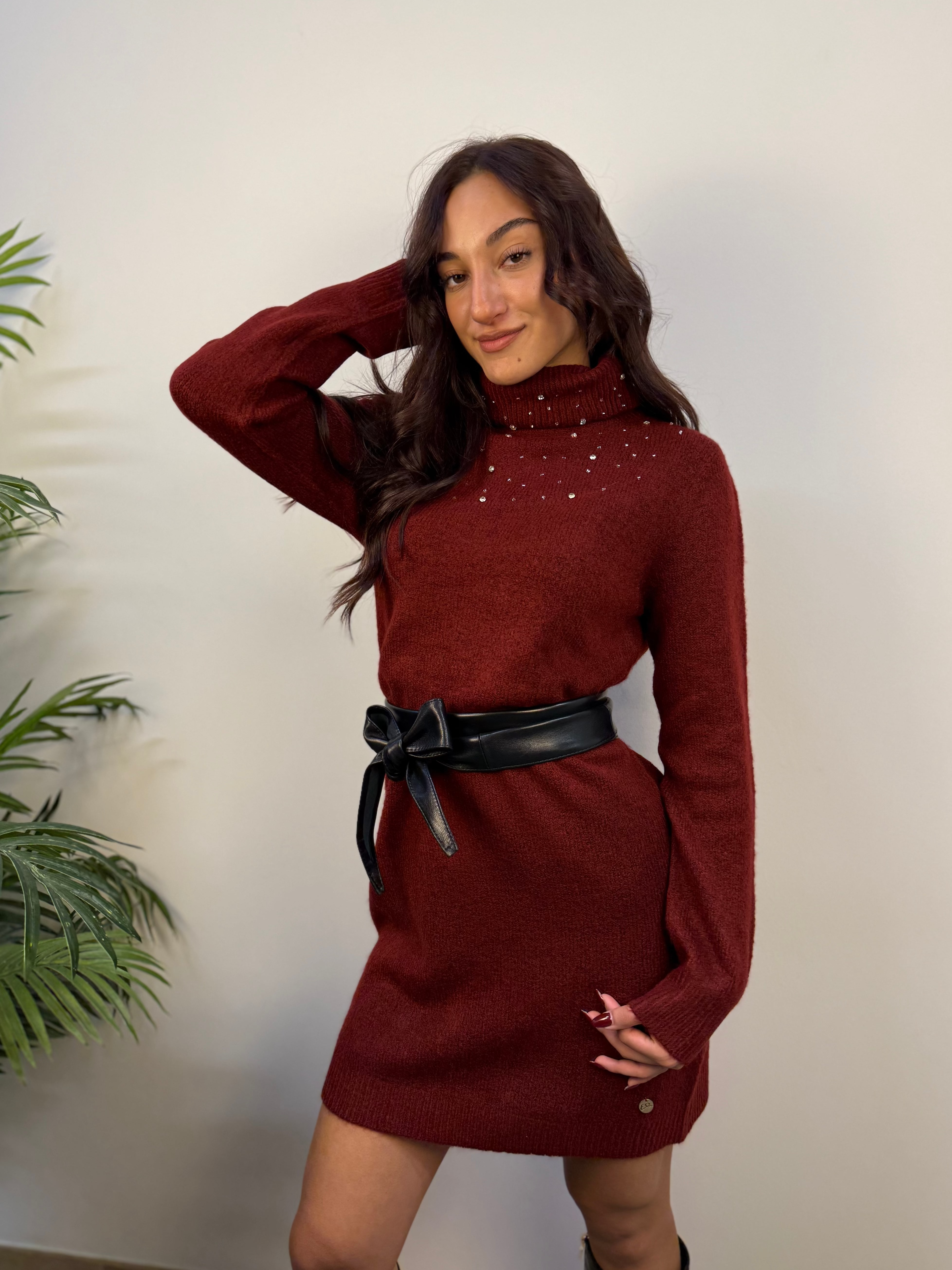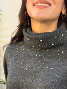 Il modello presenta un collo alto e dettagli luminosi grazie agli strass applicati su collo e spalle, che donano un tocco di eleganza e raffinatezza. Realizzato in un filato elasticizzato, caldo e morbido, è completato da fascione, collo e polsini a costine per una vestibilità perfetta e confortevole. Un capo femminile e sofisticato, ideale per la stagione fredda e perfetto per un look chic e luminoso.