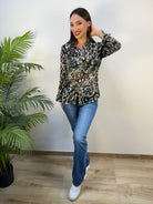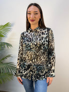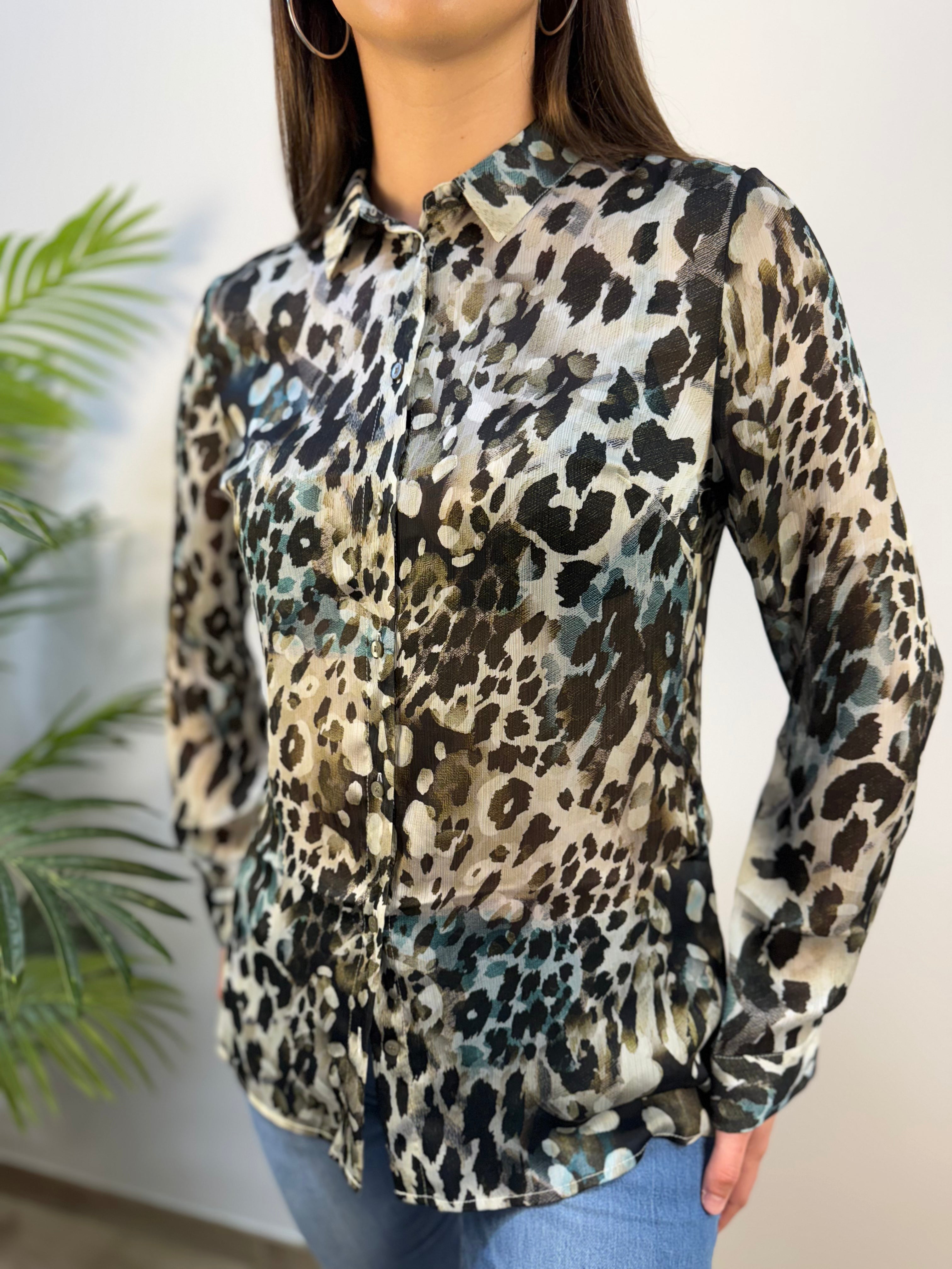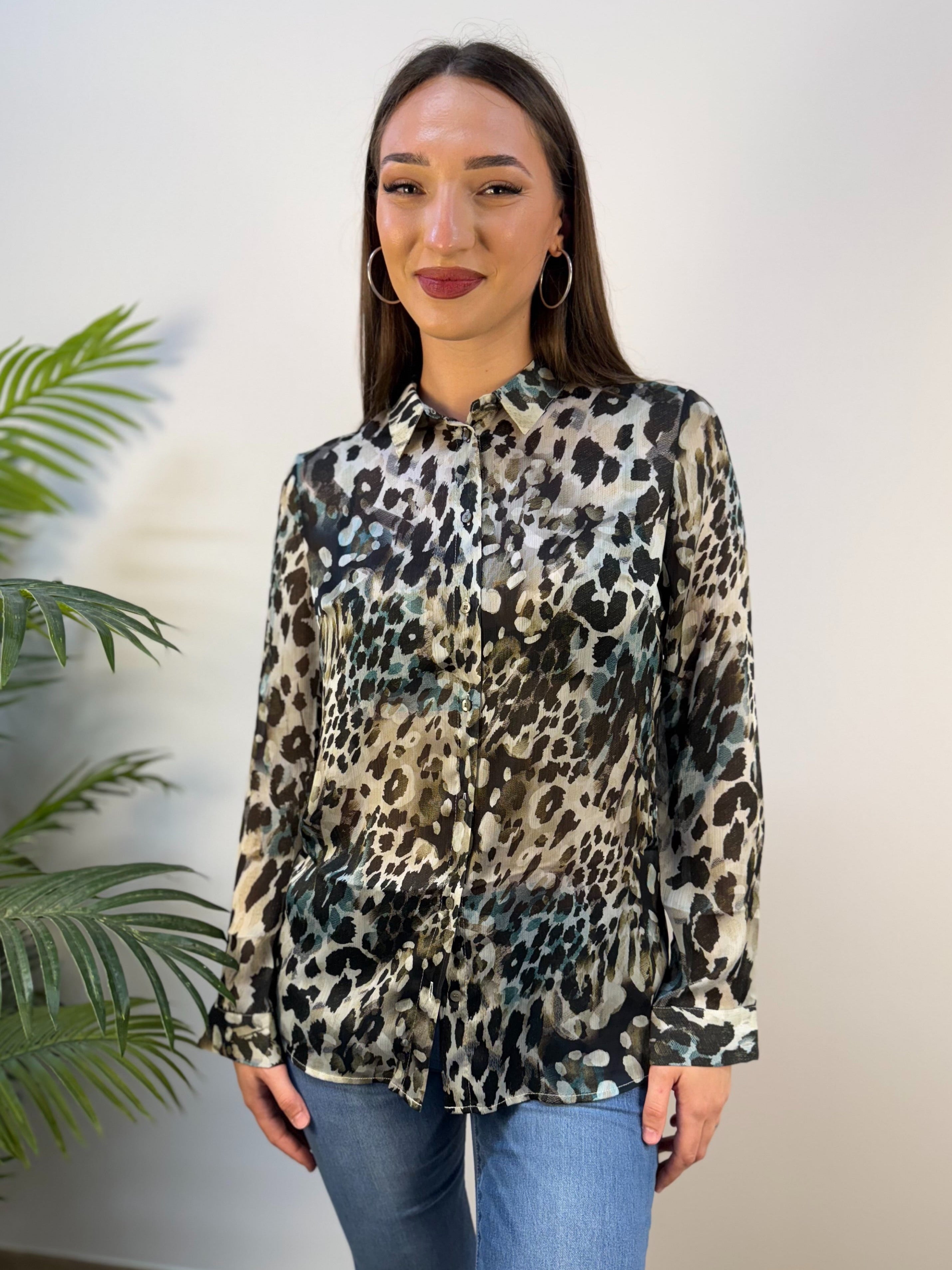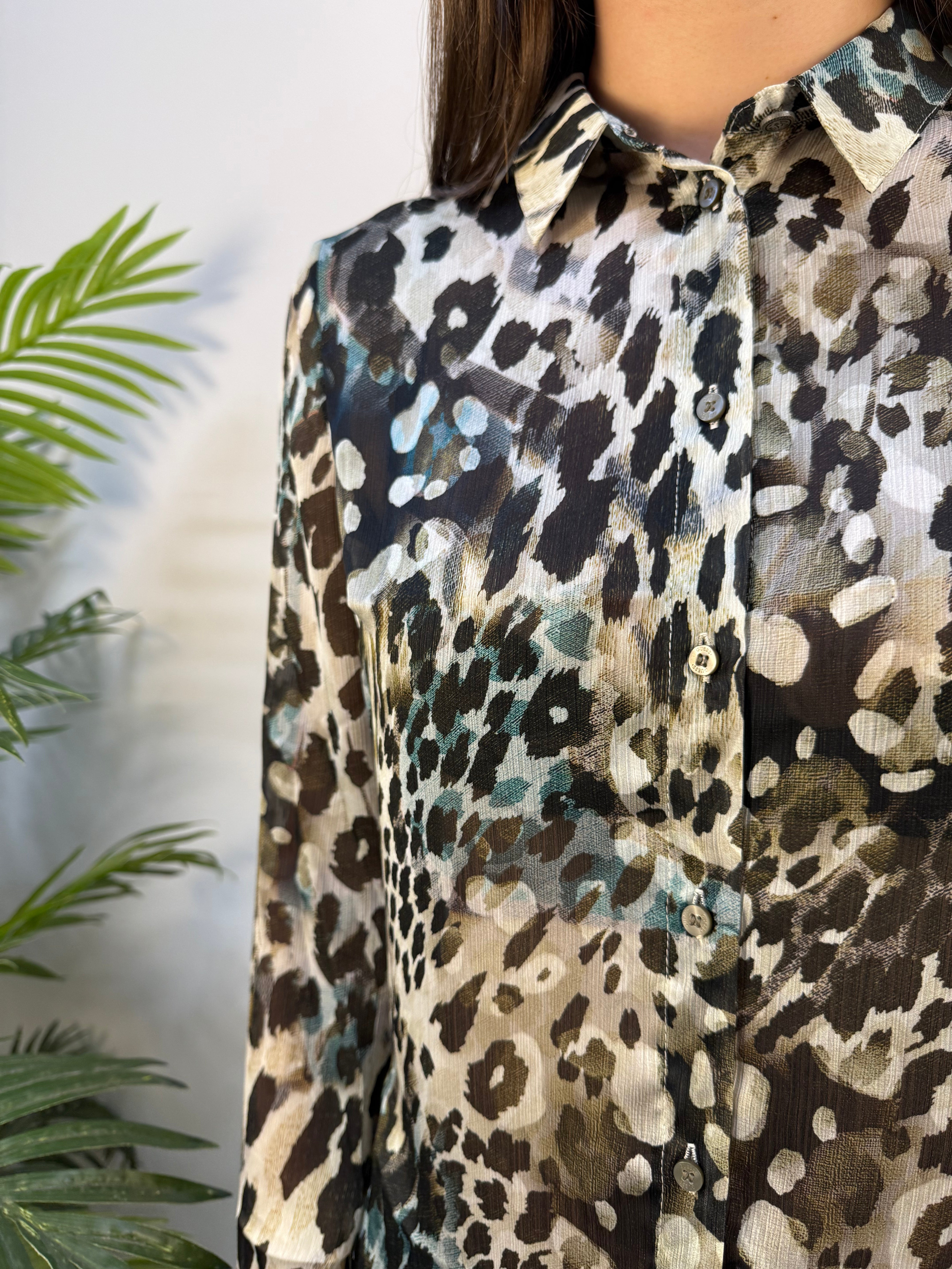 Camicia morbida in fantasia animalier con dettagli azzurri