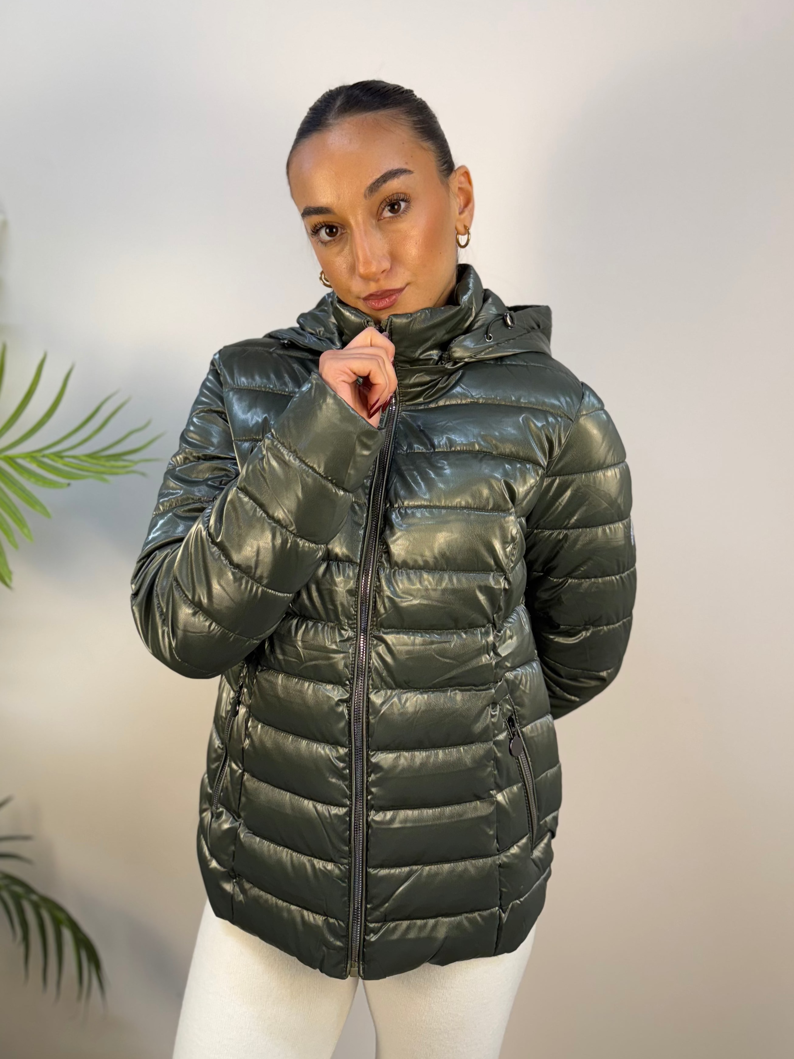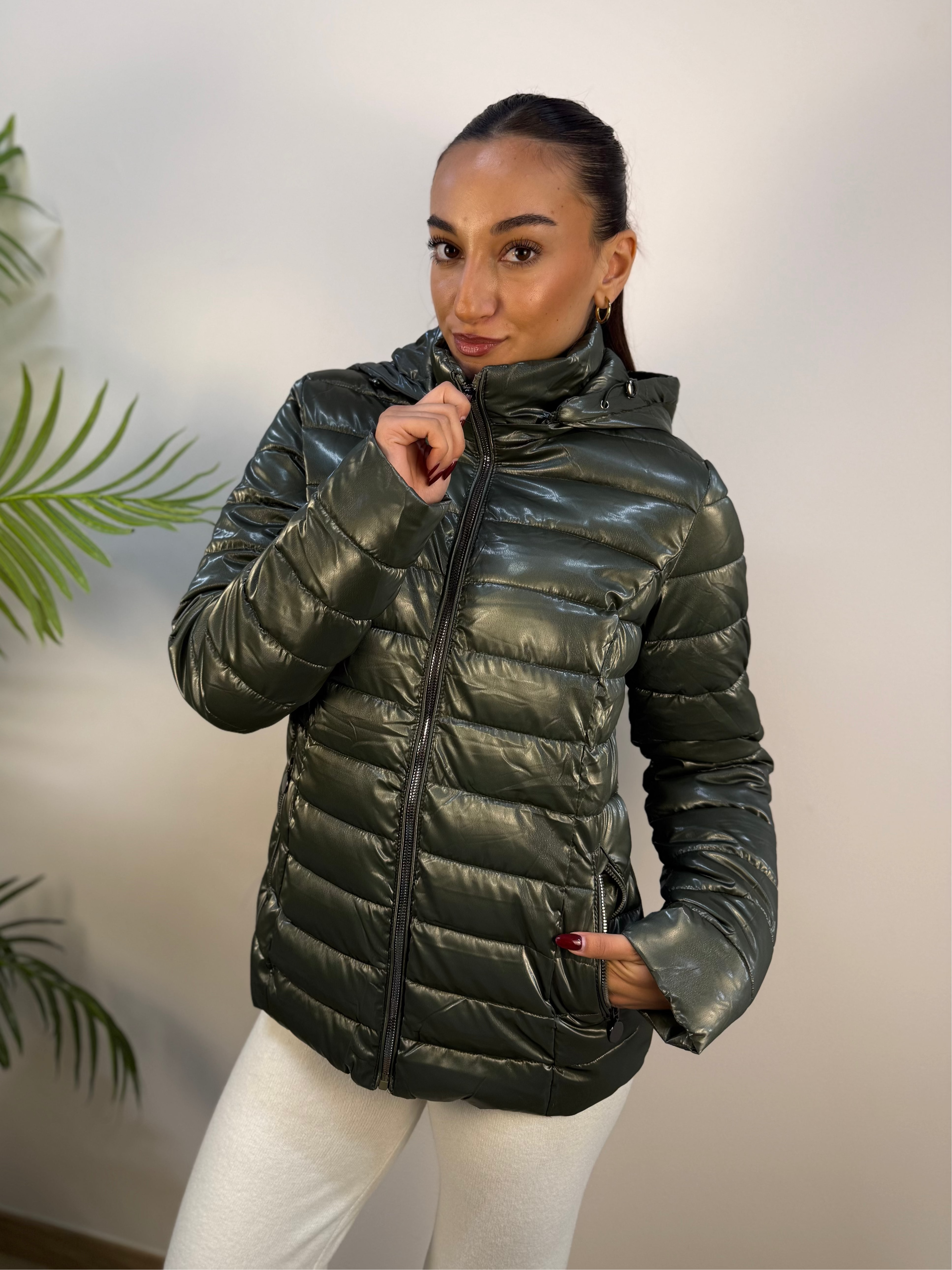 Piumino effetto lucido verde