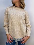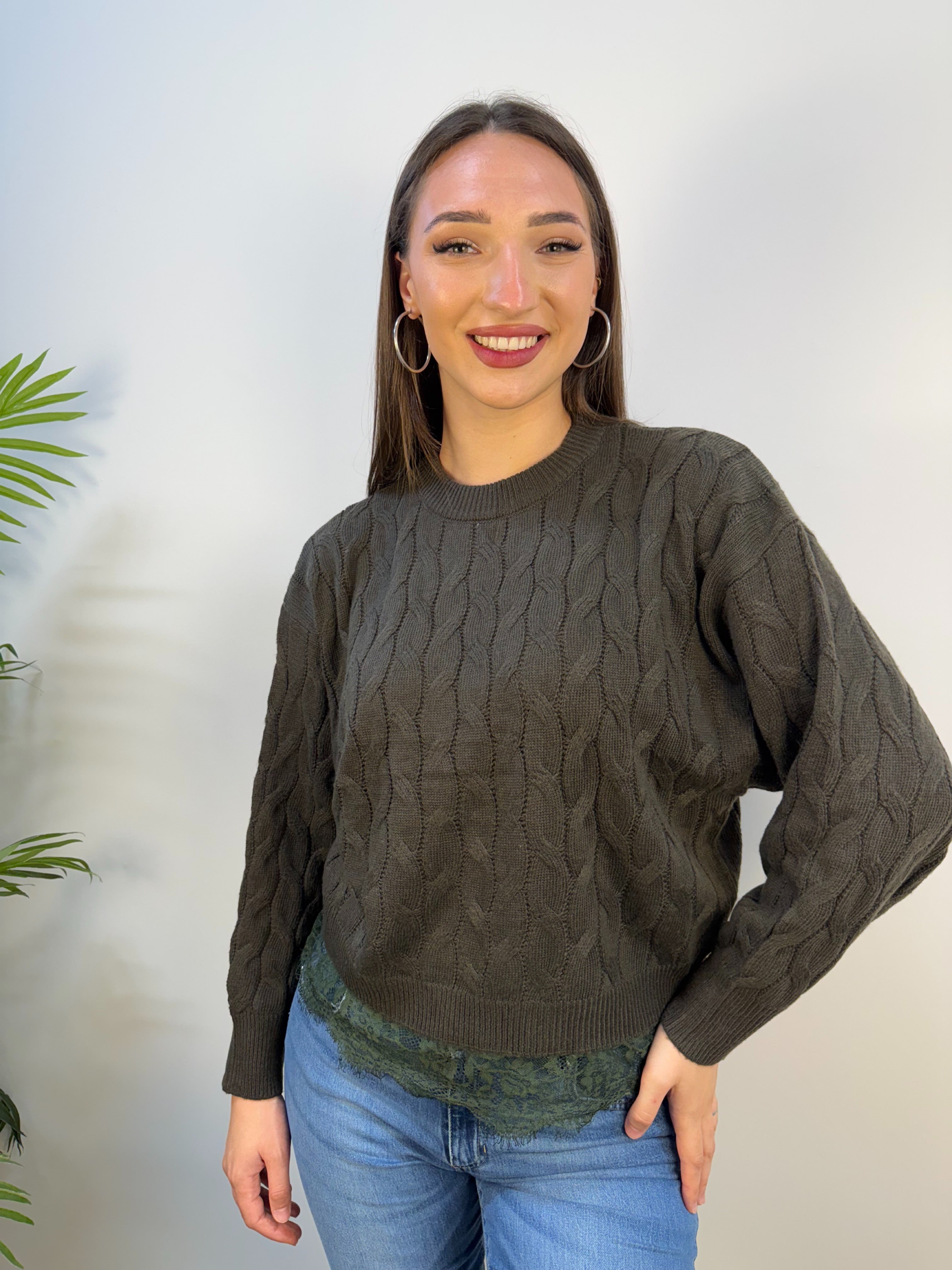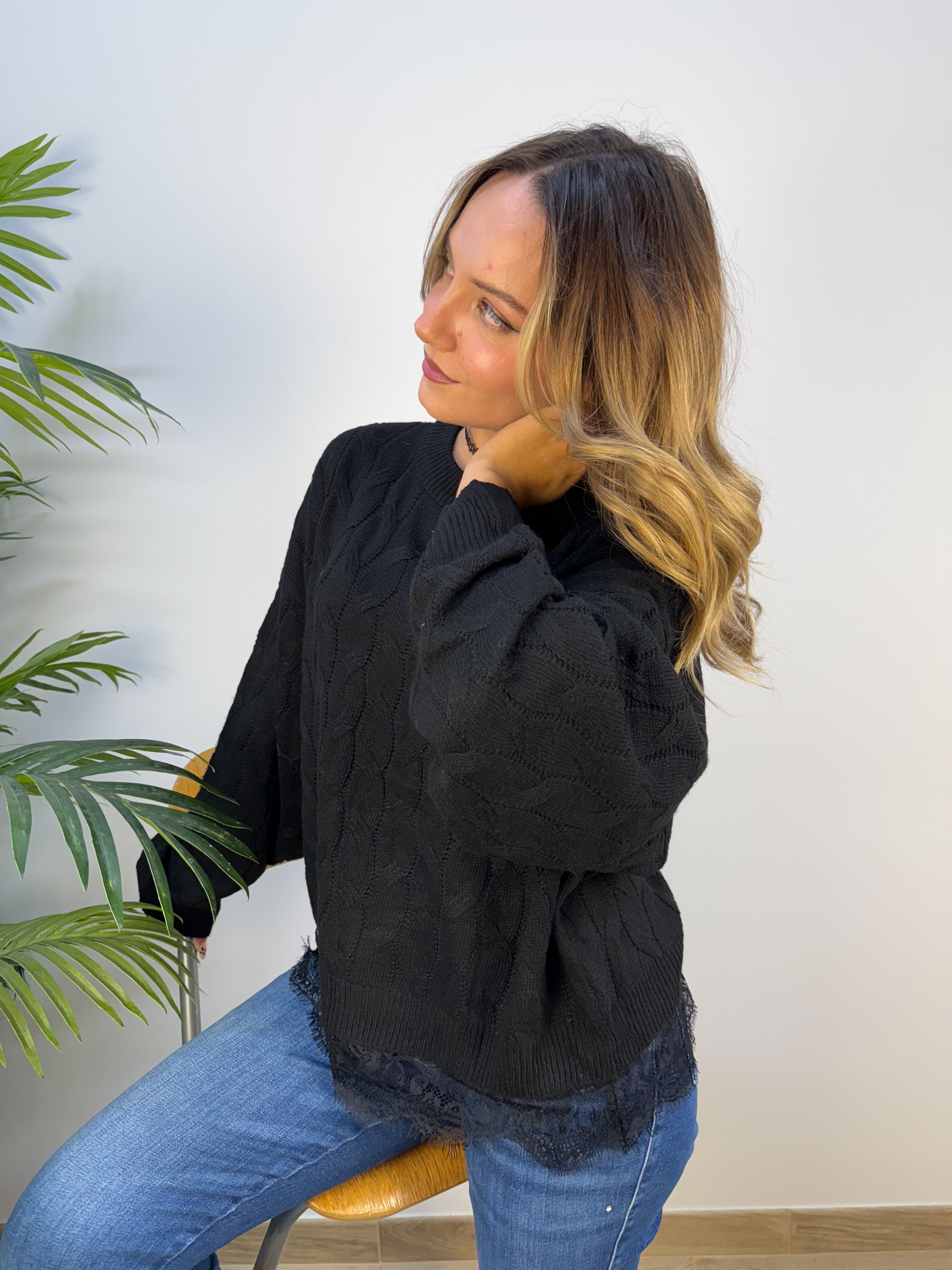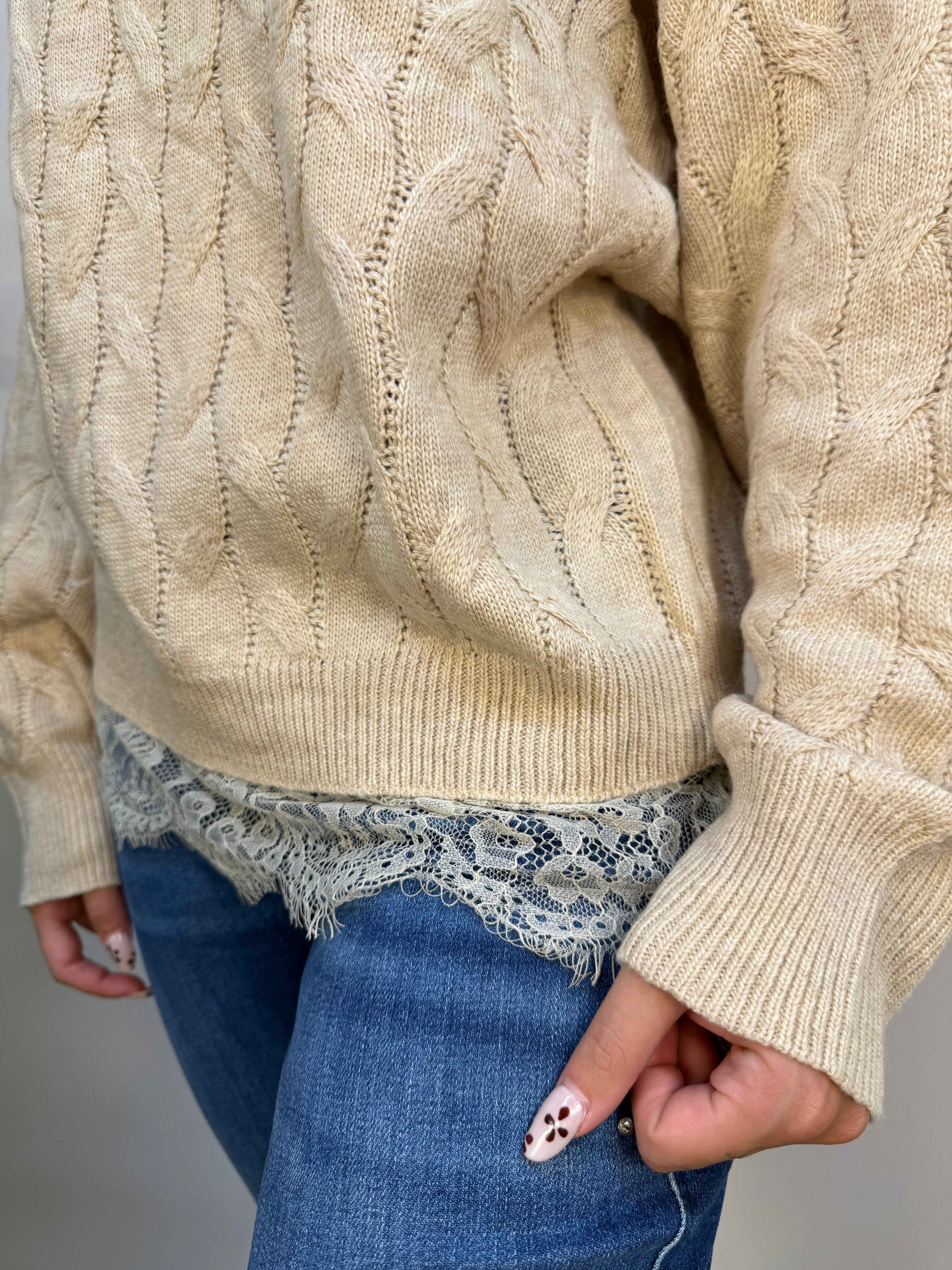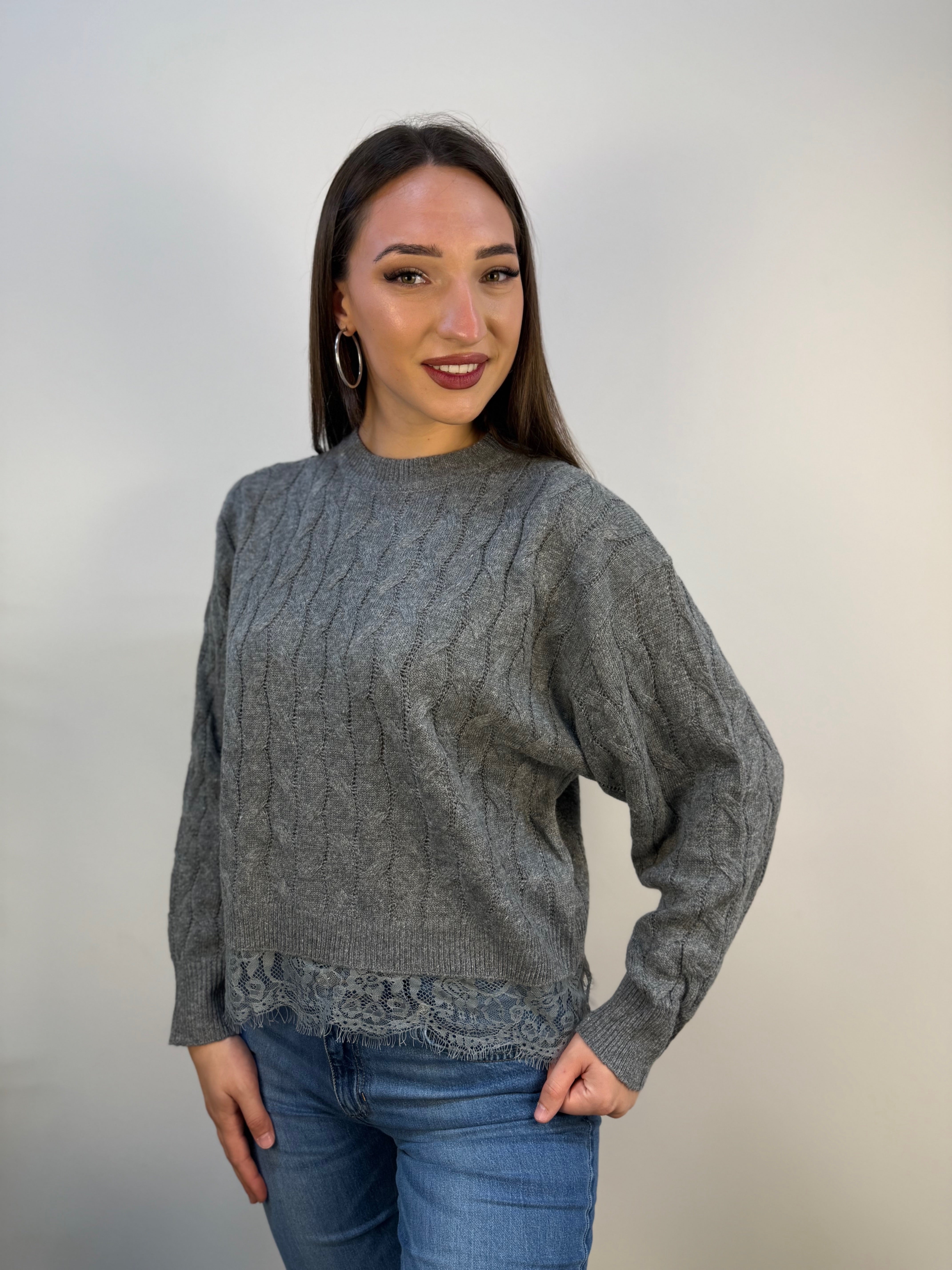 Maglione a trecce con dettaglio in pizzo tono su tono
