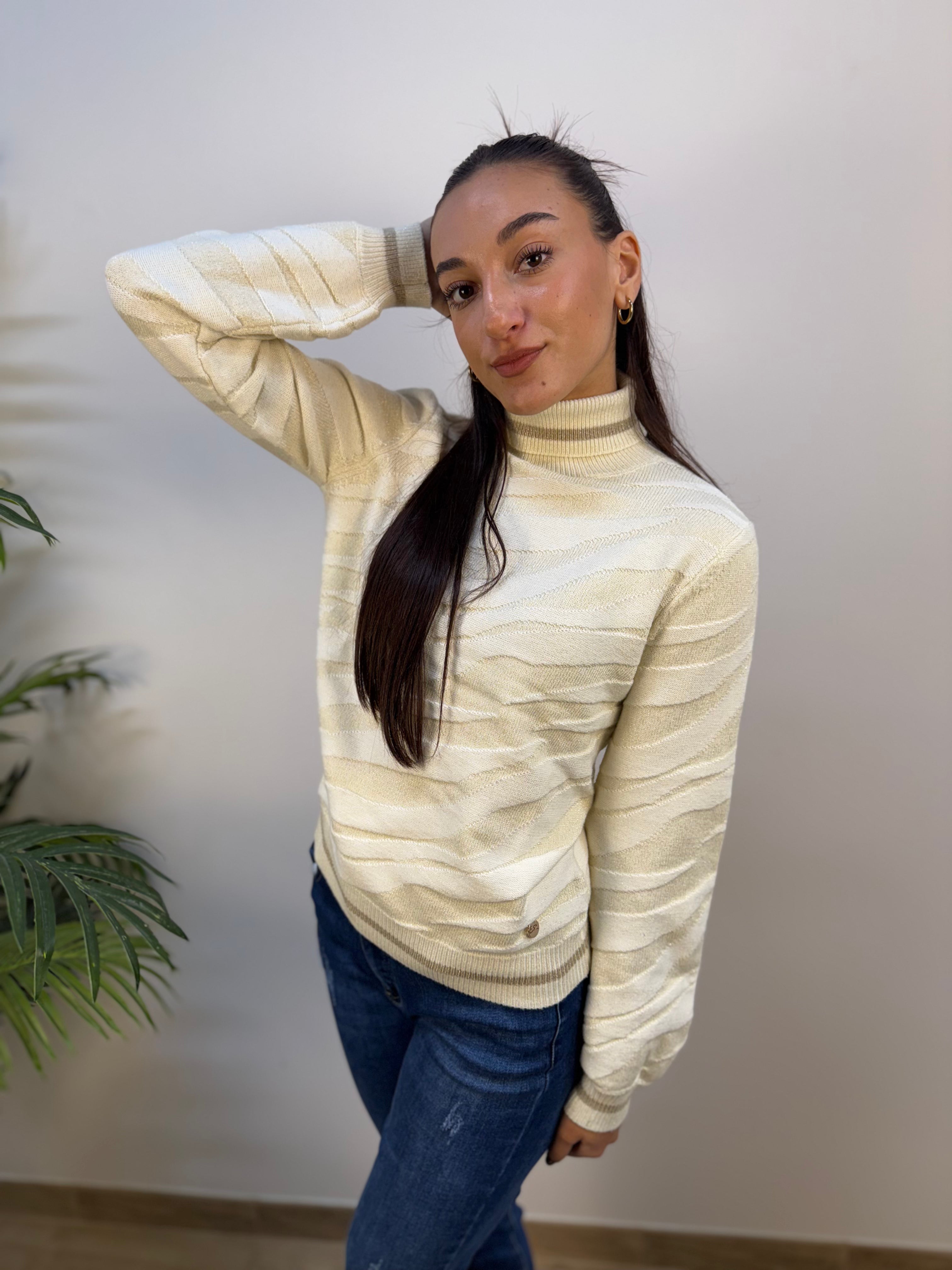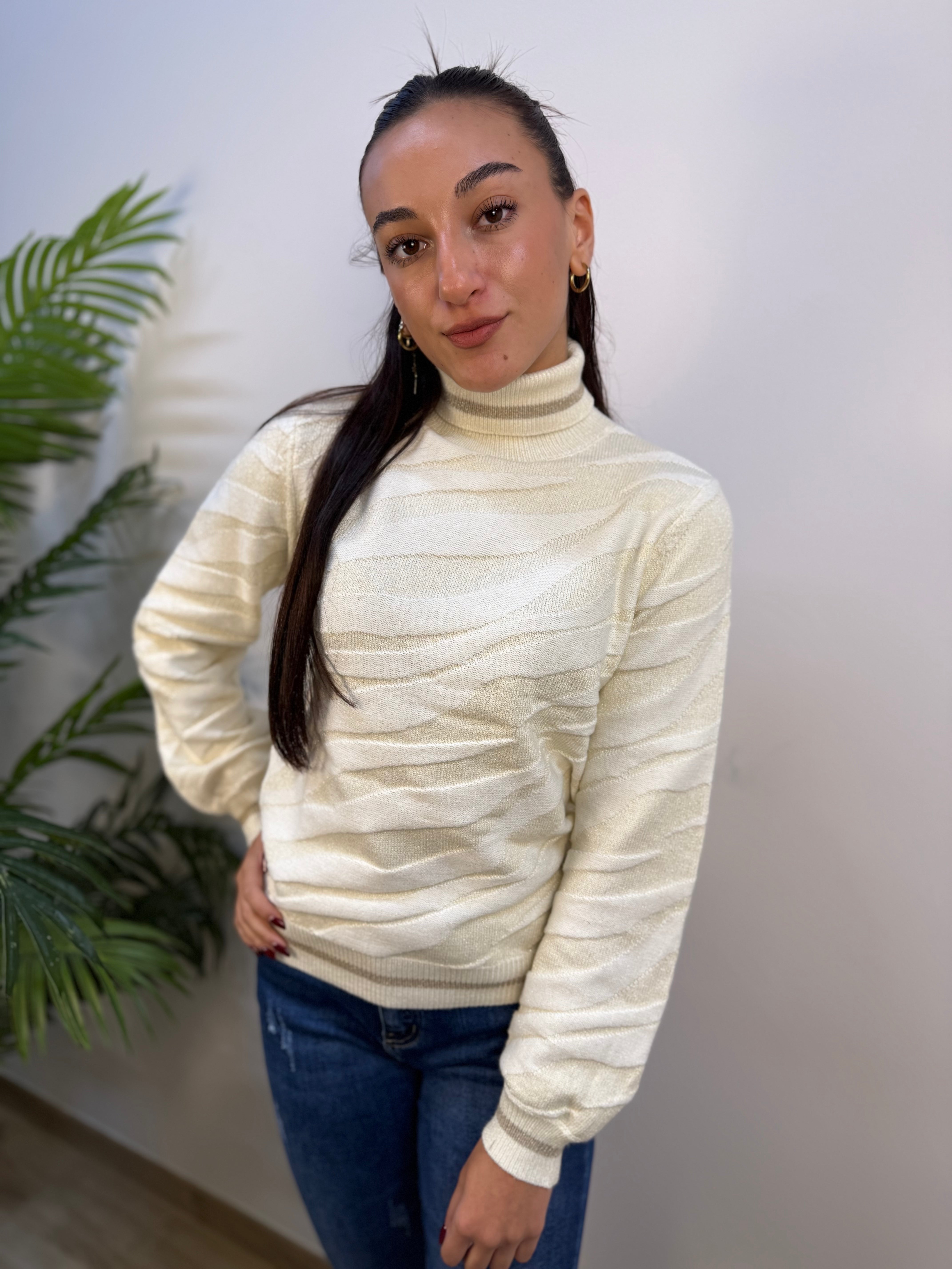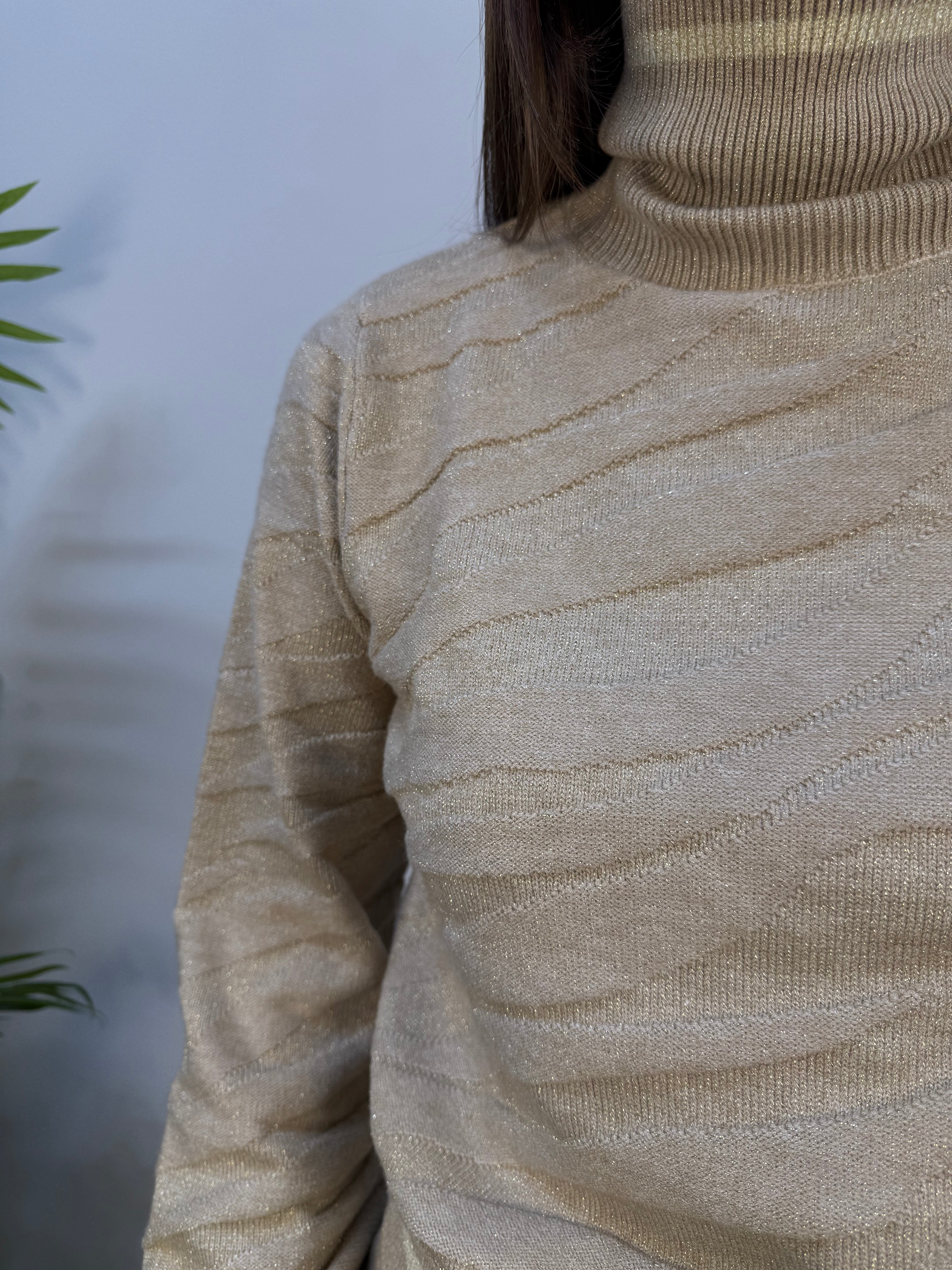 Dolcevita tigrato tono su tono con dettagli luminosi