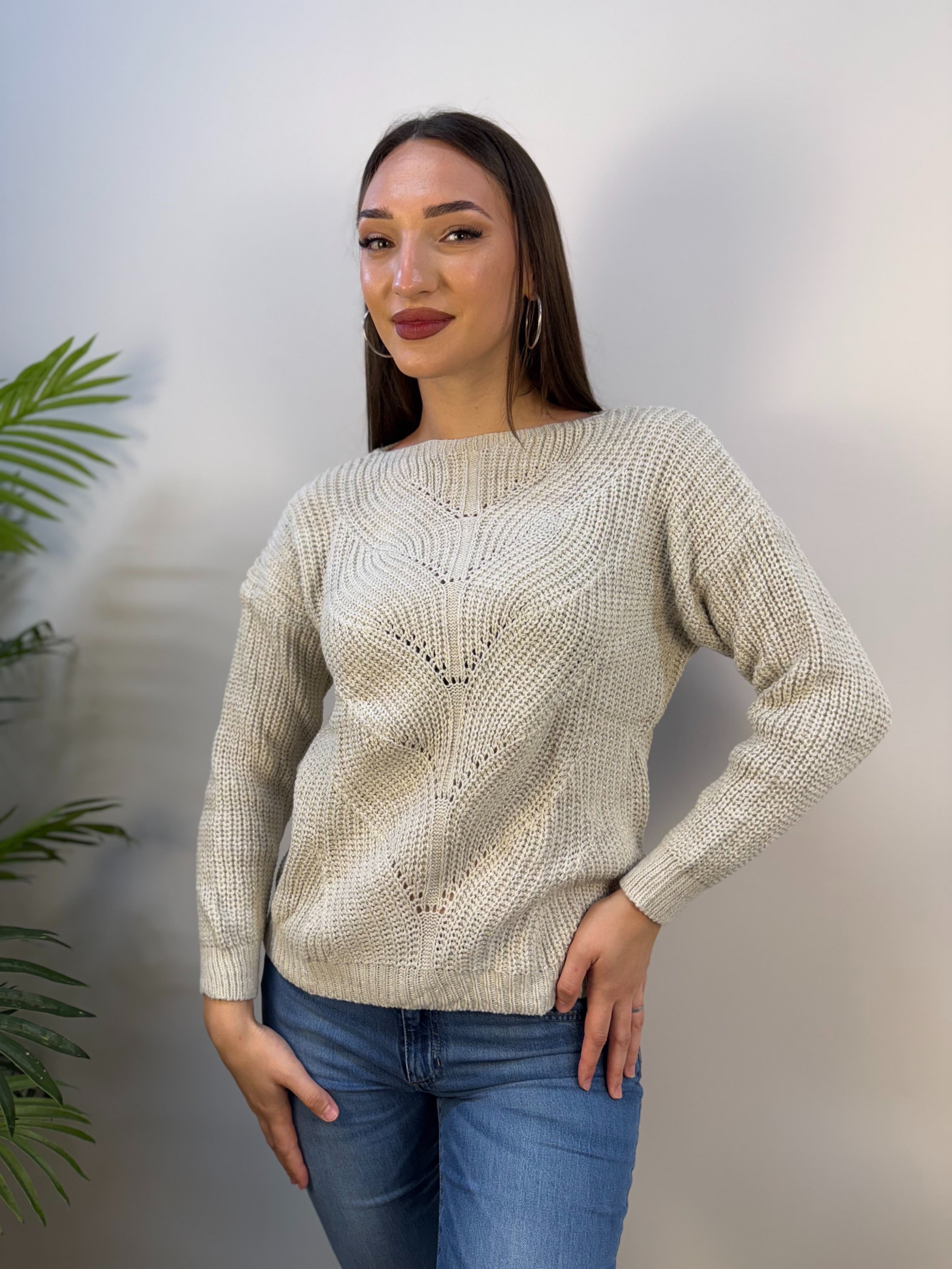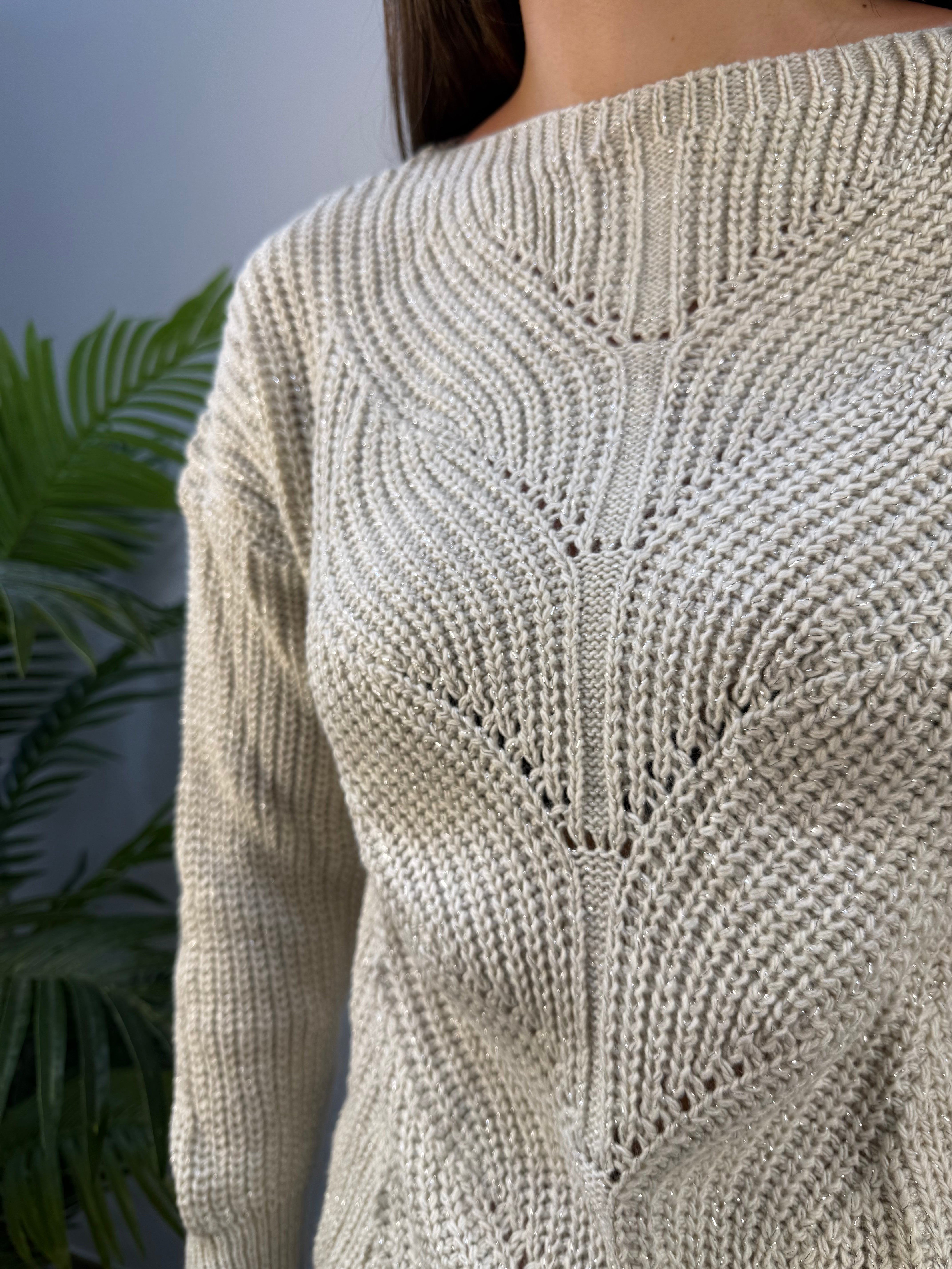 Caldo maglione Akè girocollo, proposto in diverse varianti colore per esprimere al meglio il proprio stile. Arricchito da filati in lurex che donano luce al capo, valorizzandolo con riflessi luminosi e delicati. Un perfetto equilibrio tra comfort e femminilità.